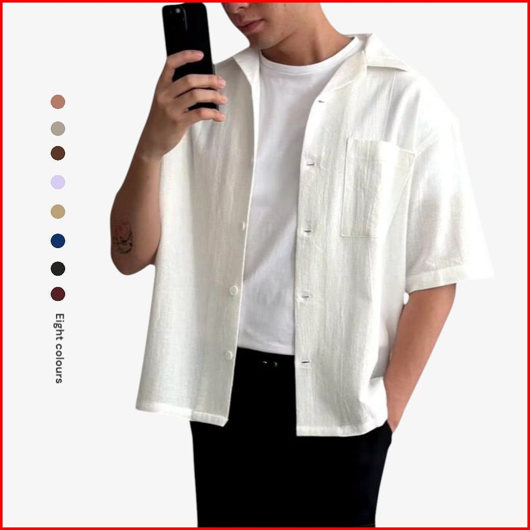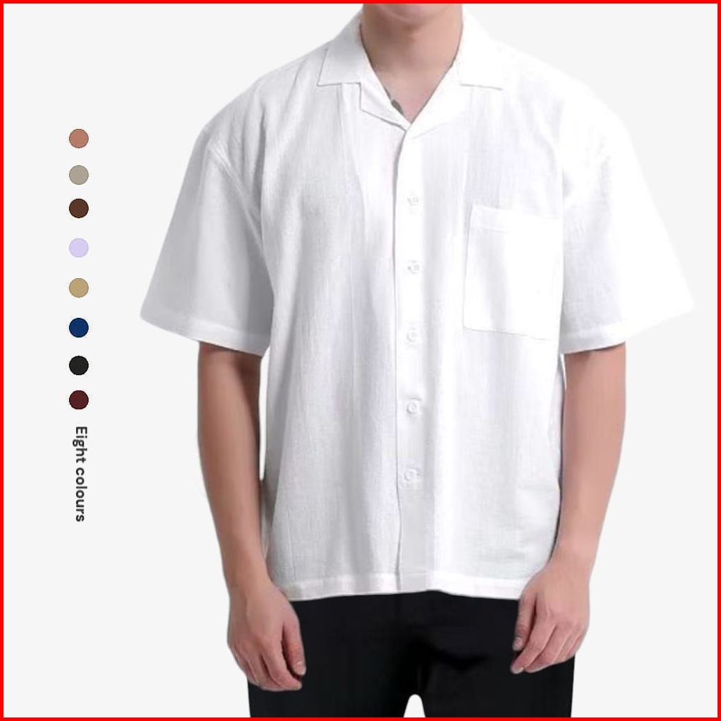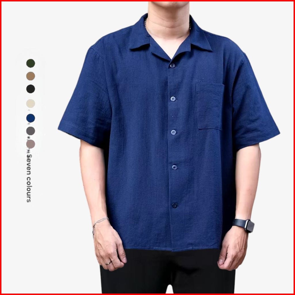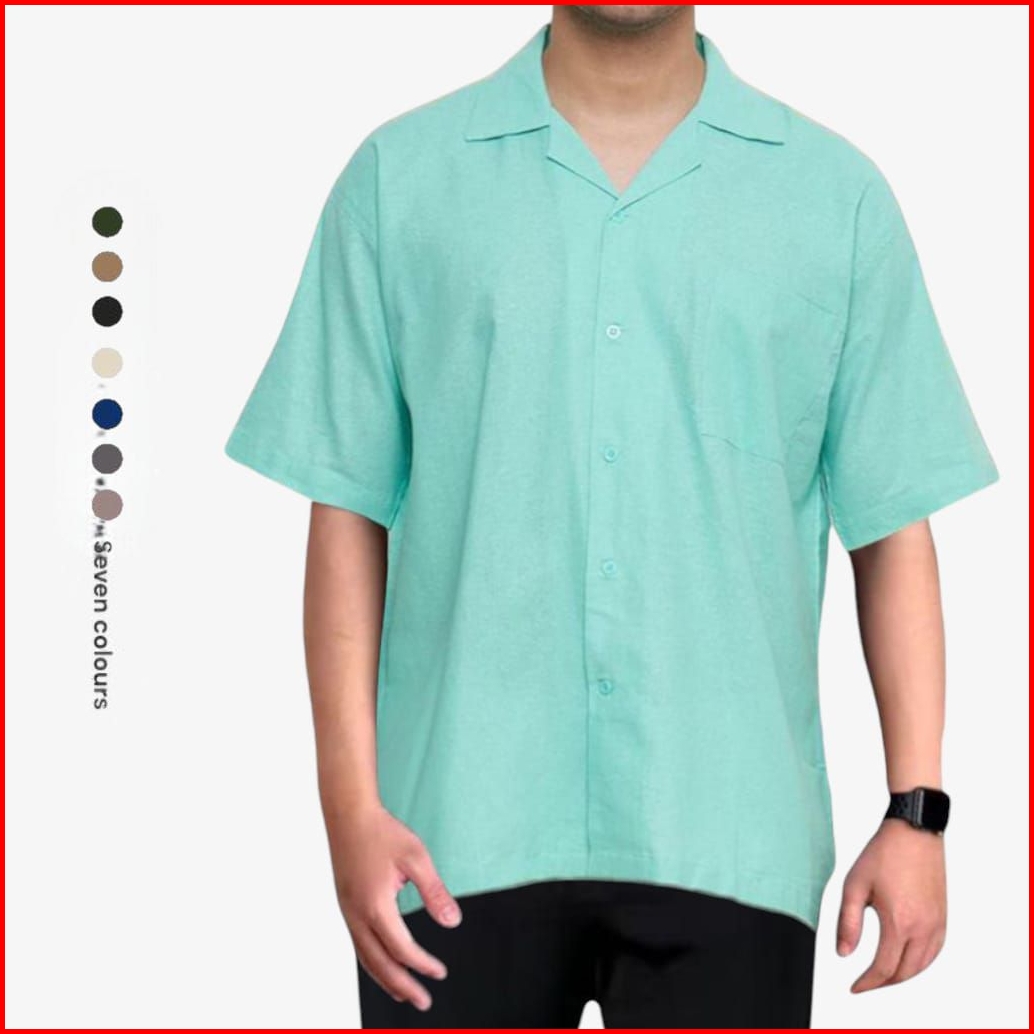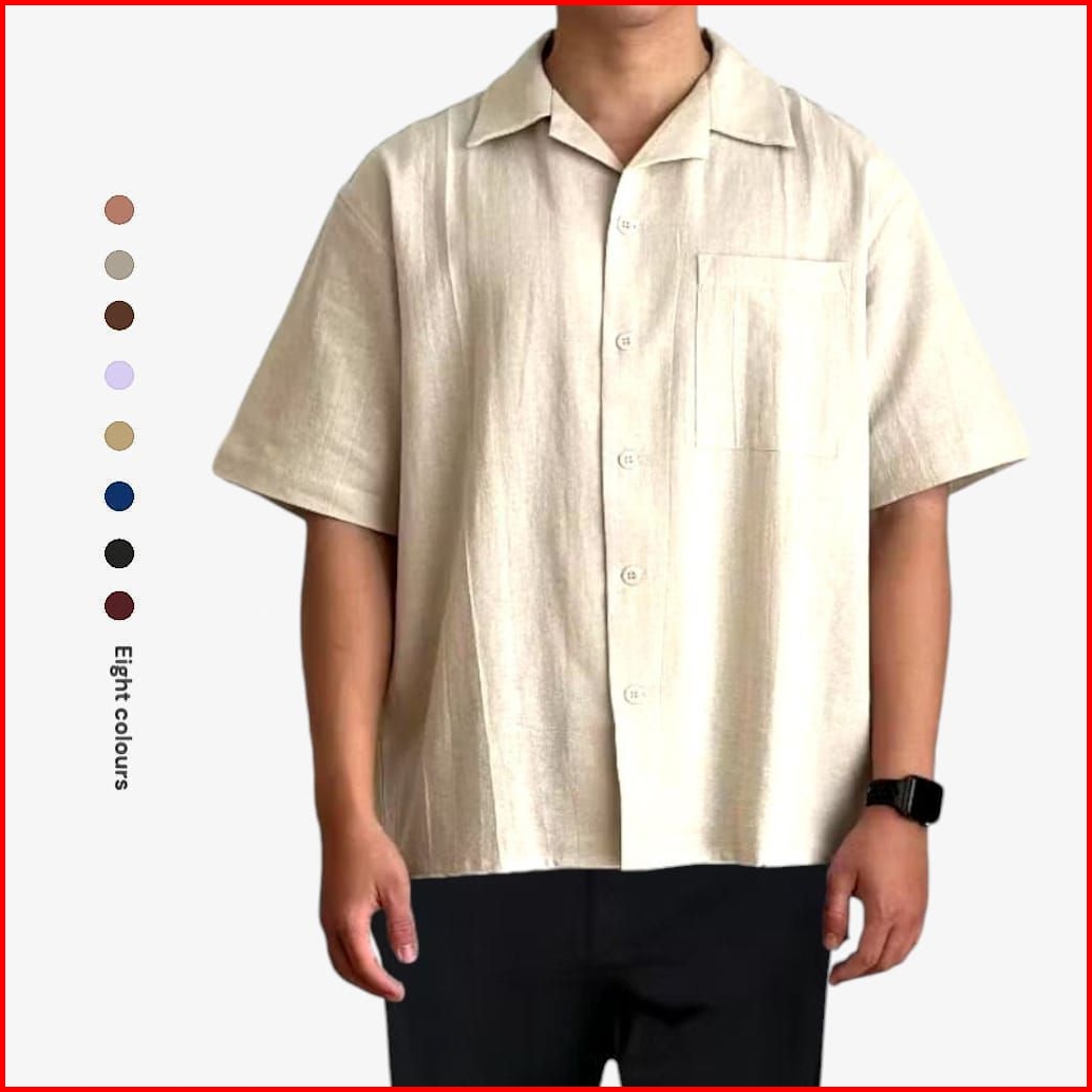 Comfyclub - Cuban Bowling Boxy Oversized Linen Shirt Kemeja Linen Bowling Polos Pria Kerah Terbuka Lengan Pendek 81