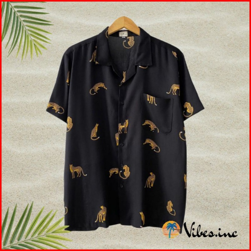 Kemeja Hawai Pantai Tropical Black Leopard Rayon Premium