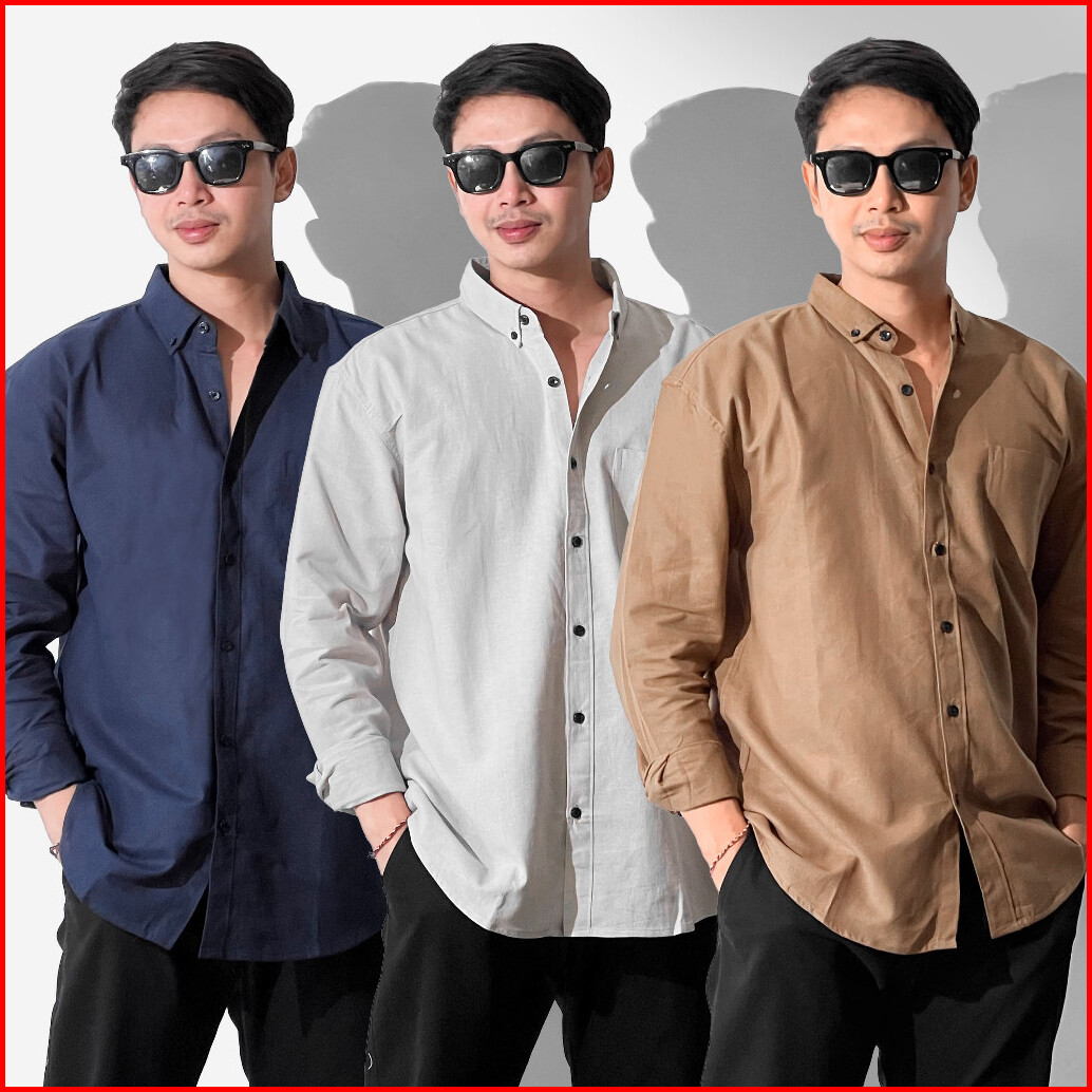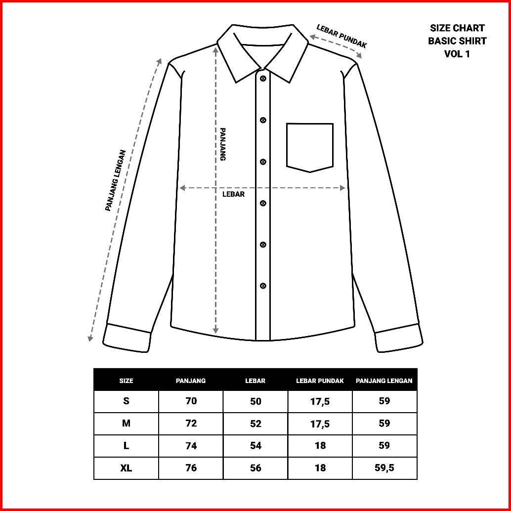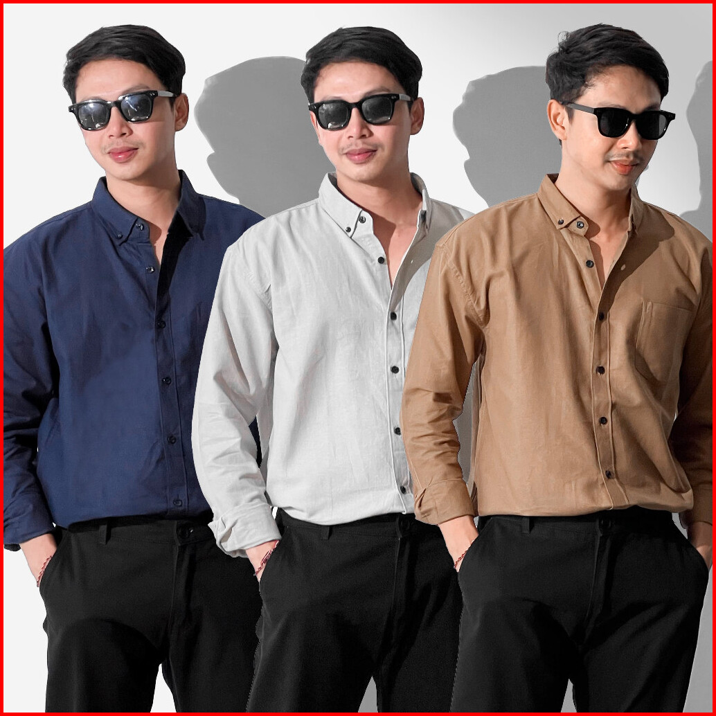 Volume 1 Basic Shirt Collar Shirt Kemeja Panjang Polos Pria