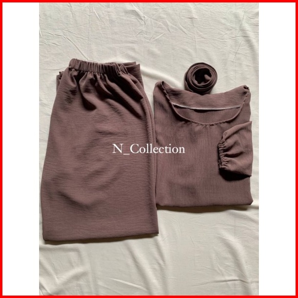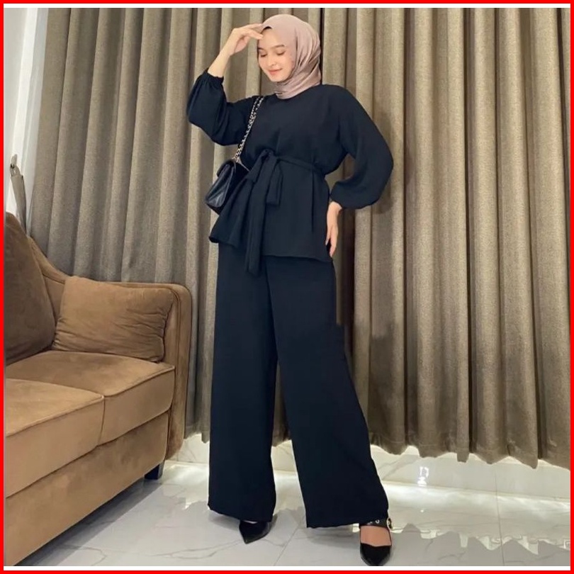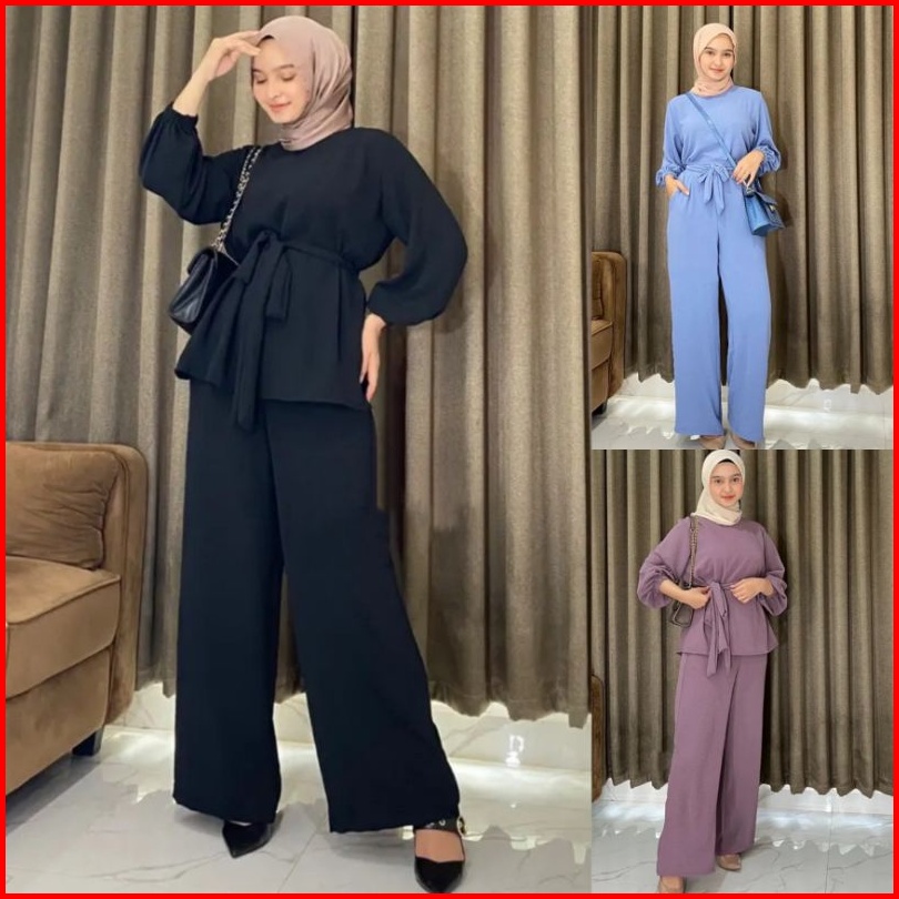 One Set Polos Crinkle Airflow Premium - Setelan Celana Dan Blouse Tali Wanita