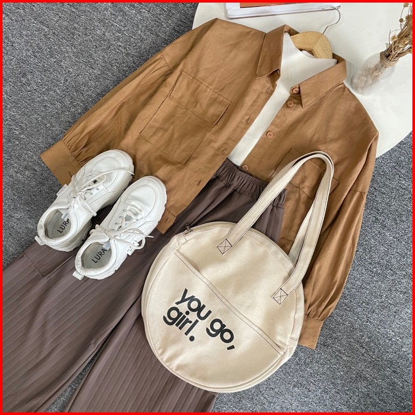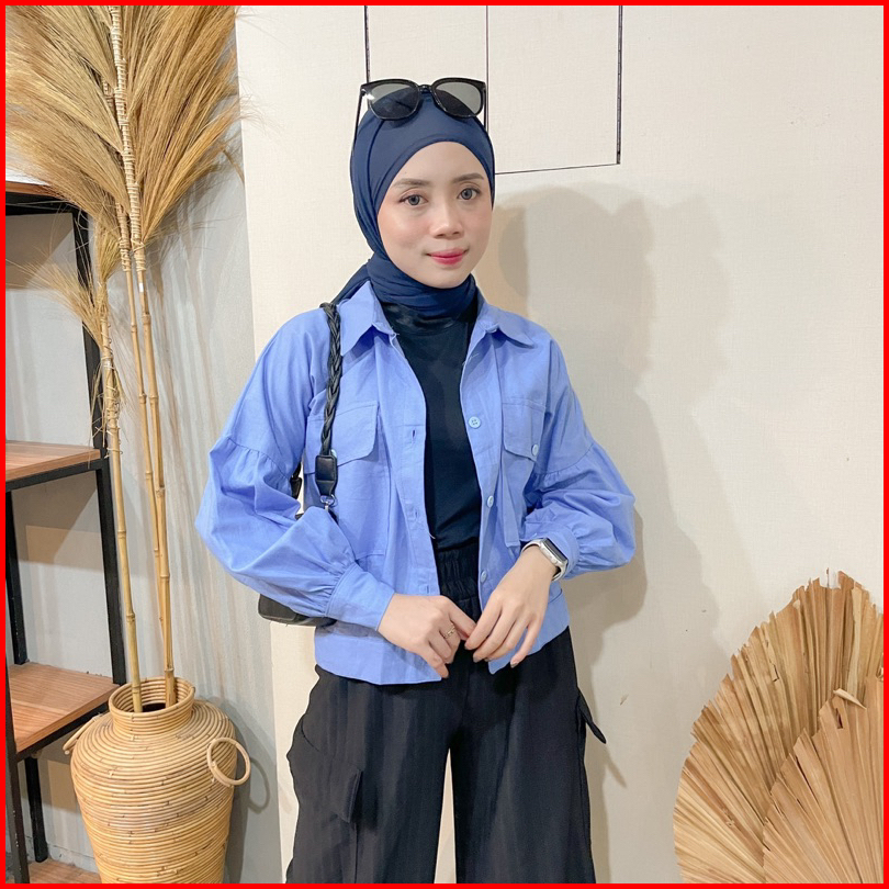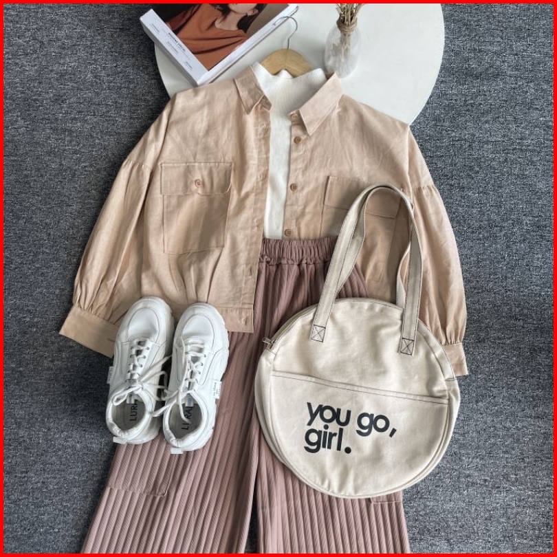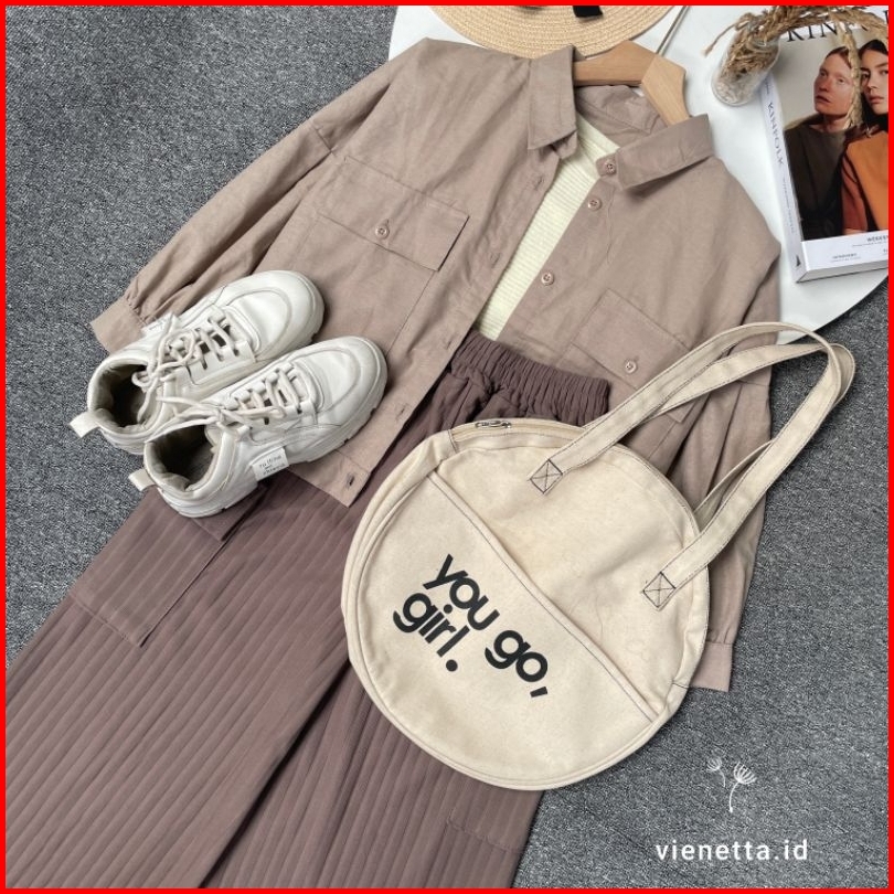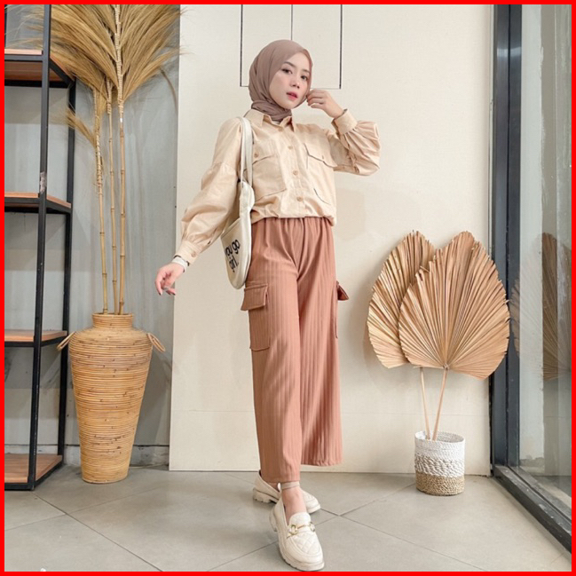 Vienetta Id - One Set Setelan Wanita Korean Style Kekinian Cewek Remaja Baju Atasan Crop Top Linen Lucu Celana Cargo Kni