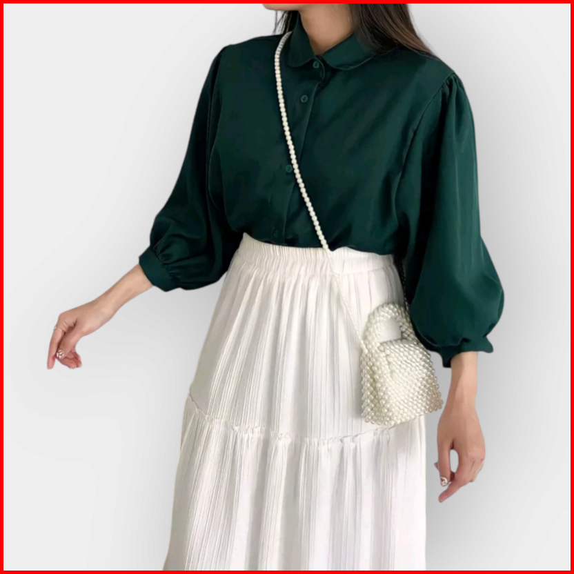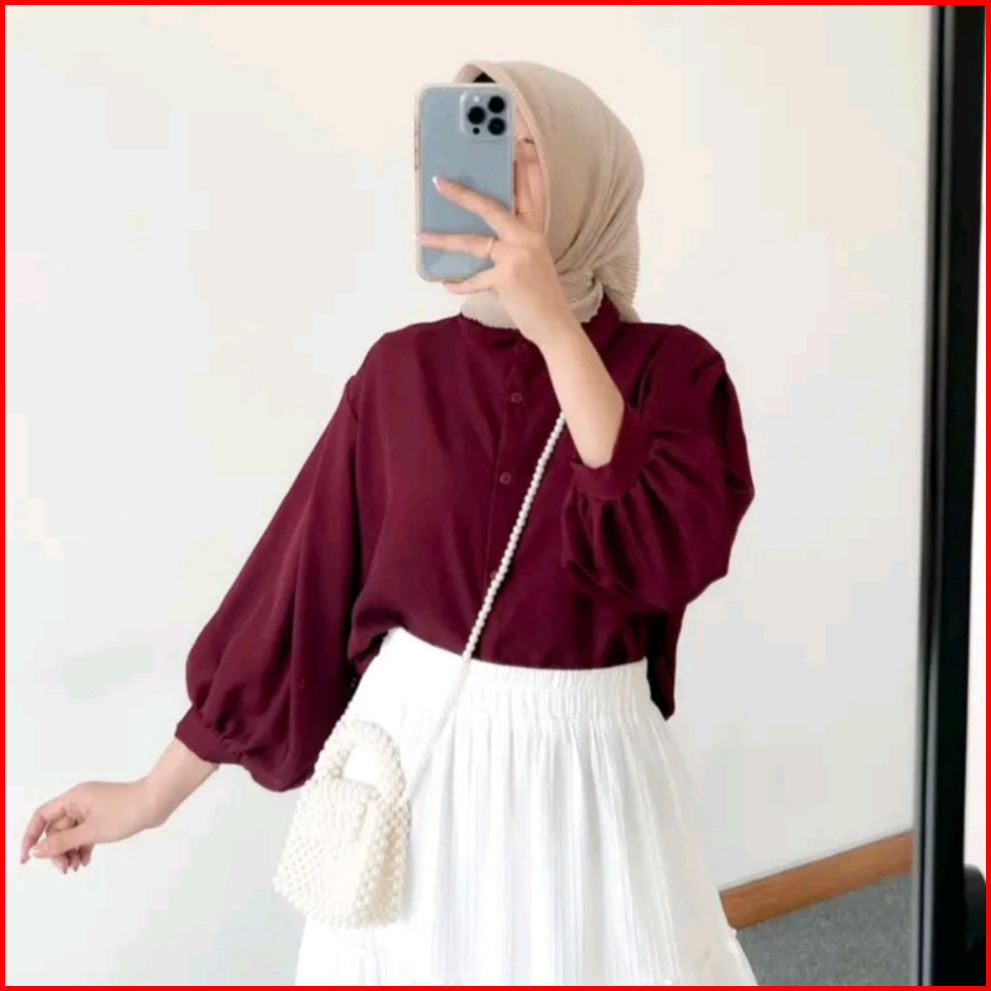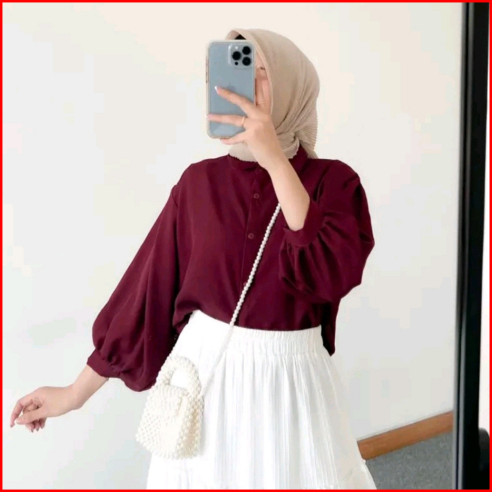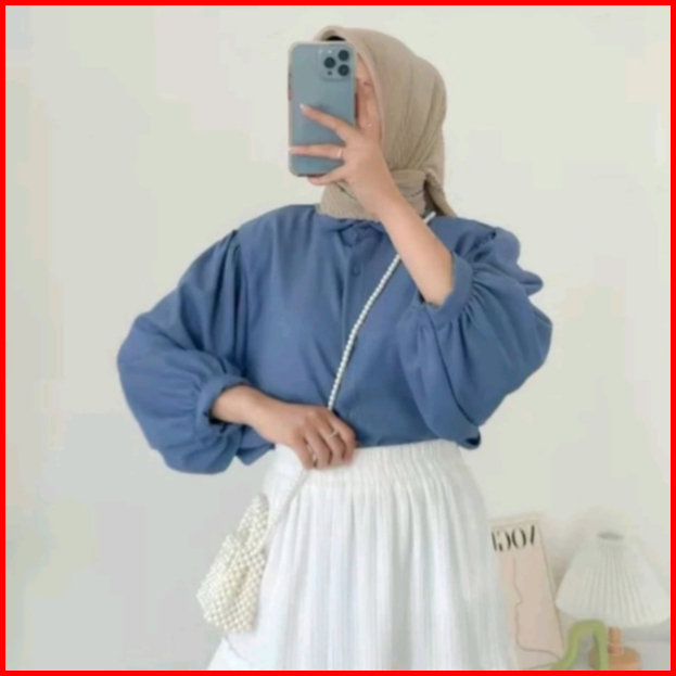 Blous Wanita Polos Shakila Twill Model Lengan Balon Terbaru Korean Style