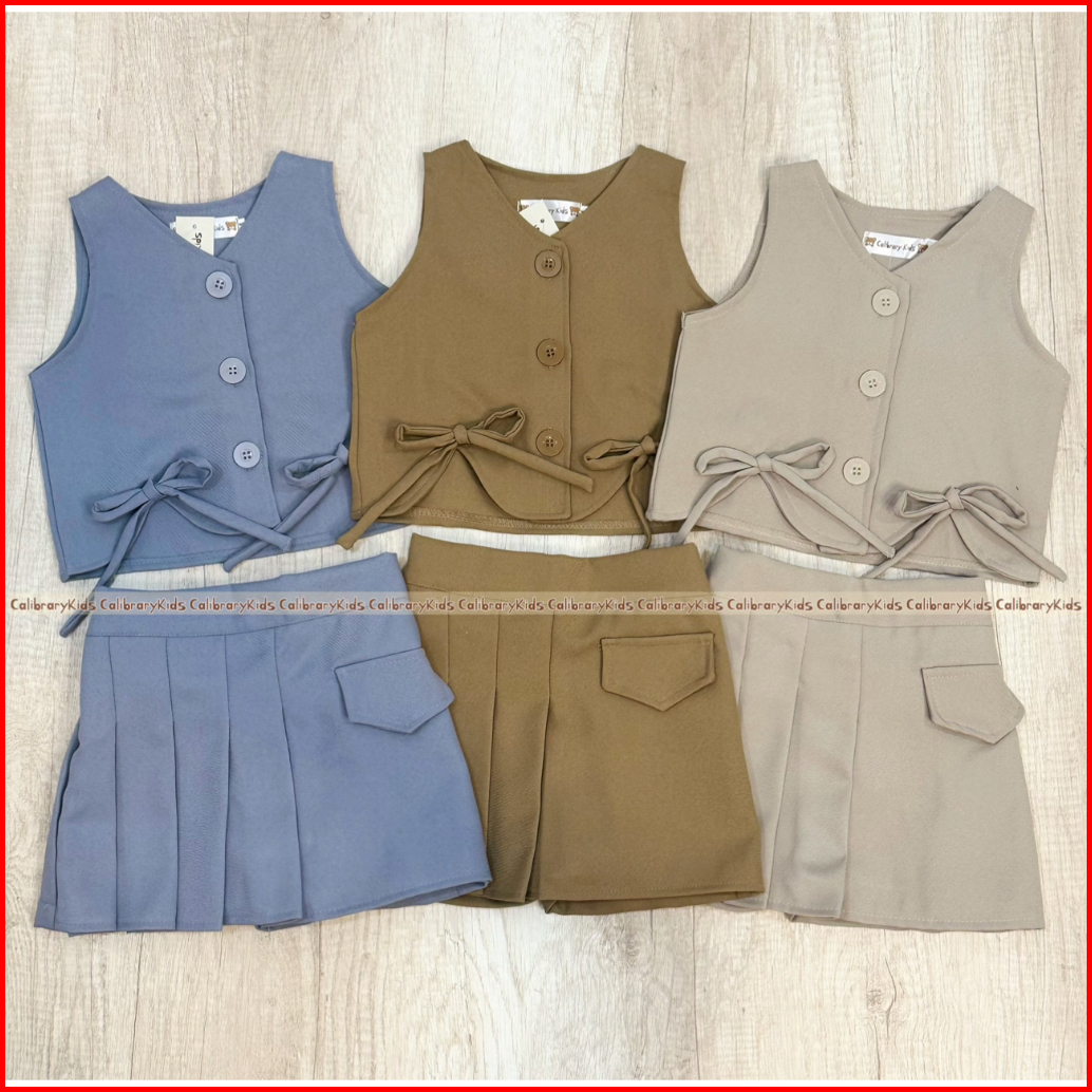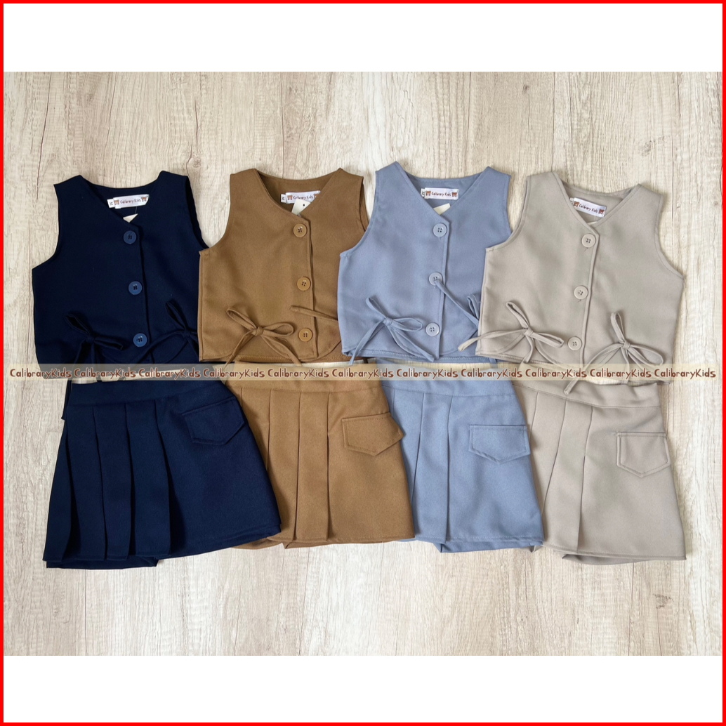 Eexitofashion Set Jisoo Vest Skort 1-4tahun Setelan Anak Perempuan Set Anak Cewek Fashion Anak Blazer Celana Rok Anak