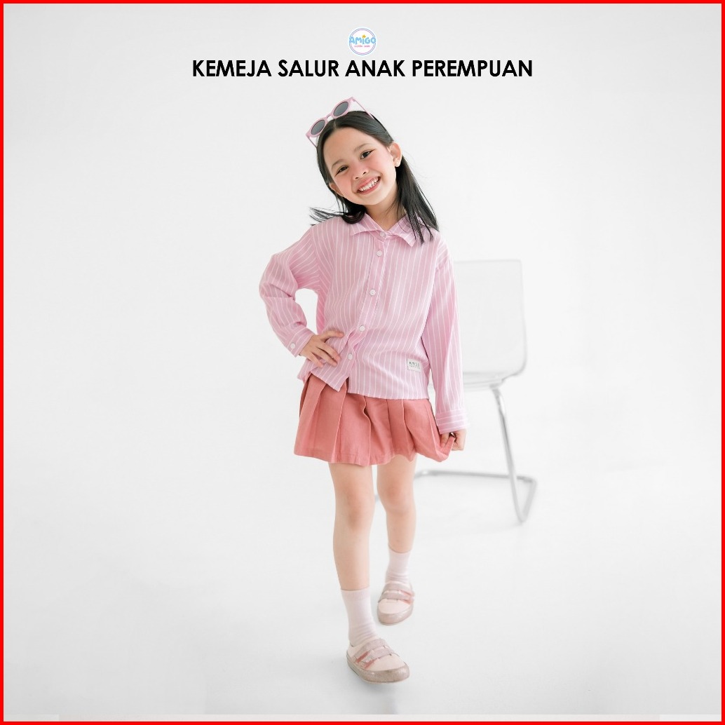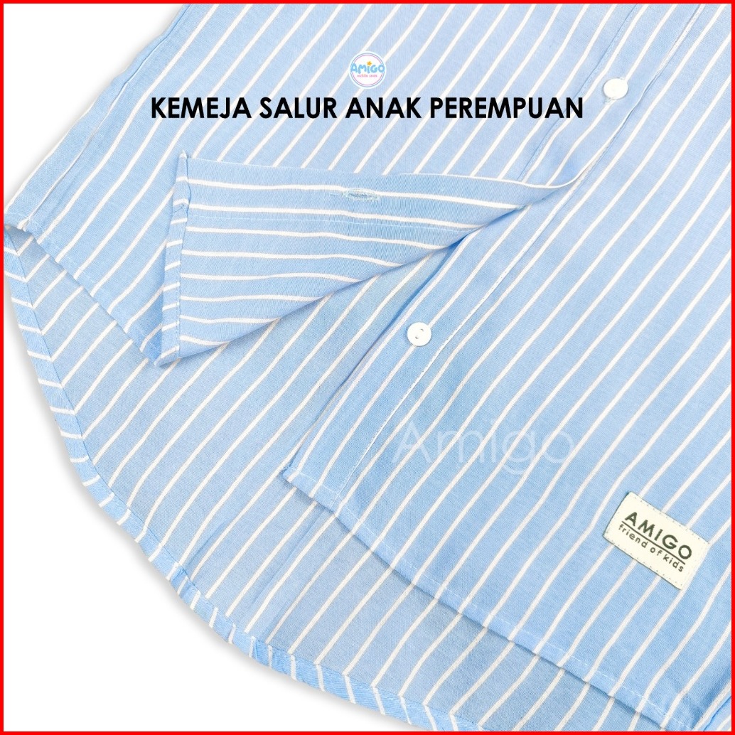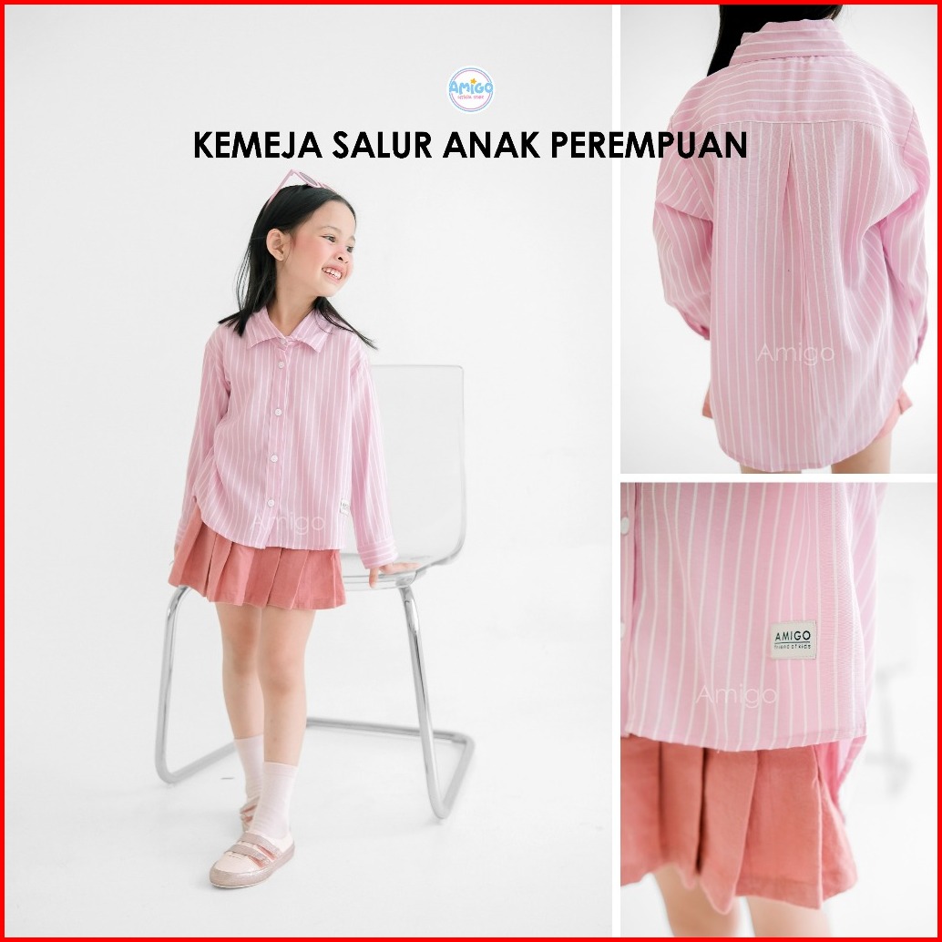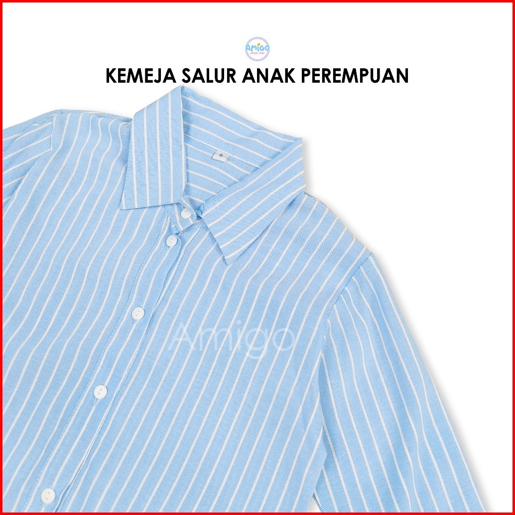 Kemeja Oversize Salur Striped Anak Perempuan Drama Korea 2-12 Tahun Amigo