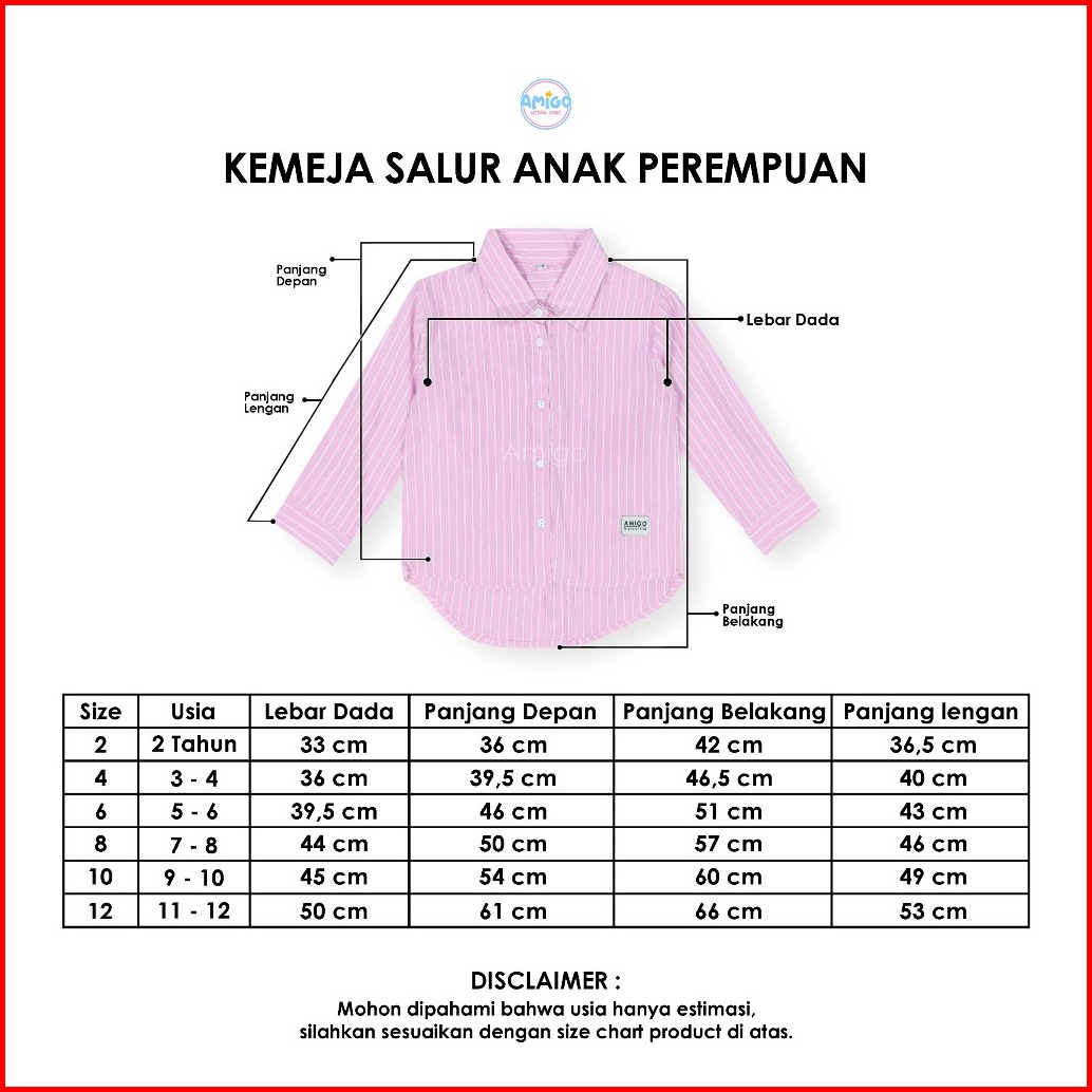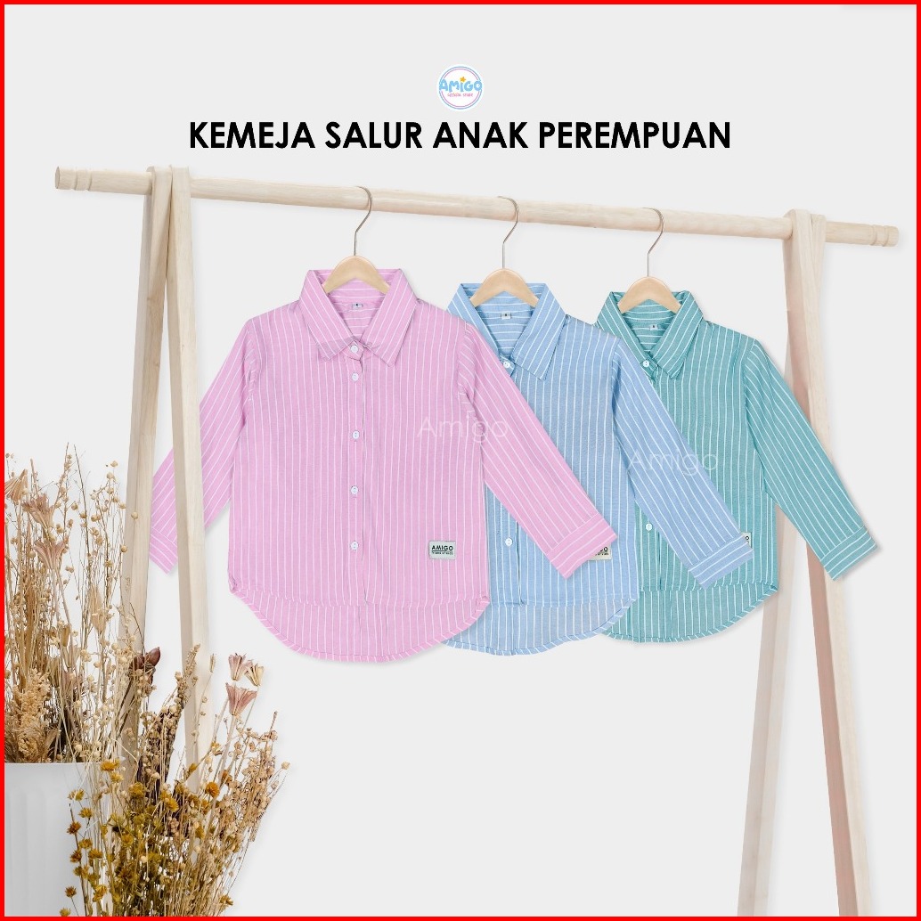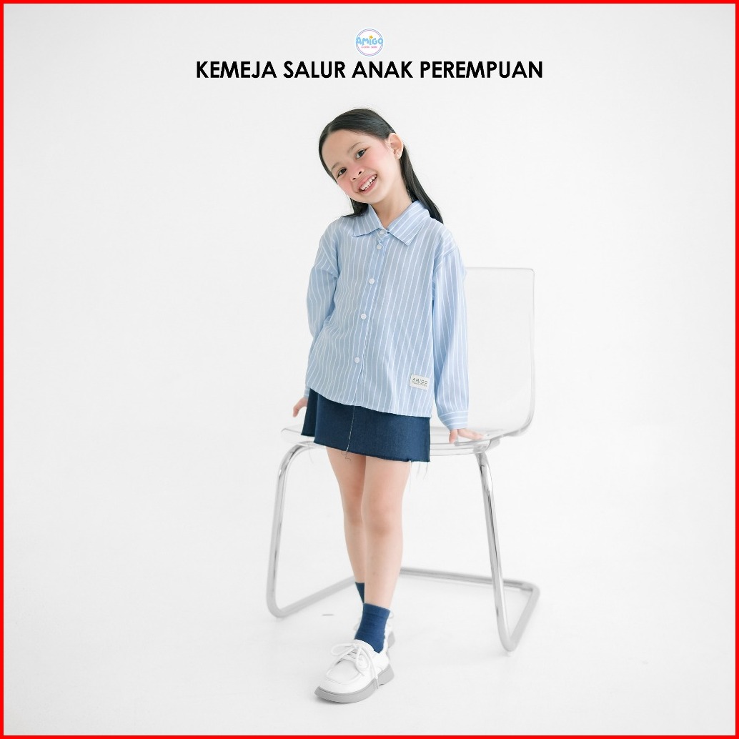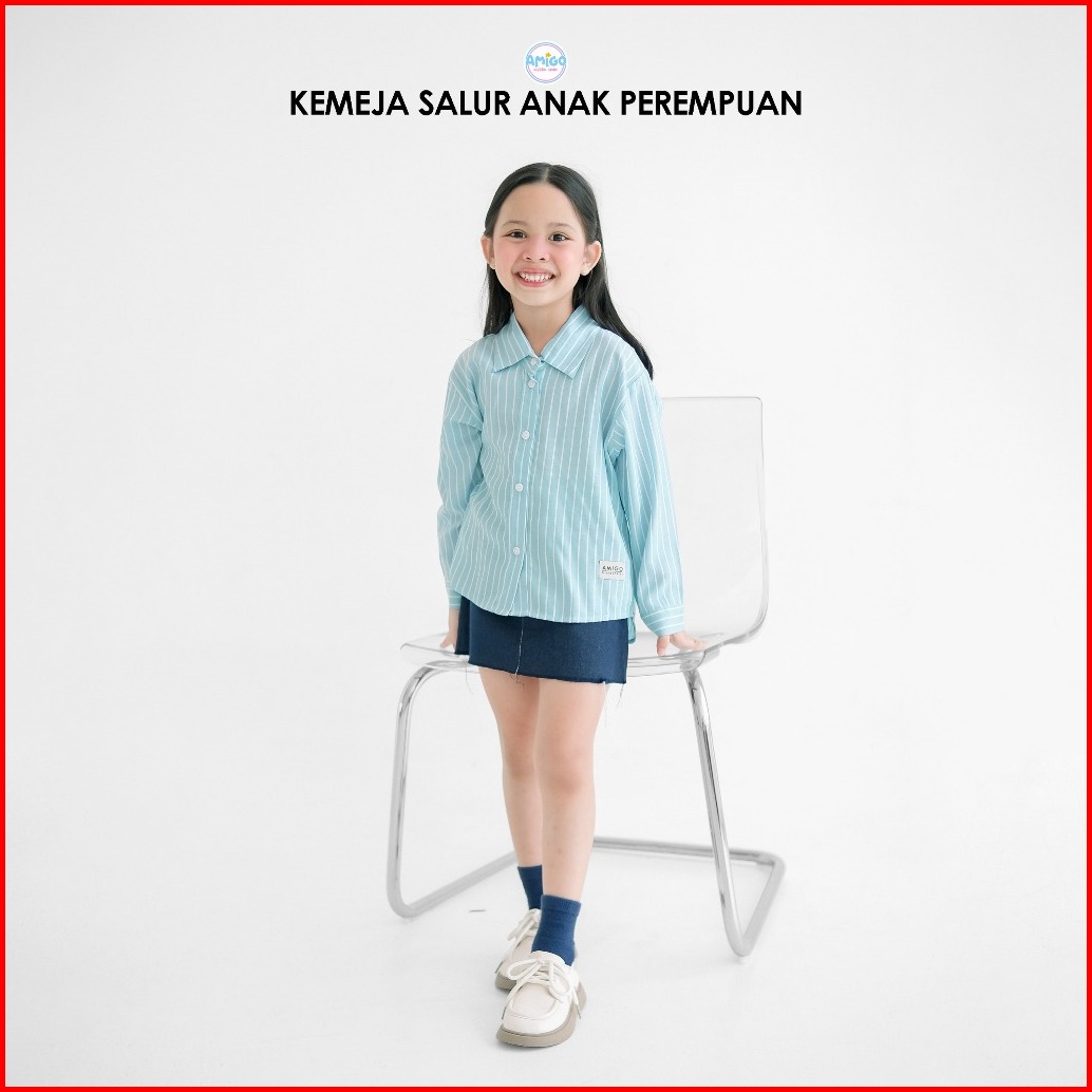 Kemeja Oversize Salur Striped Anak Perempuan Drama Korea 2-12 Tahun Amigo