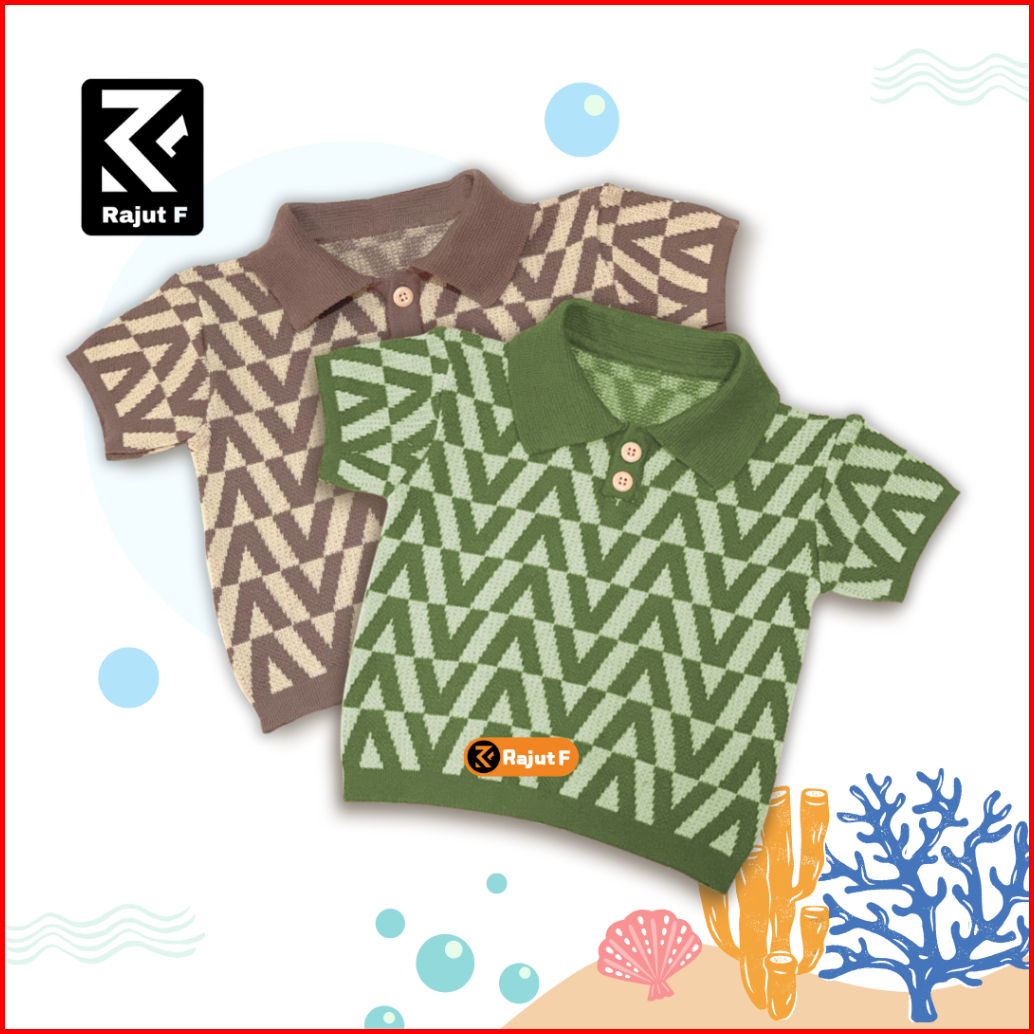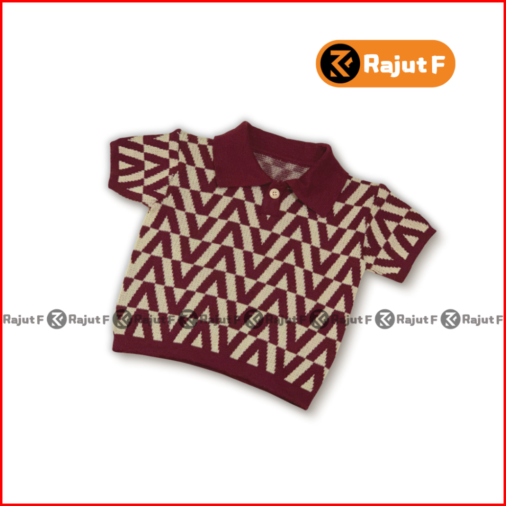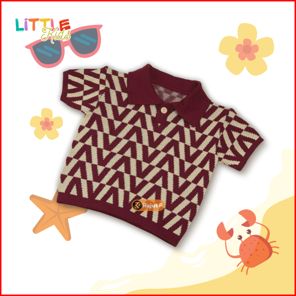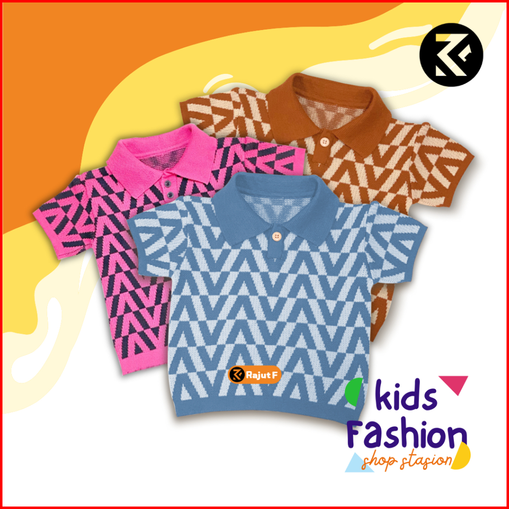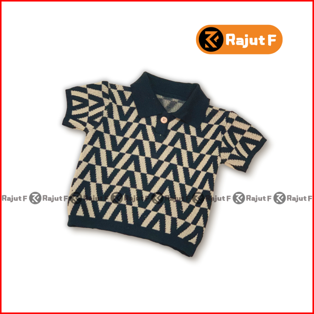 Atasan Rajut Polo Premium Anak Motif V Unisex Lengan Pendek 1-6th
