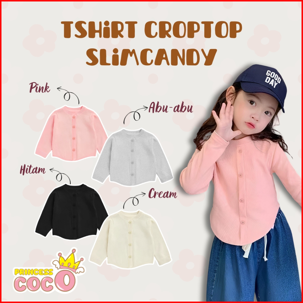 Princess Coco 1-8 Tahun Croptop T-shirt Girls Spring Slim Candy Color Korean Style Halus Lembut Fashionable Lembut Nyama