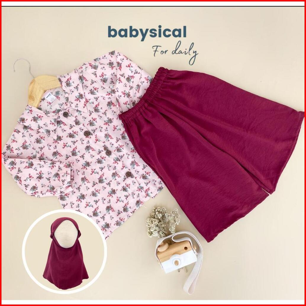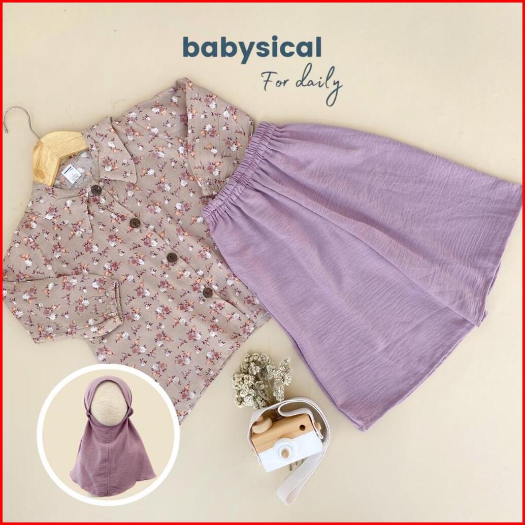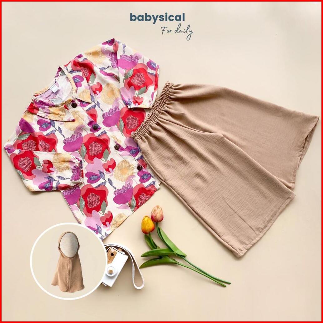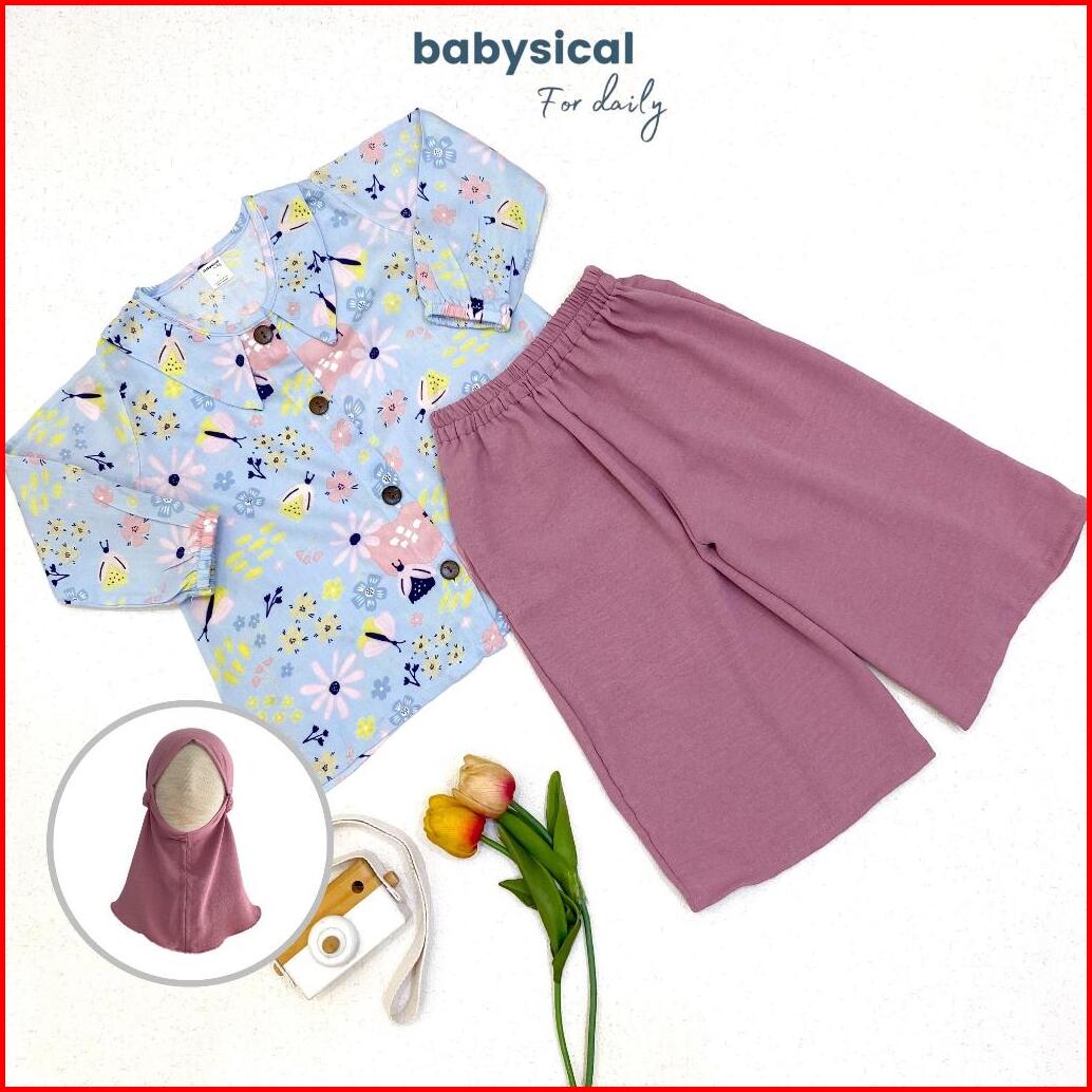 Babysical 1-6 Tahun Arraya Setcel - Setelan Celana Tunik Baju Anak Balita Cantik Set Raya Set Tunik Gamis Free Hijab