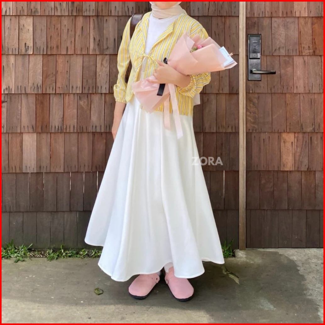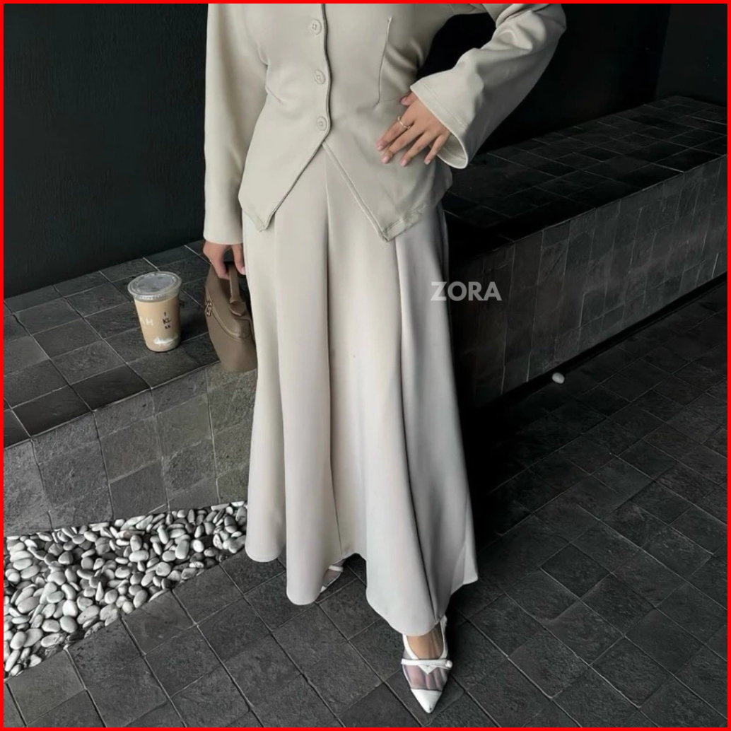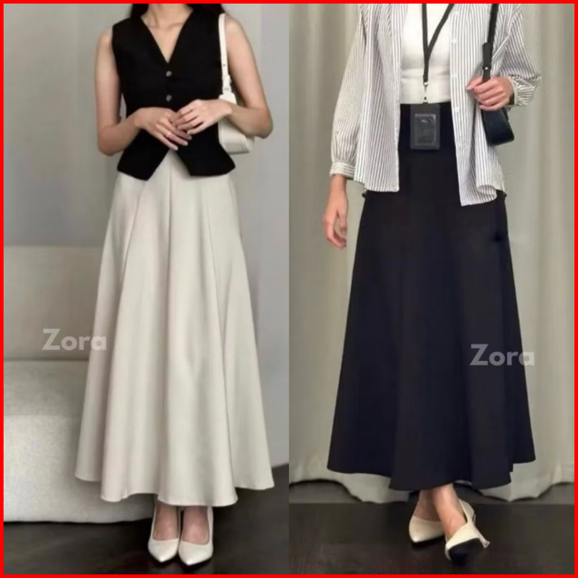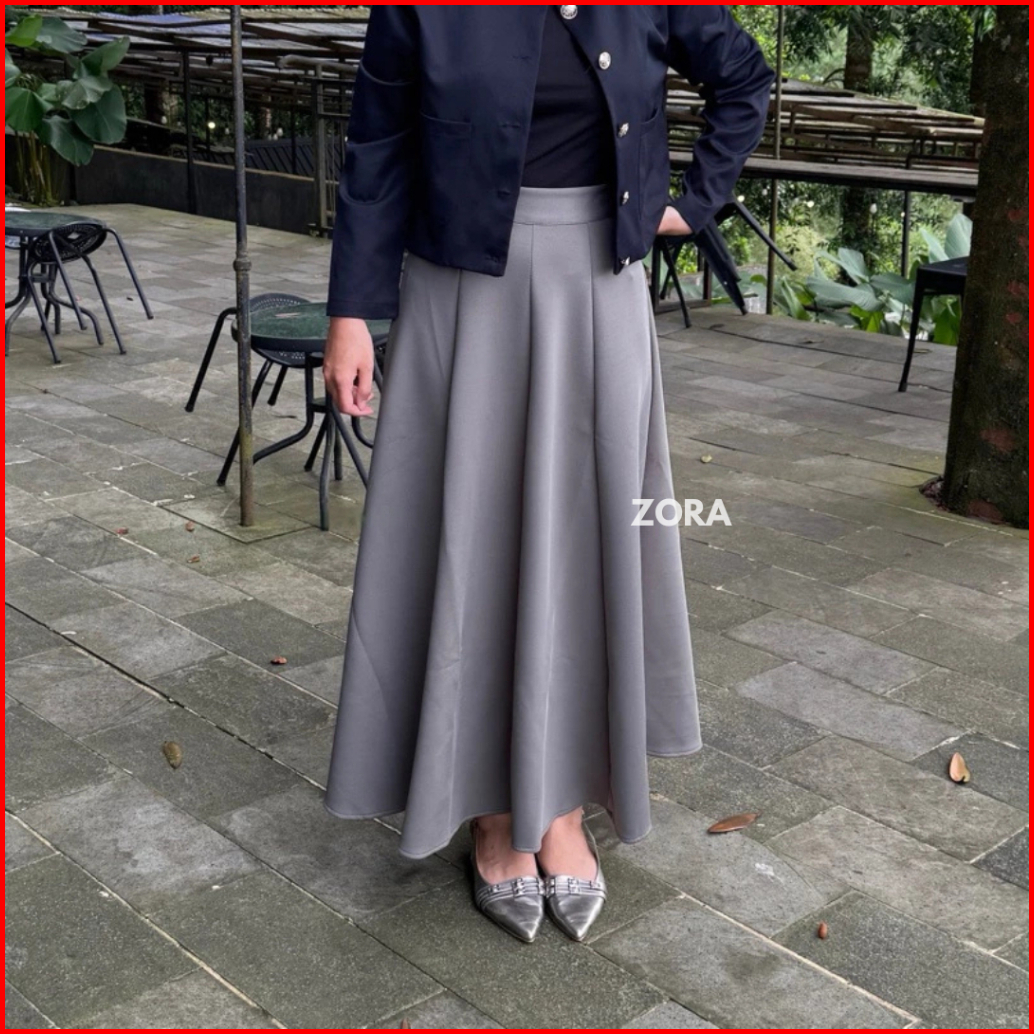 Zora - Rok Audy Skirt Korean Loose Maxi Skirt Rok Wanita Anti Kusut Polyester Rok Flare Wanita Basic Polos Maxi Skirt Ro