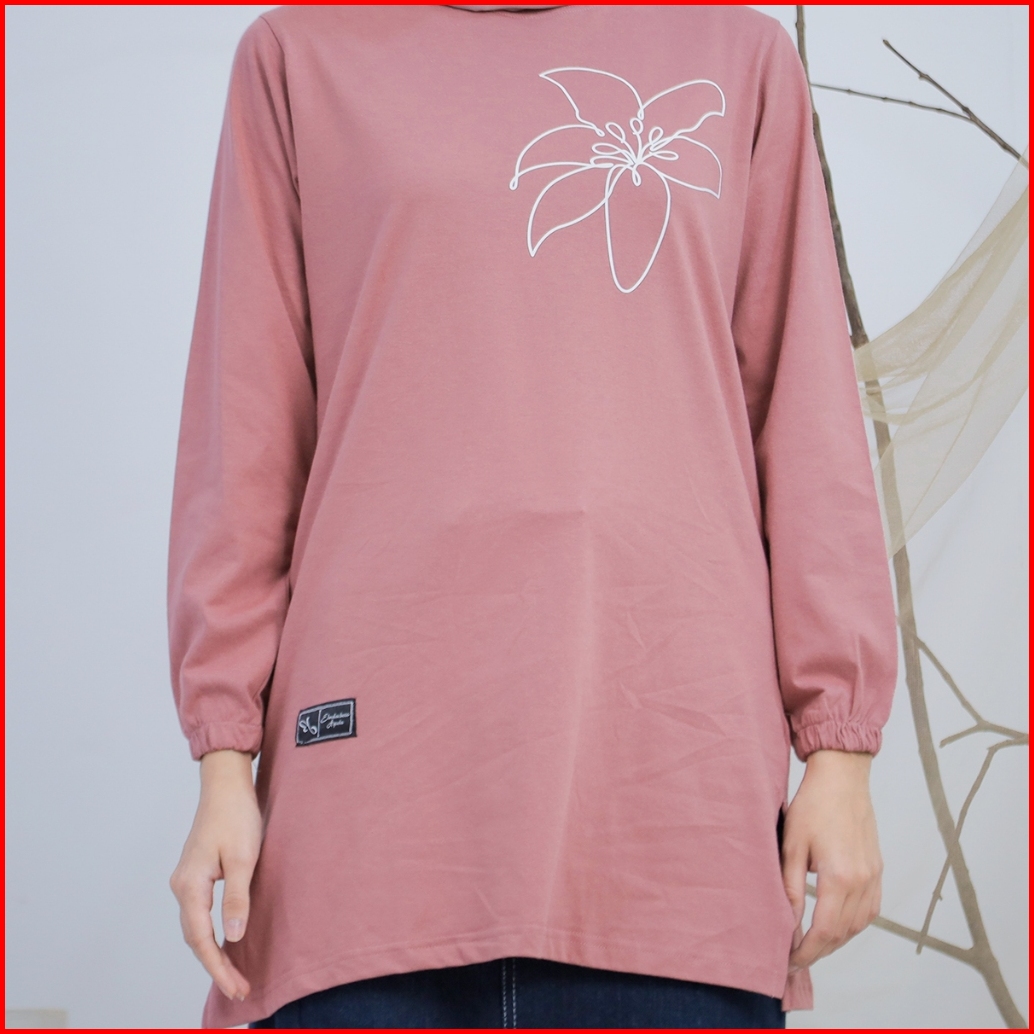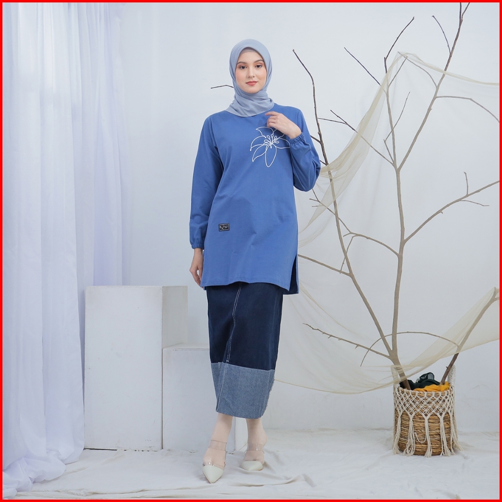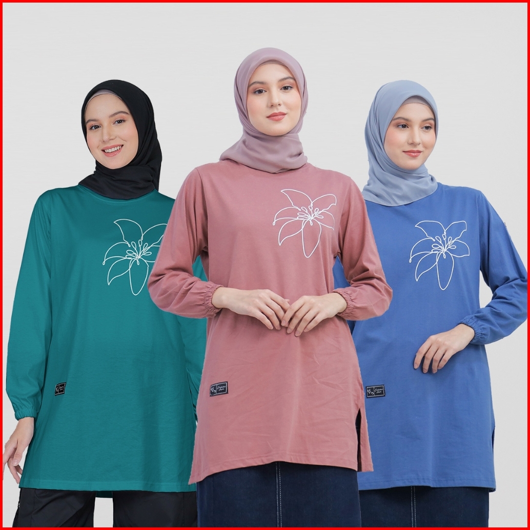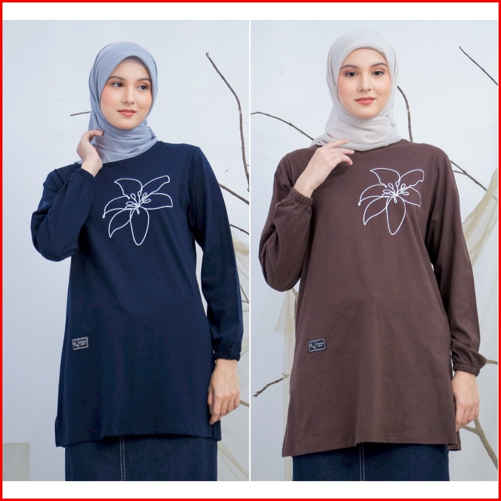 Long Tunik Kaos Kasual Motif Bunga Lengan Balon Atasan Wanita Terbaru Kombed 20s Jumbo Muslimah