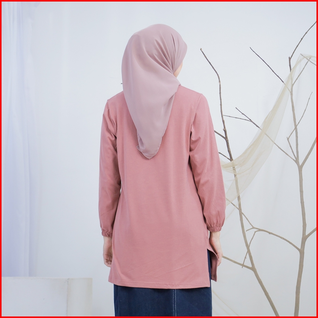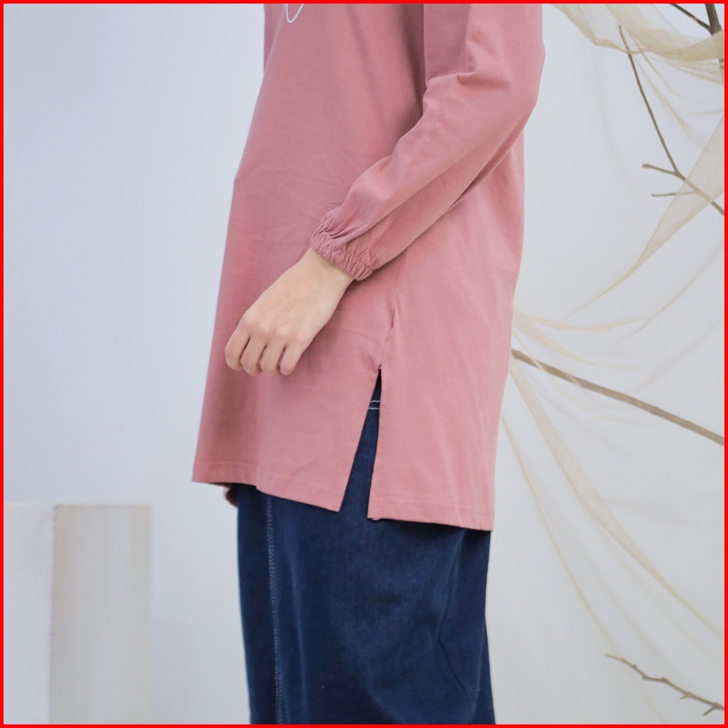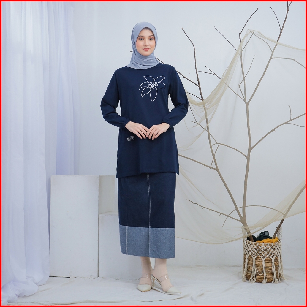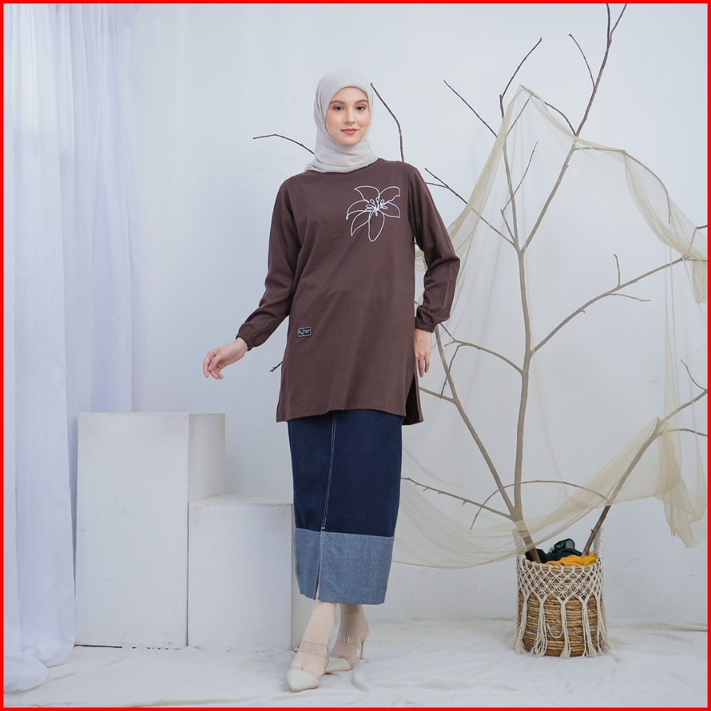 Long Tunik Kaos Kasual Motif Bunga Lengan Balon Atasan Wanita Terbaru Kombed 20s Jumbo Muslimah
