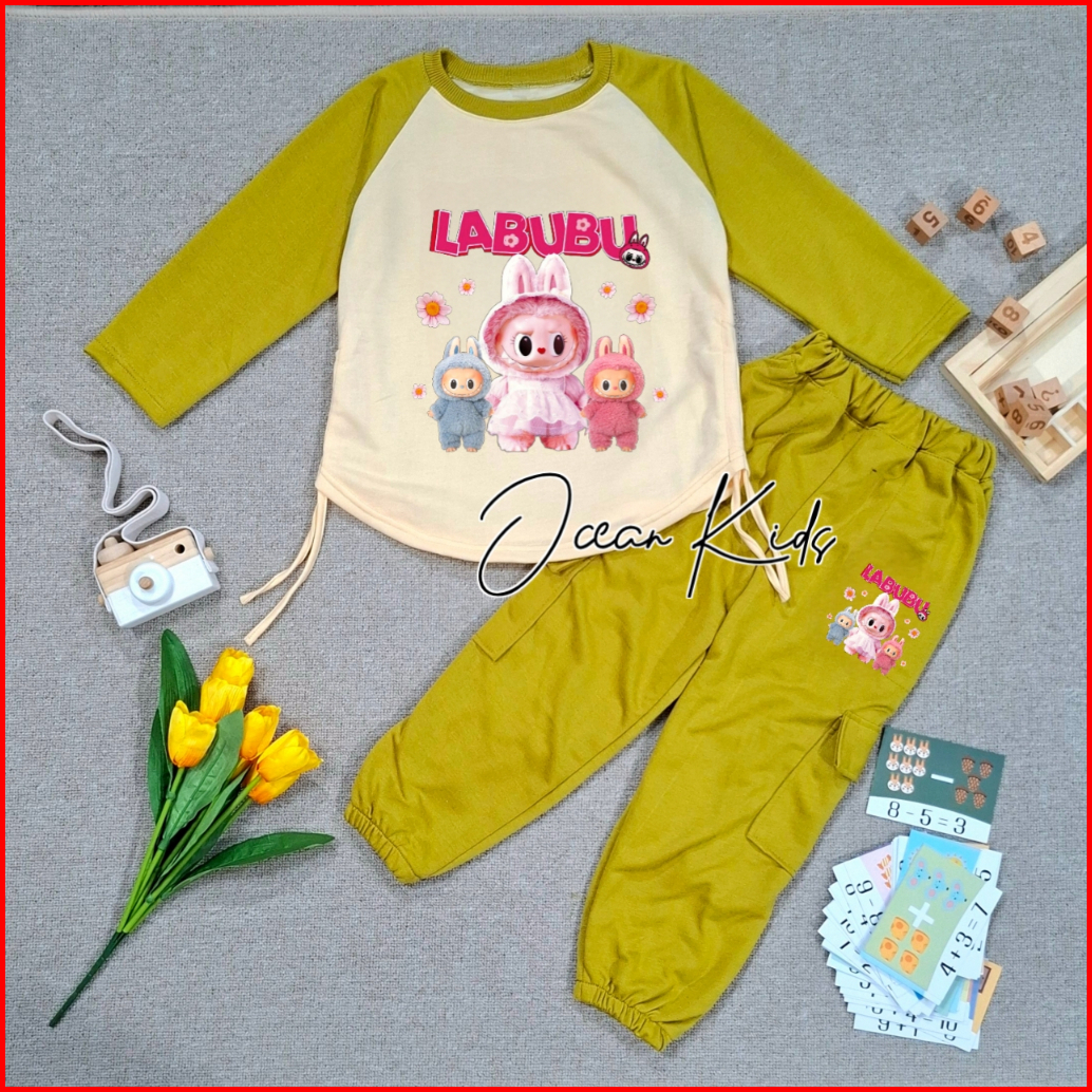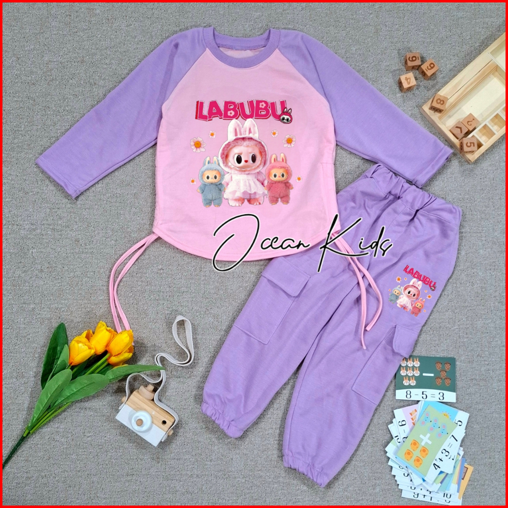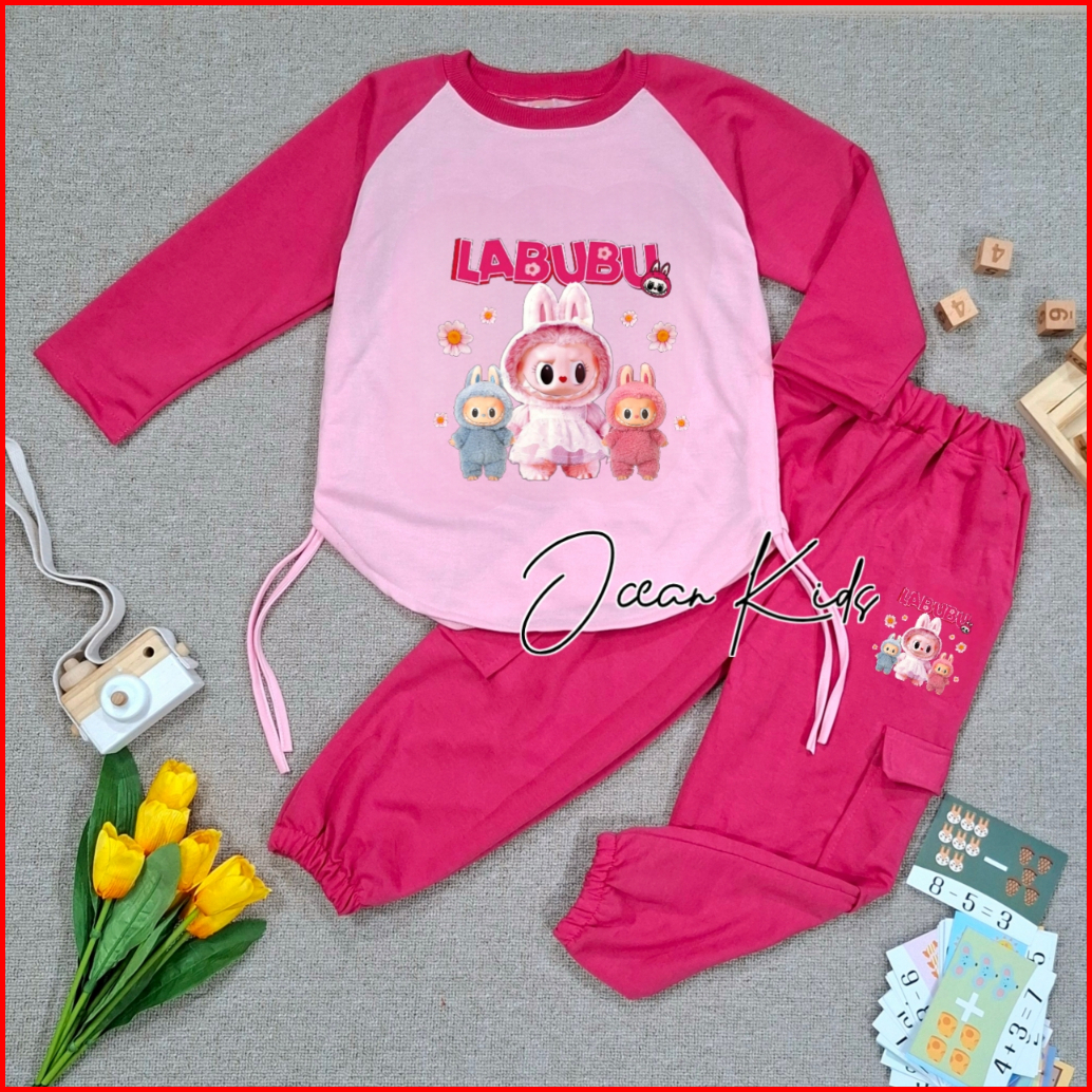 Setelan Labubu Anak Perempuan Viral Baju Anak Perempuan Setelan Joger Anak Terbaru 1-11 Tahun Motif Labubu
