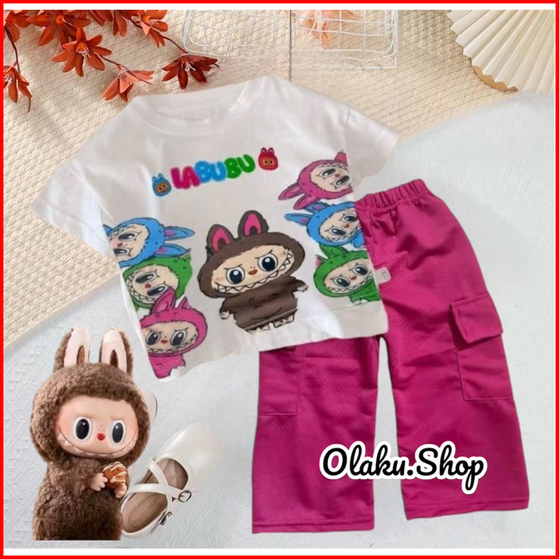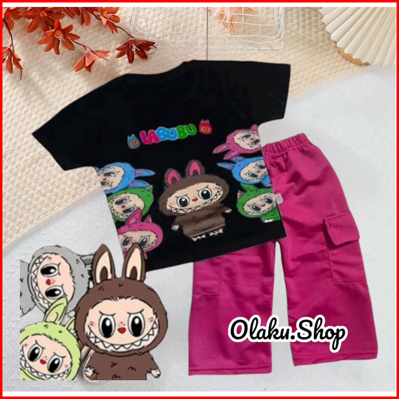 Baju Boneka Labubu Anak Perempuan Usia 1-10 Tahun Setelan Anak Motif Labubu Terbaru Oneset Labubu Anak-anak Baju Labubu