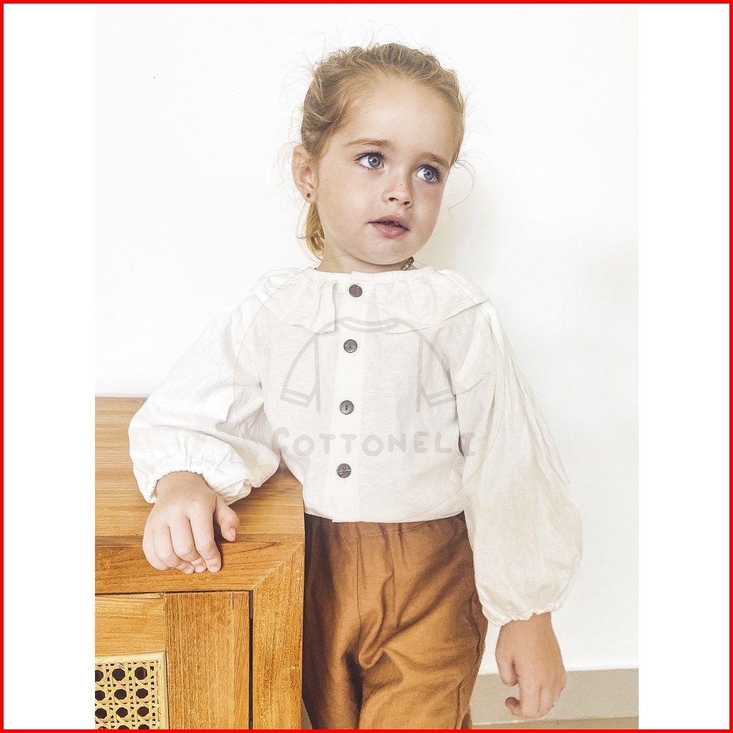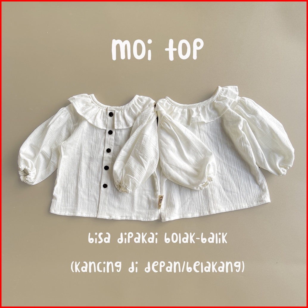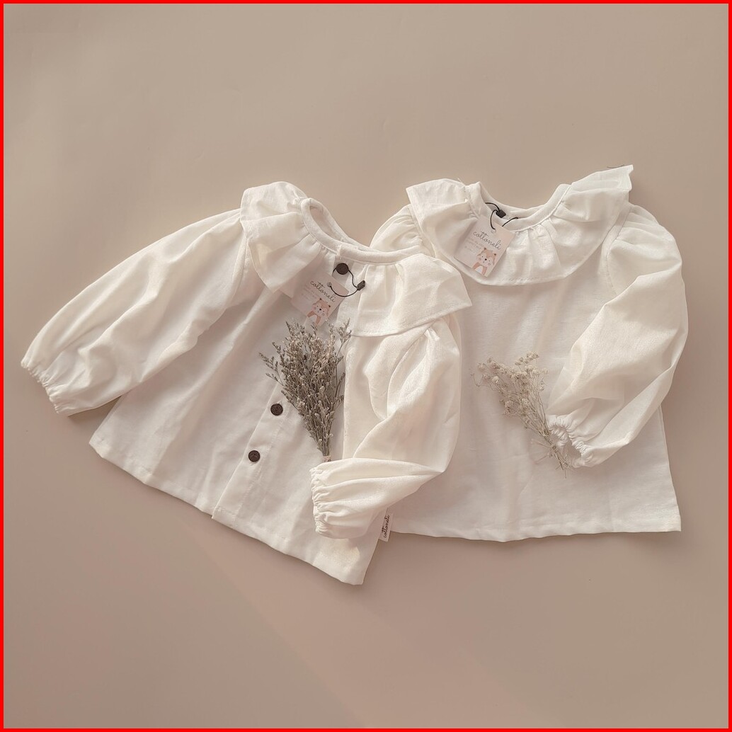 Moi - Cottoneli Hanya Atasan Rayon Linen Anak Perempuan Lengan Panjang Bisa Dipakai Bolak-balik Putih Motif Bunga Viral