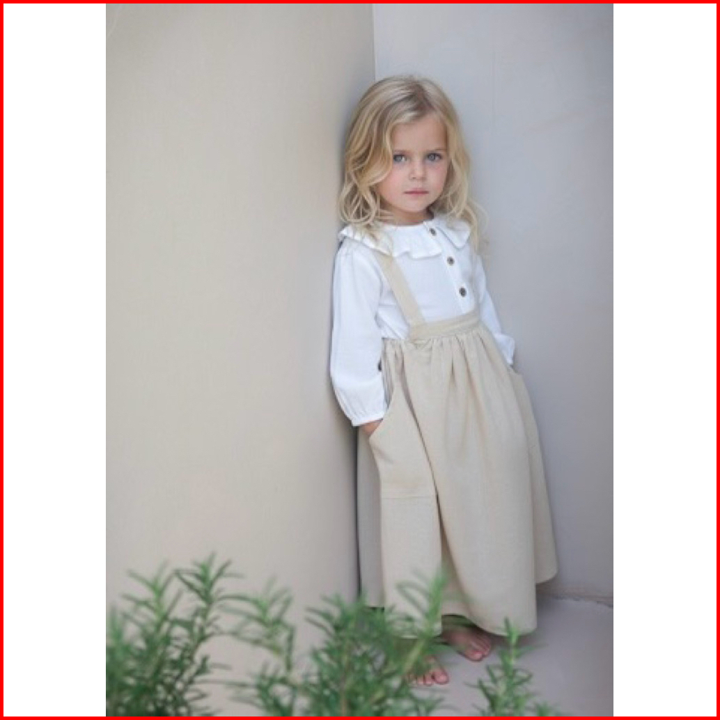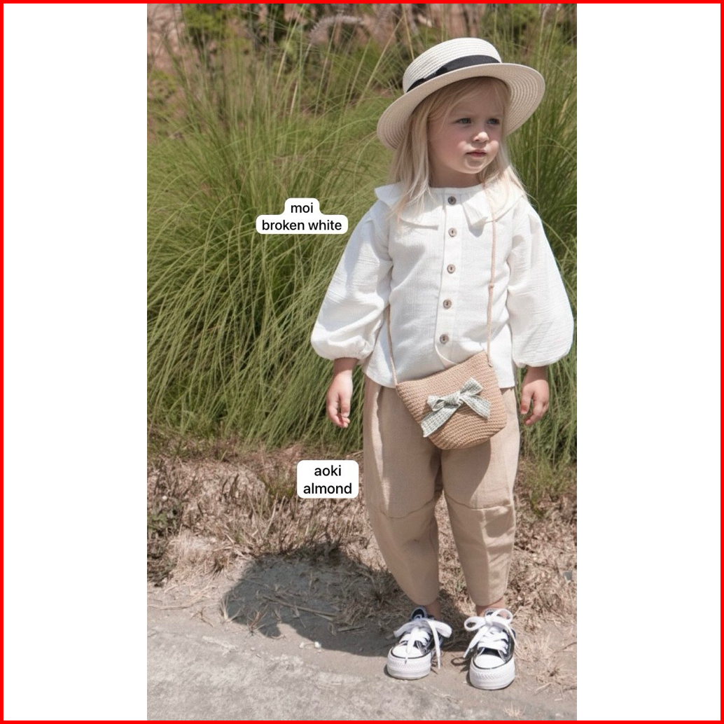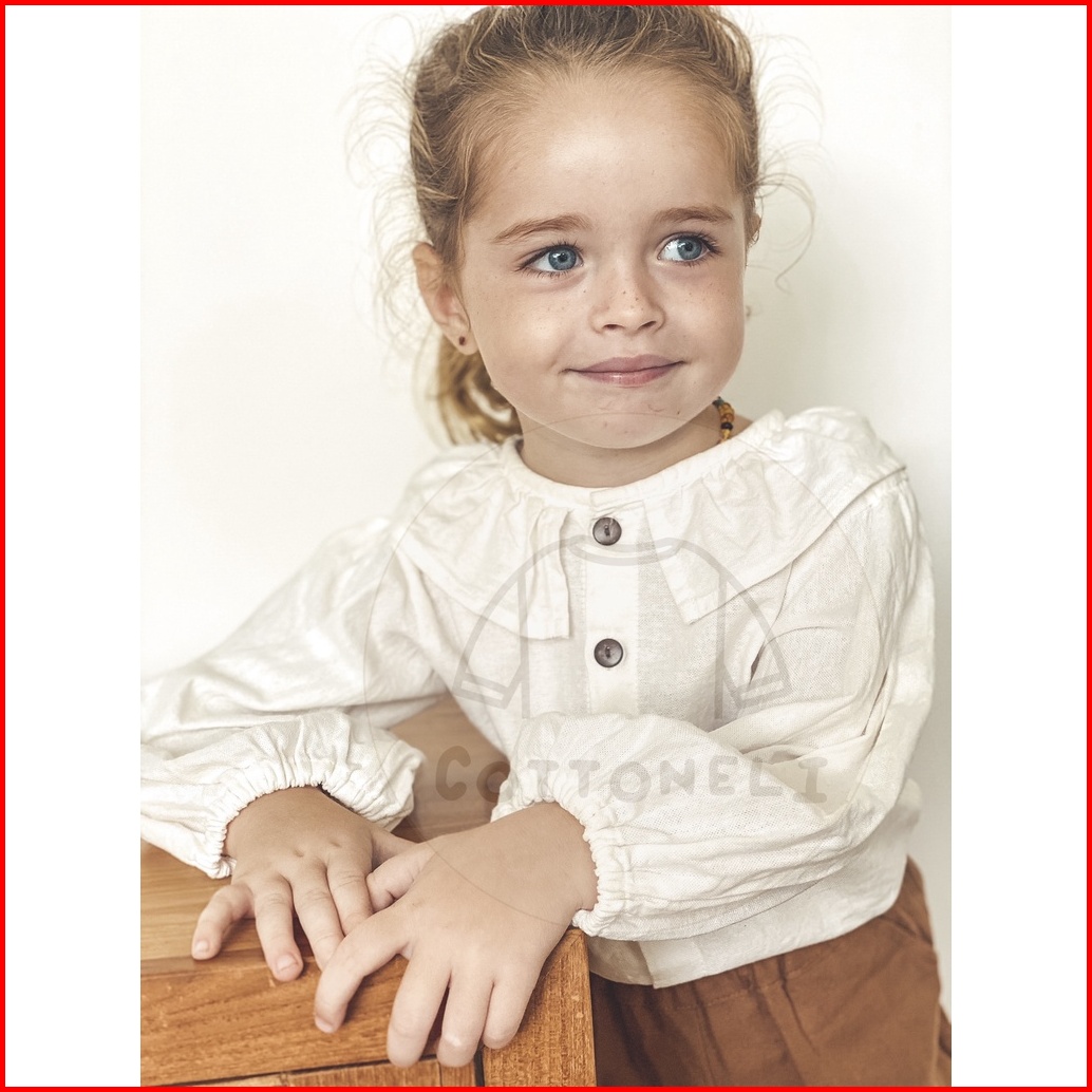 Moi - Cottoneli Hanya Atasan Rayon Linen Anak Perempuan Lengan Panjang Bisa Dipakai Bolak-balik Putih Motif Bunga Viral