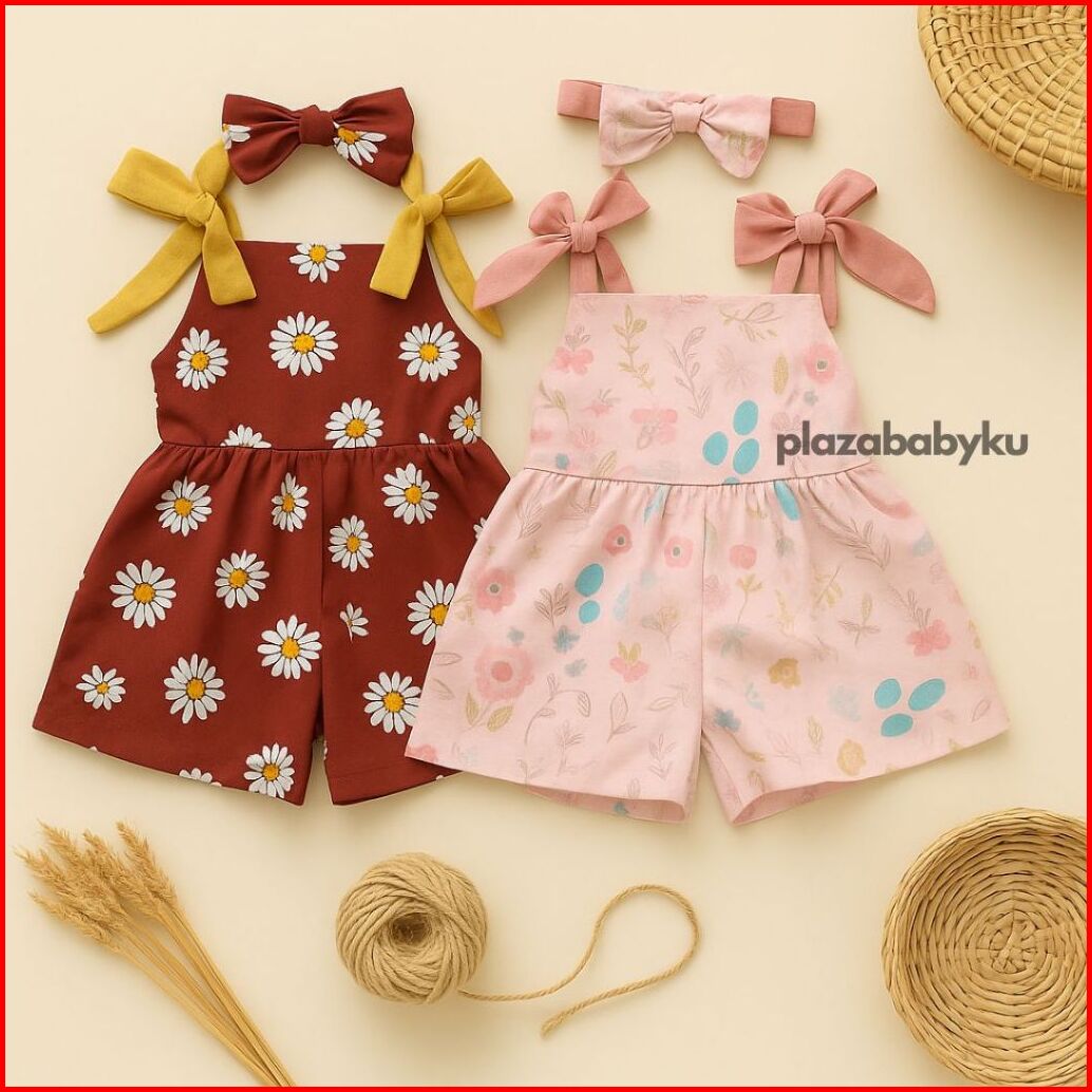 Promo 9.9 Plazababyku Jumpsuit Anya Setelan Anak Perempuan Jumper Bayi Motif Bunga Lucu Free Headband Bubibee