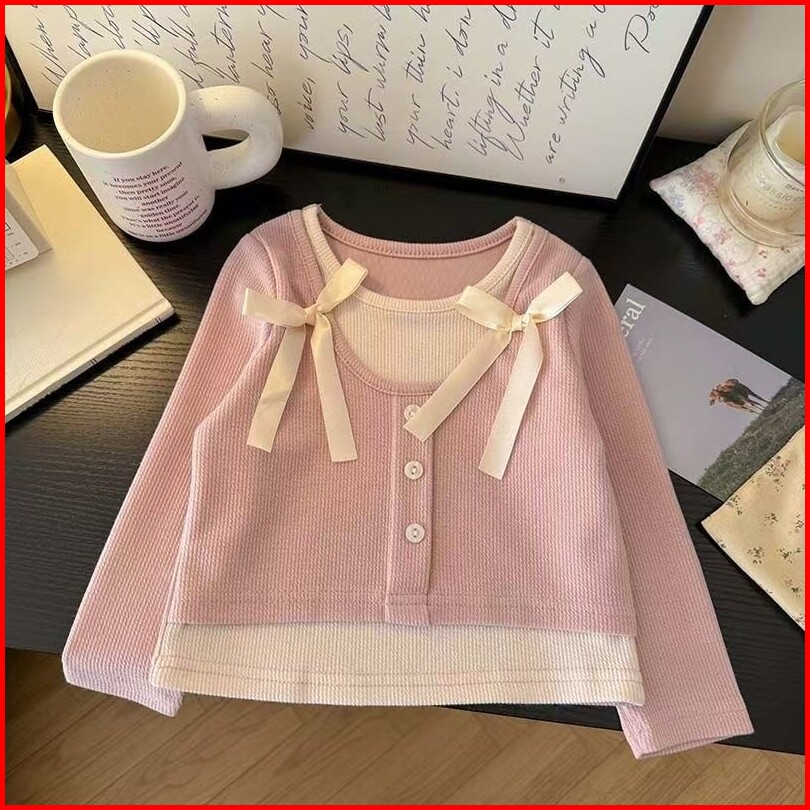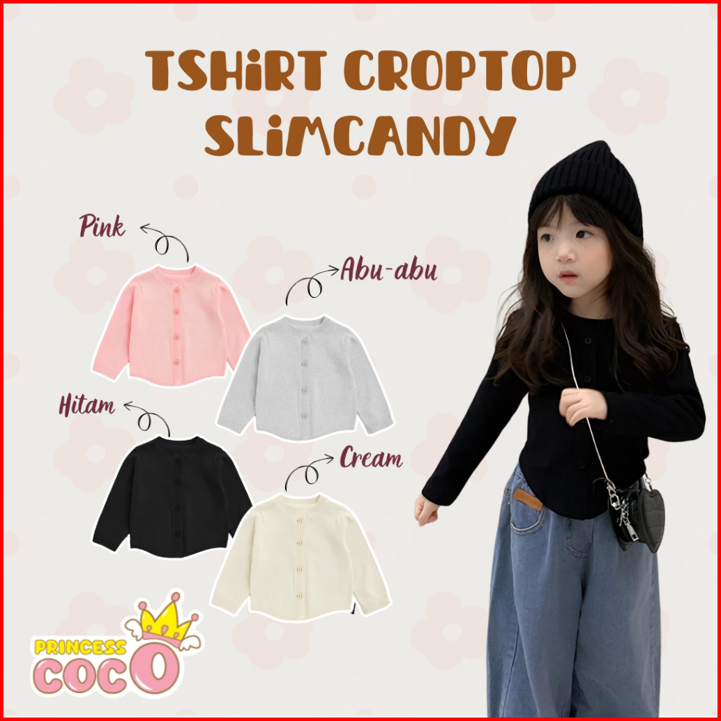 Princess Coco 1-10 Tahun Croptop T-shirt Girls Spring And Autumn Slim Candy Color Bottoming Shirt Kategori Baru A Top Fe
