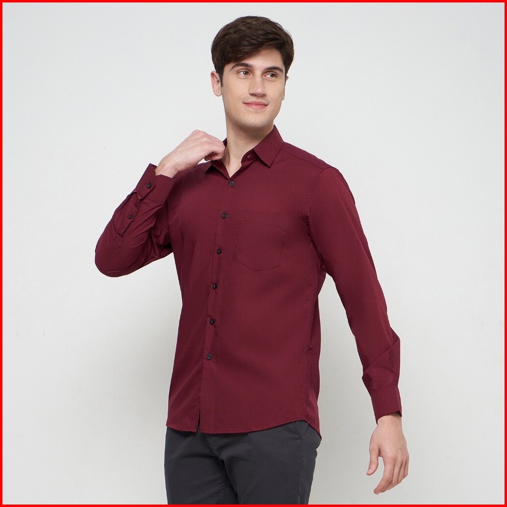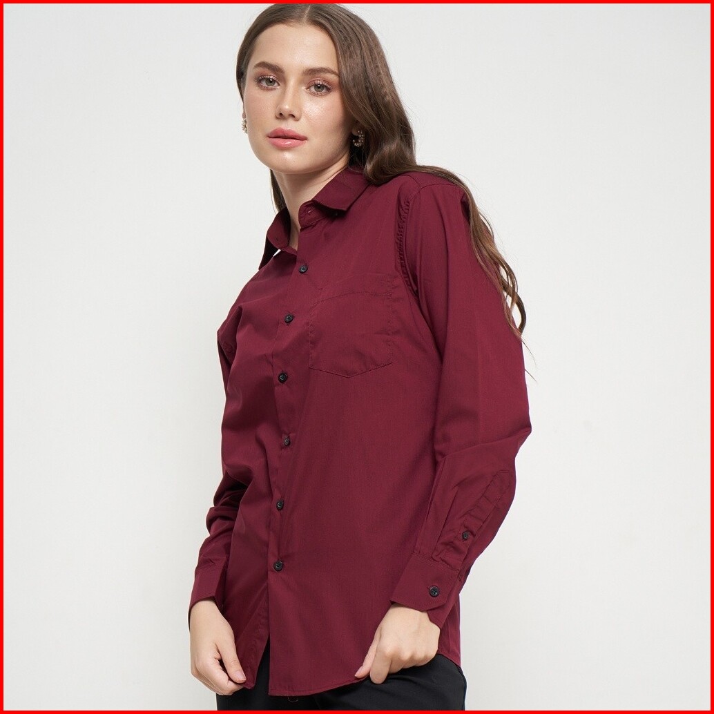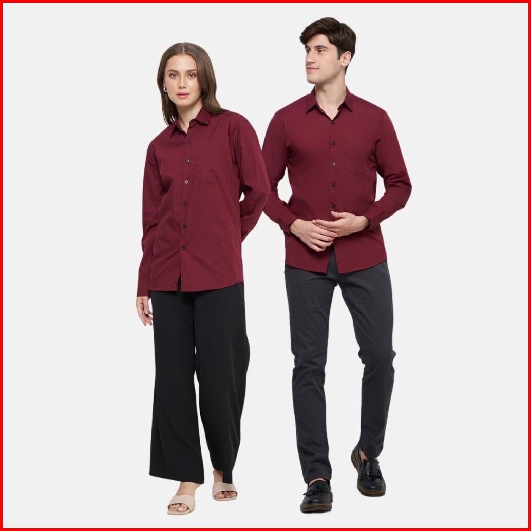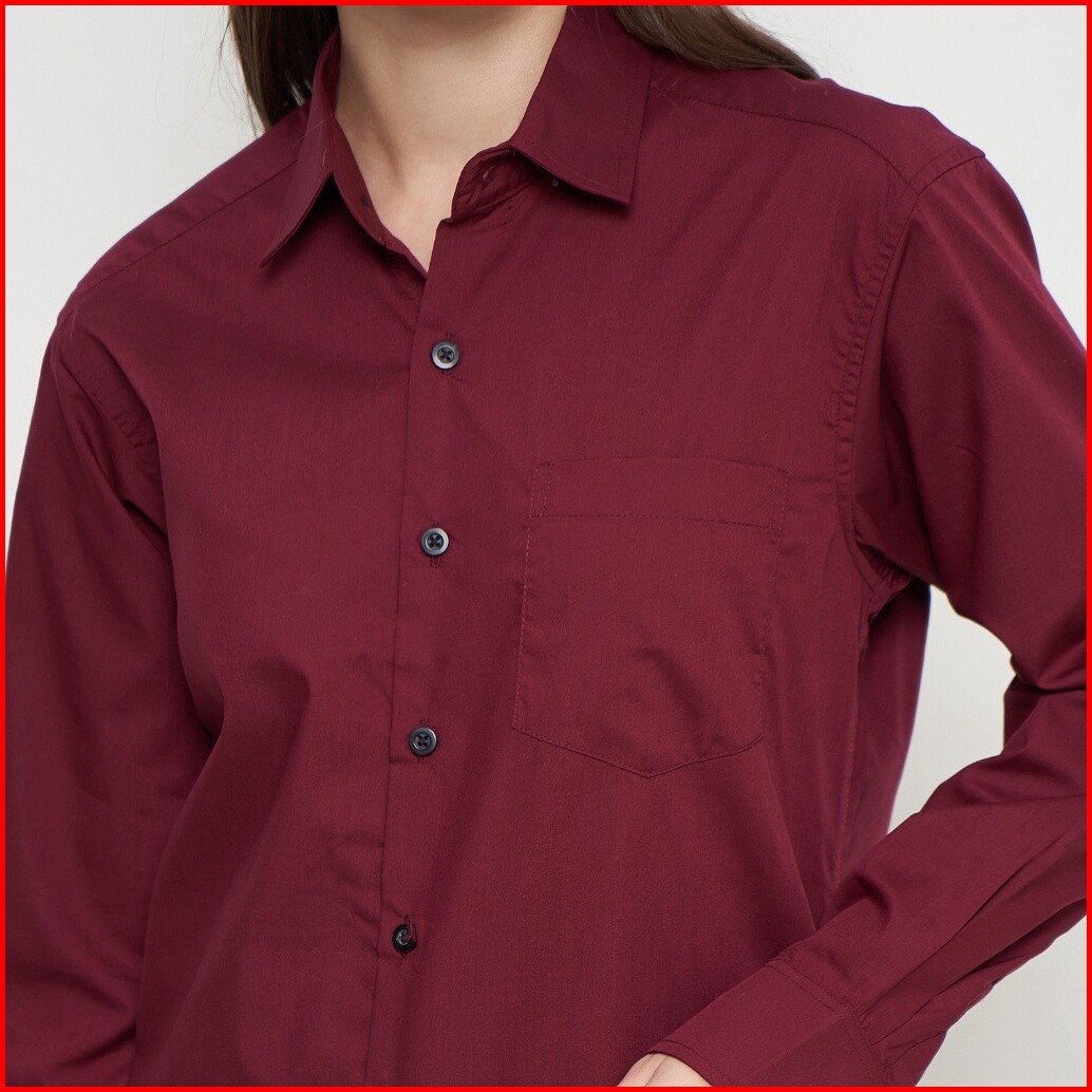 Kemeja Polos Kemeja Formal Lengan Panjang Maroon Unisex Olr128