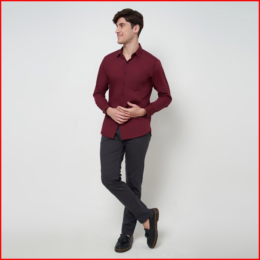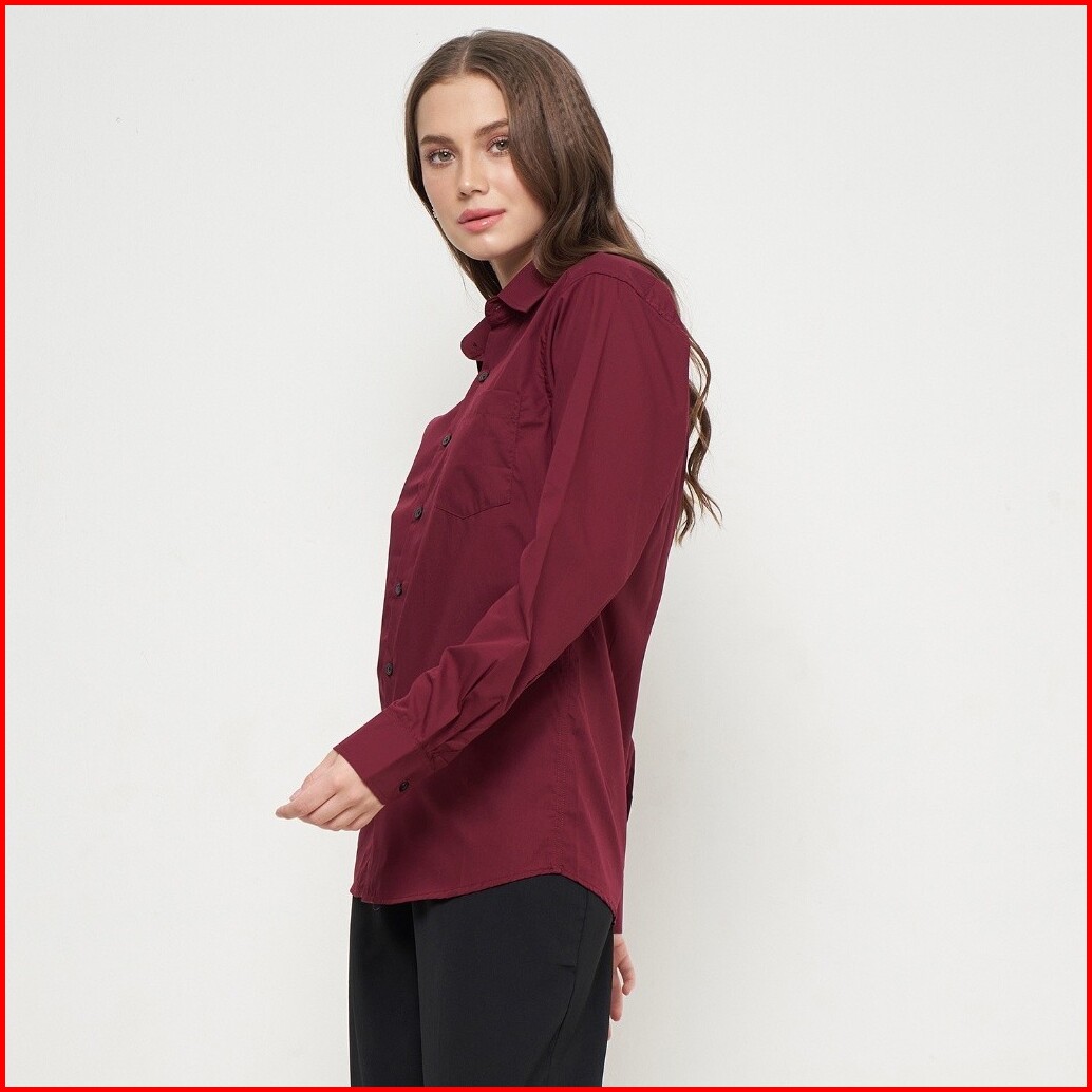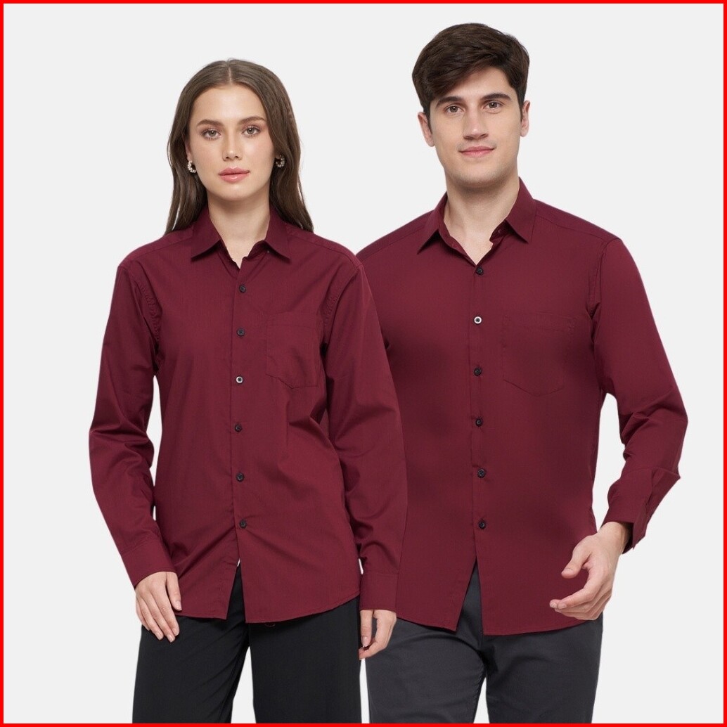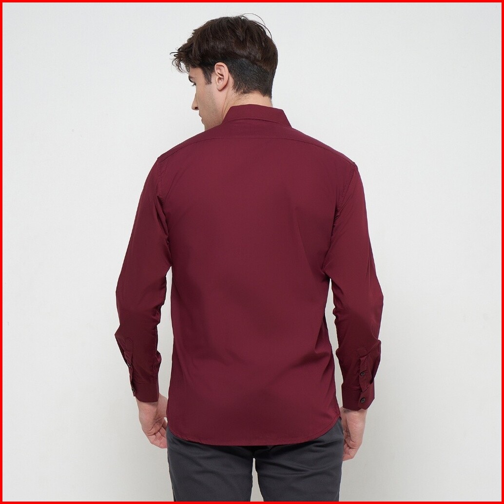 Kemeja Polos Kemeja Formal Lengan Panjang Maroon Unisex Olr128