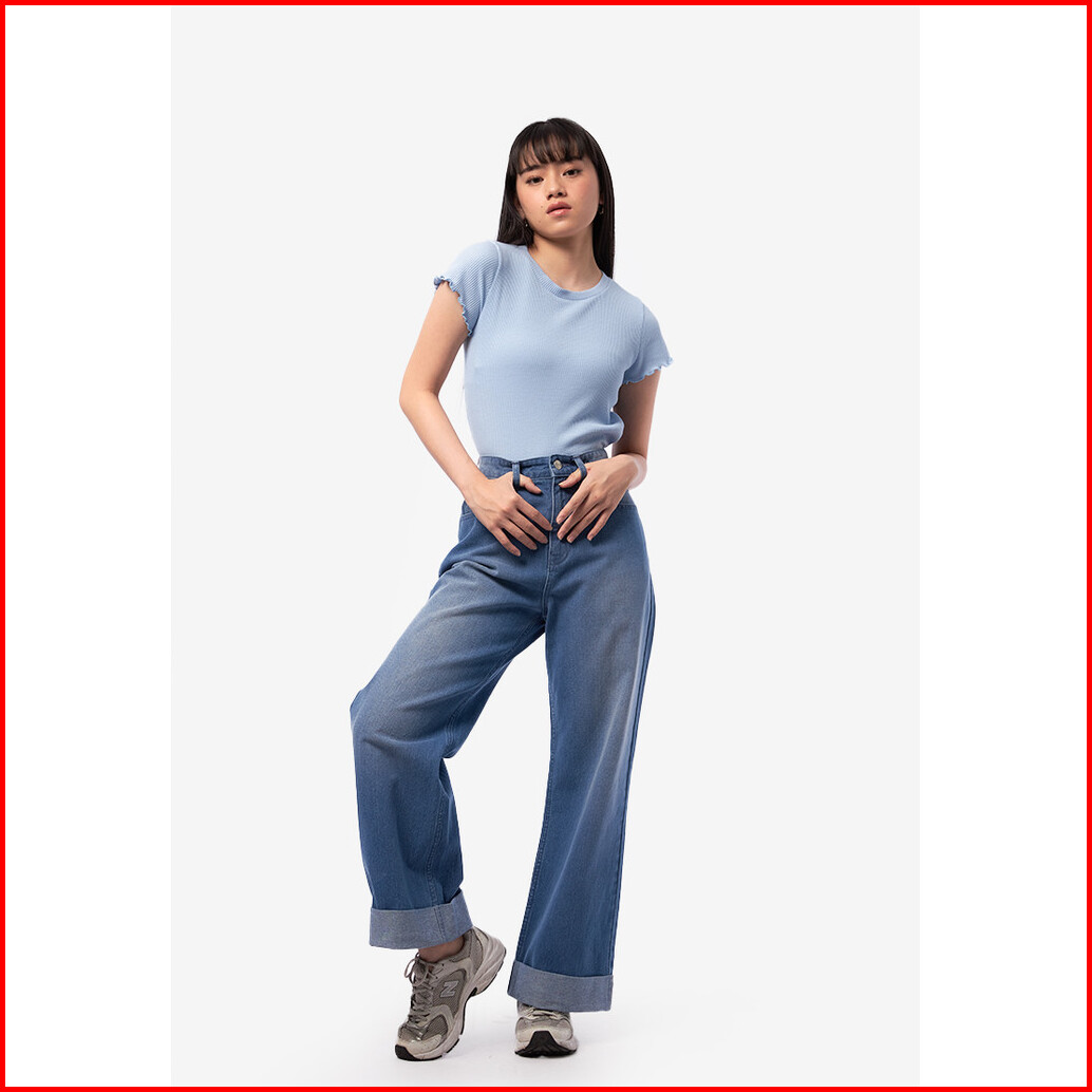Colorbox Rolled Up Wide Leg Denim Pants Med Blue