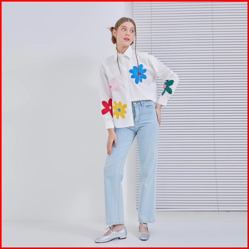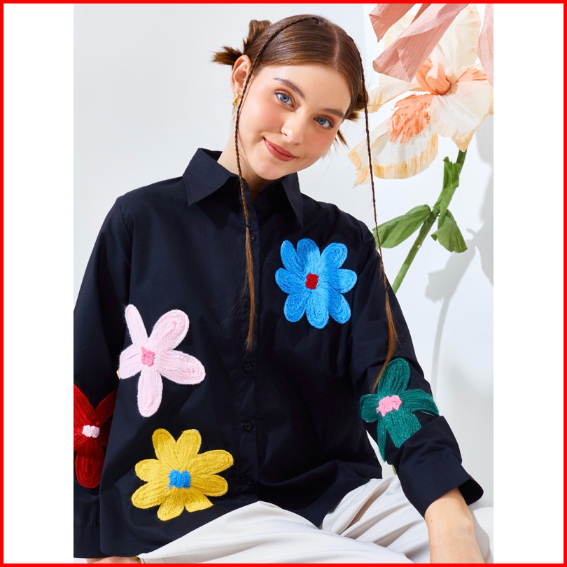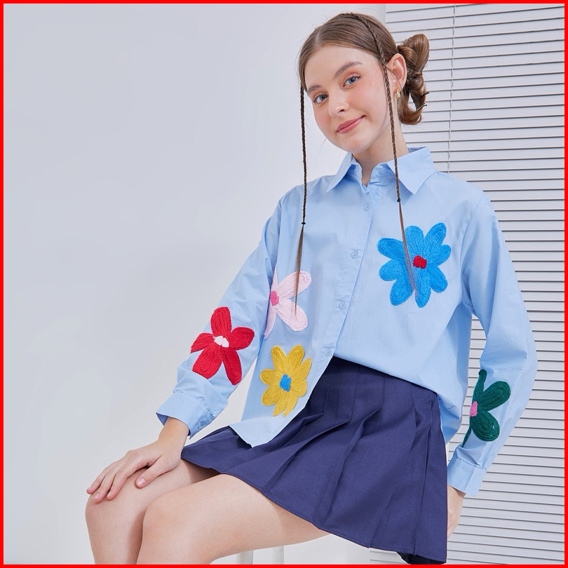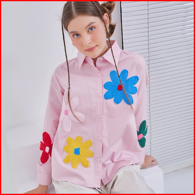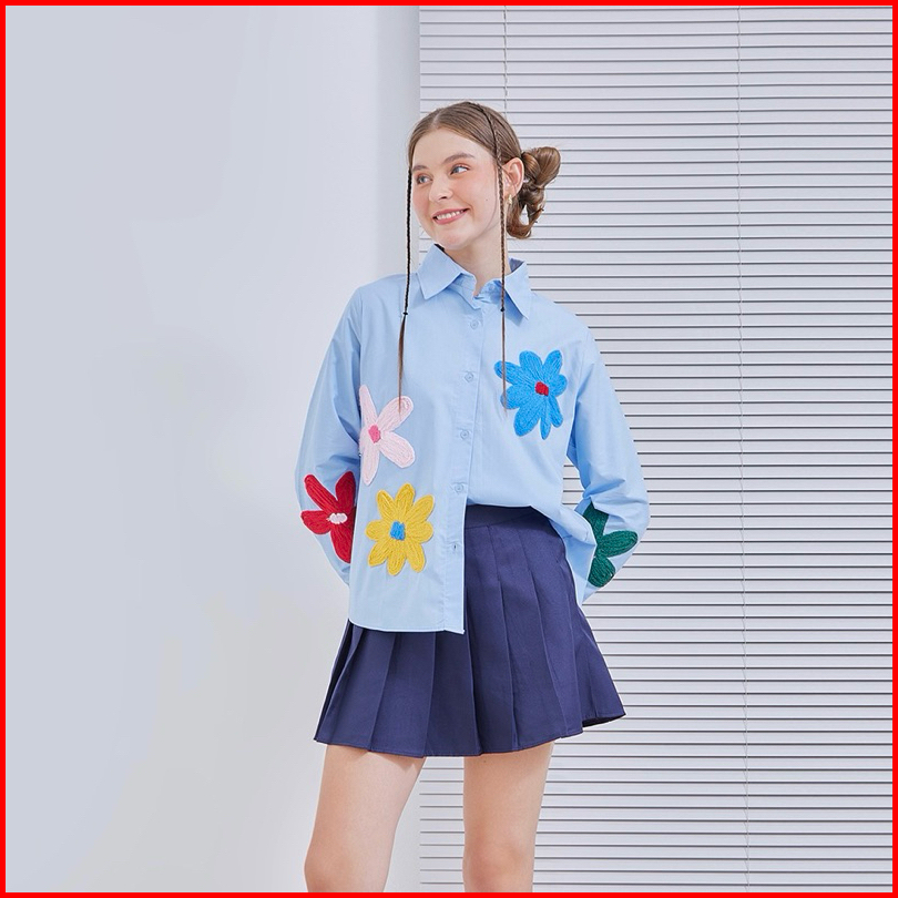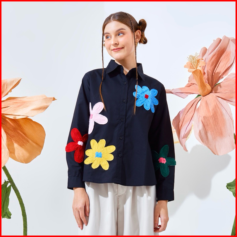 Senchi - Niwa Flower Shirt Atasan Kemeja Bunga Wanita Kemeja Wanita Style Jepang Korea Atasan Wanita Bunga