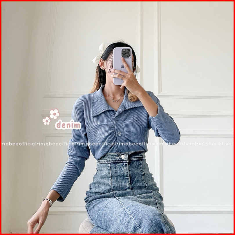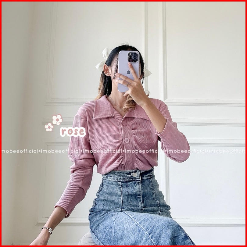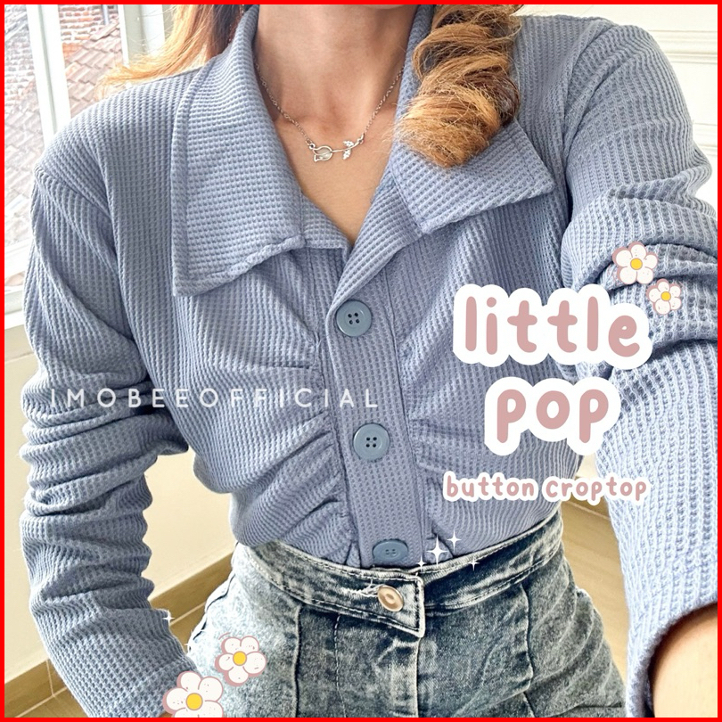 Little Pop Button Croptop Atasan Crop Kerut Kancing Slim Fit Body