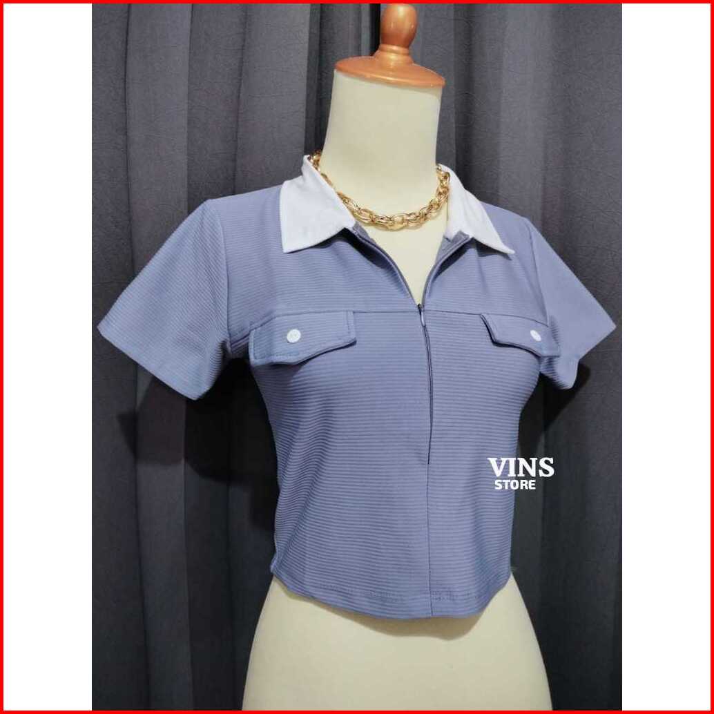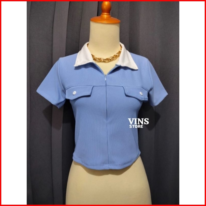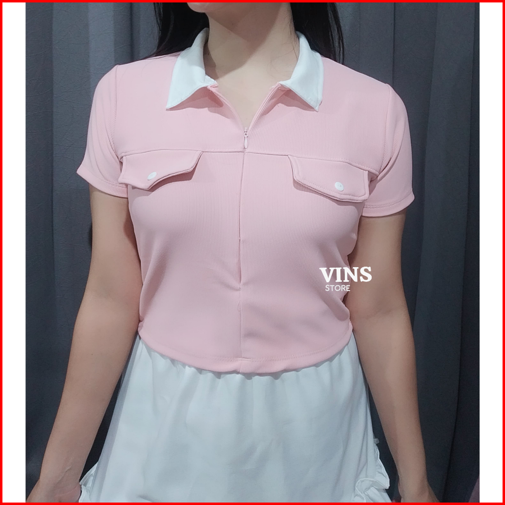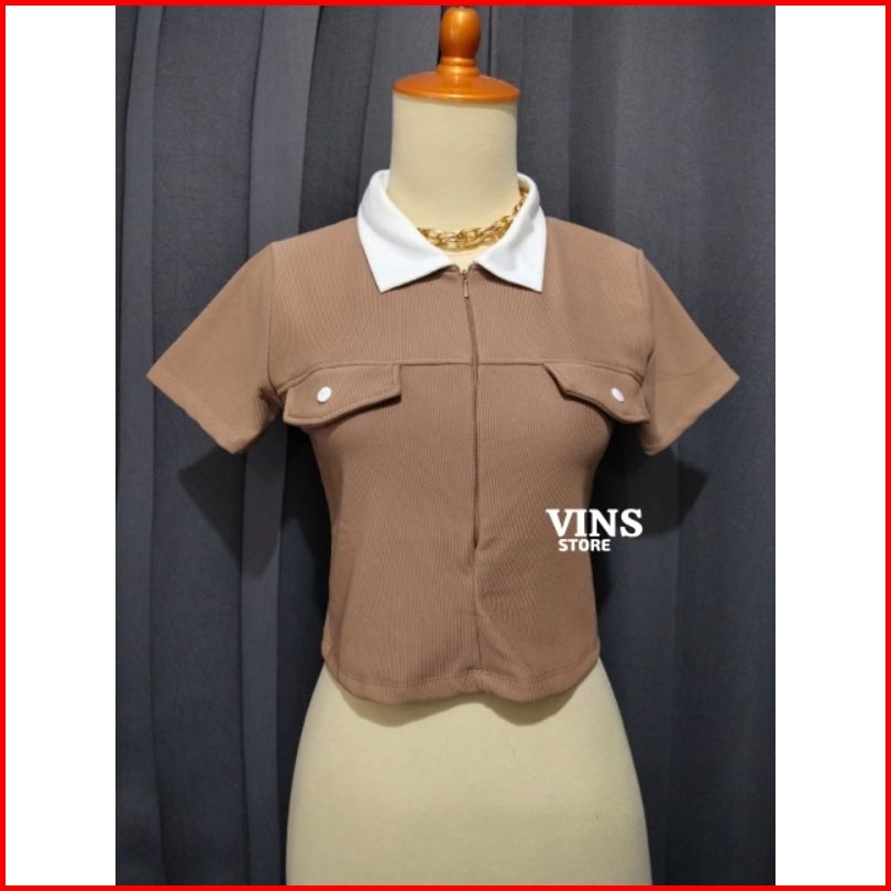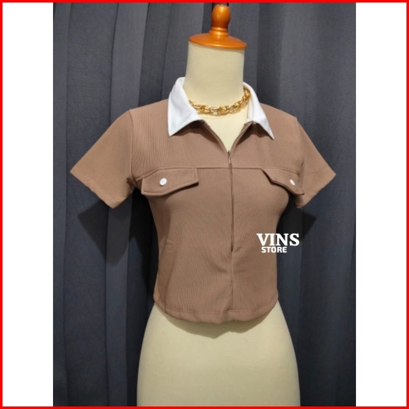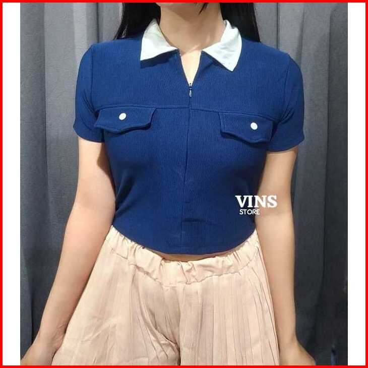 Vinest - Crop Top Keiko Korean Style Slimfit Knit Premium Atasan Wanita Korean Knit Premium