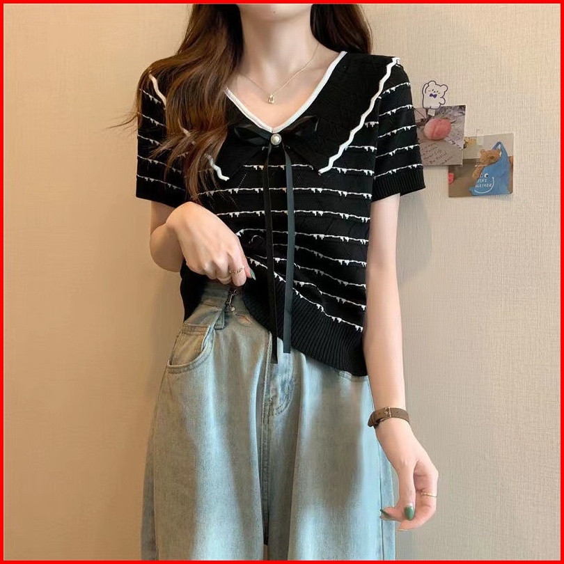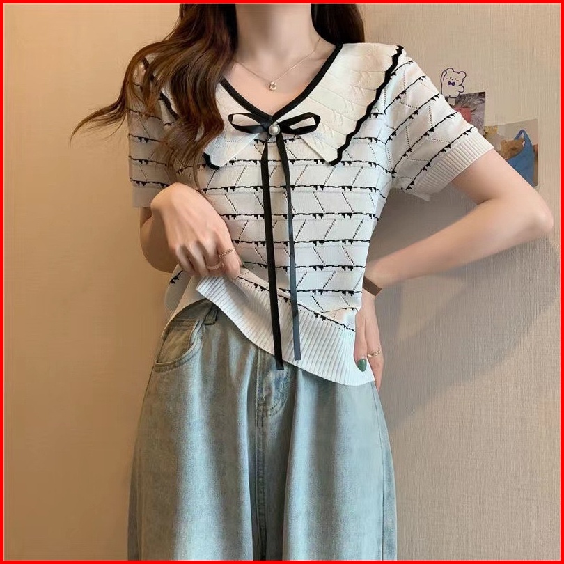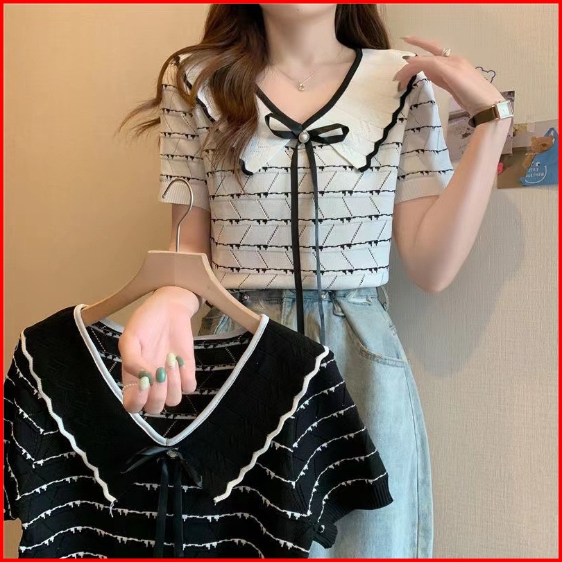 Collar Blouse Ribbon Knit Import Bl829 Atasan Fashion Wanita