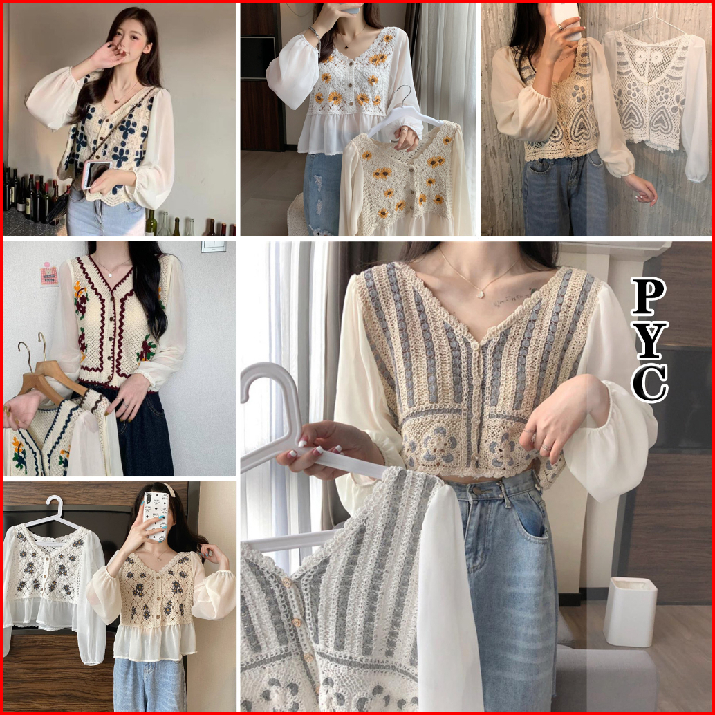 Puffy Blouse Korea Crop Blouse Import Premium -