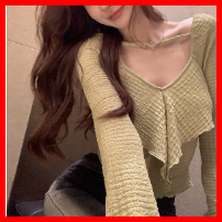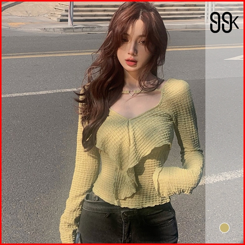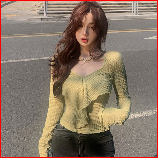 Green Textured Knit Look Ruffle Tie Shirt 2247
