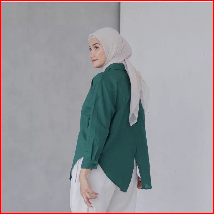 Baju Atasan Kemeja Wanita Oversize Nelka Shirt Linen Polos Super Premium Tebal