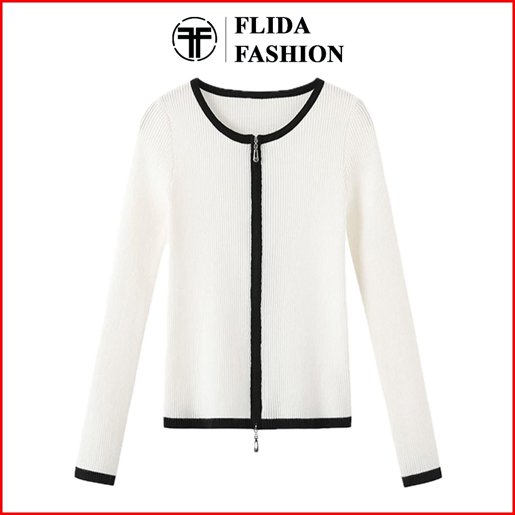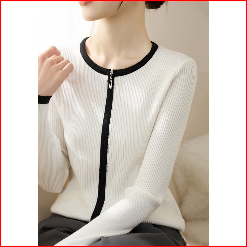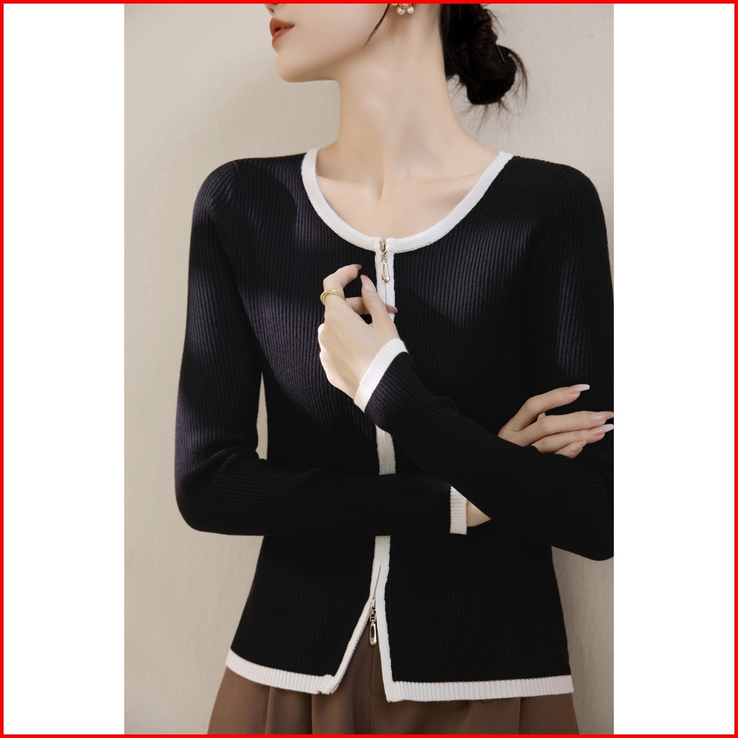Flida Fashion Atasan Rajut Wanita A Duo Resleting Lengan Panjang - Bahan Premium - Tangan Remaja D26