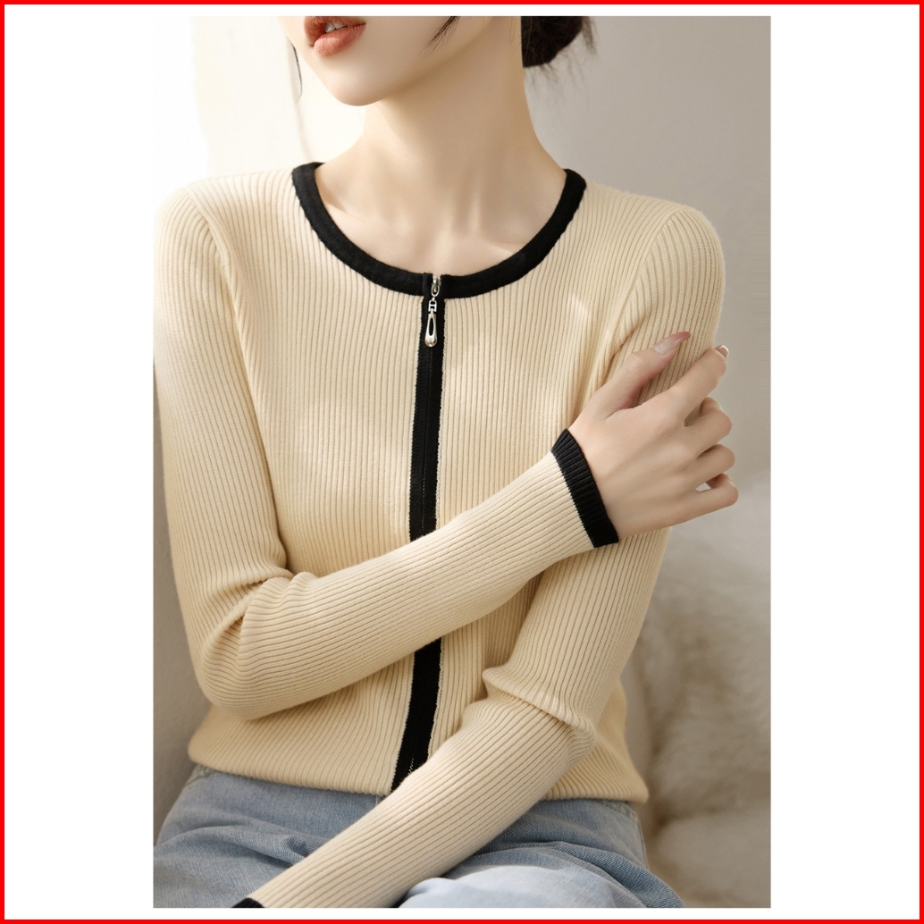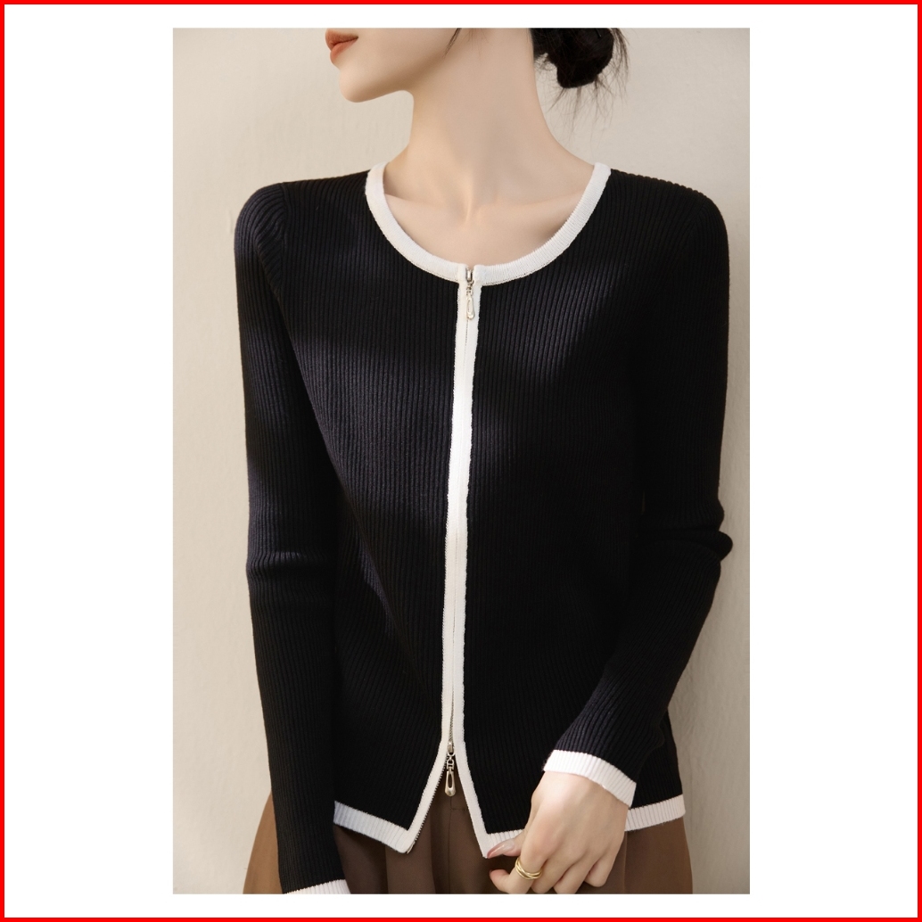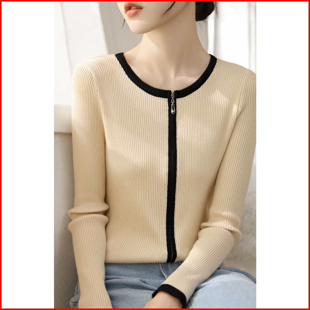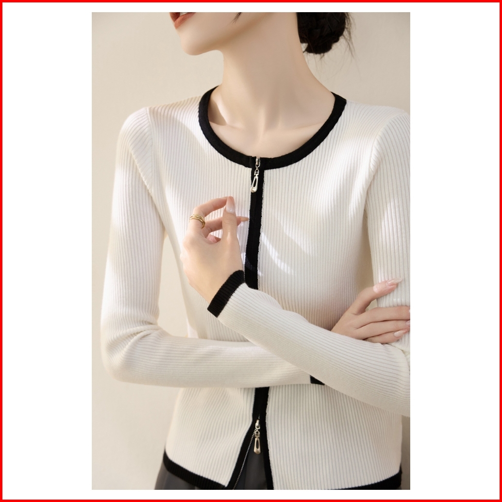 Flida Fashion Atasan Rajut Wanita A Duo Resleting Lengan Panjang - Bahan Premium - Tangan Remaja D26