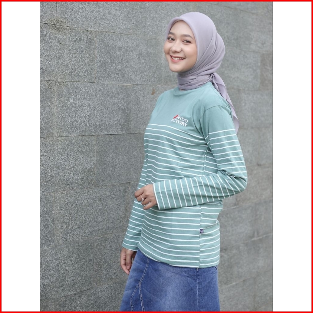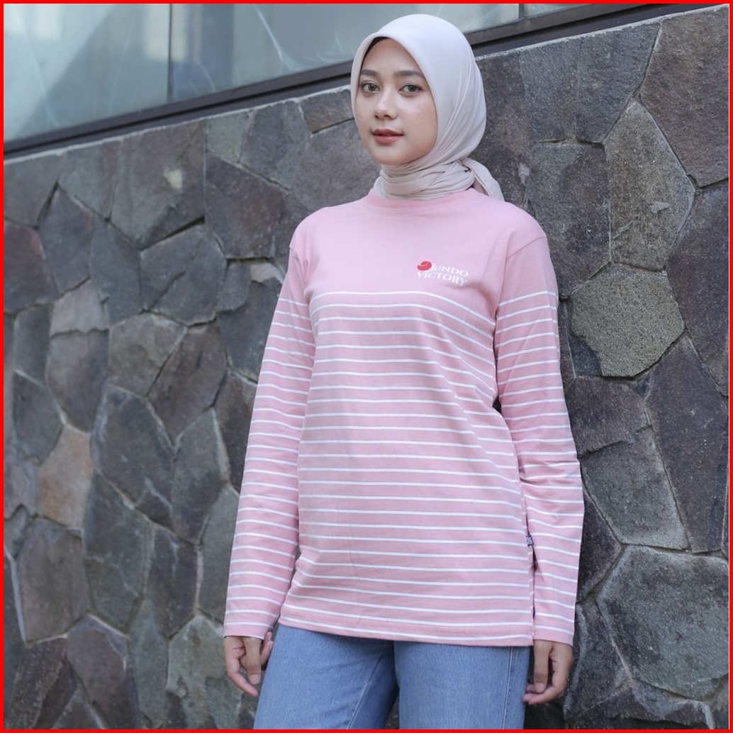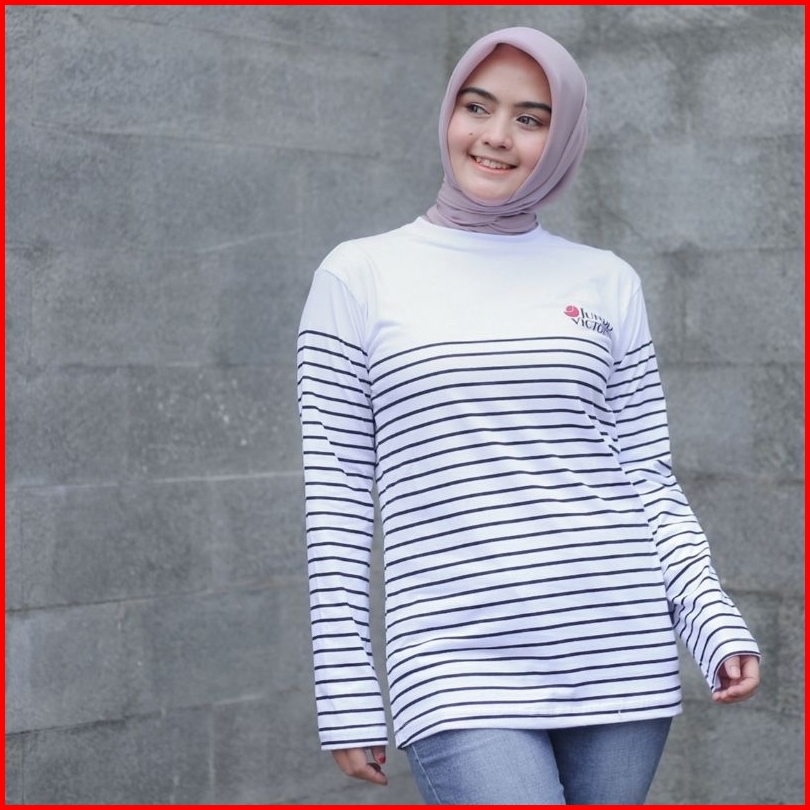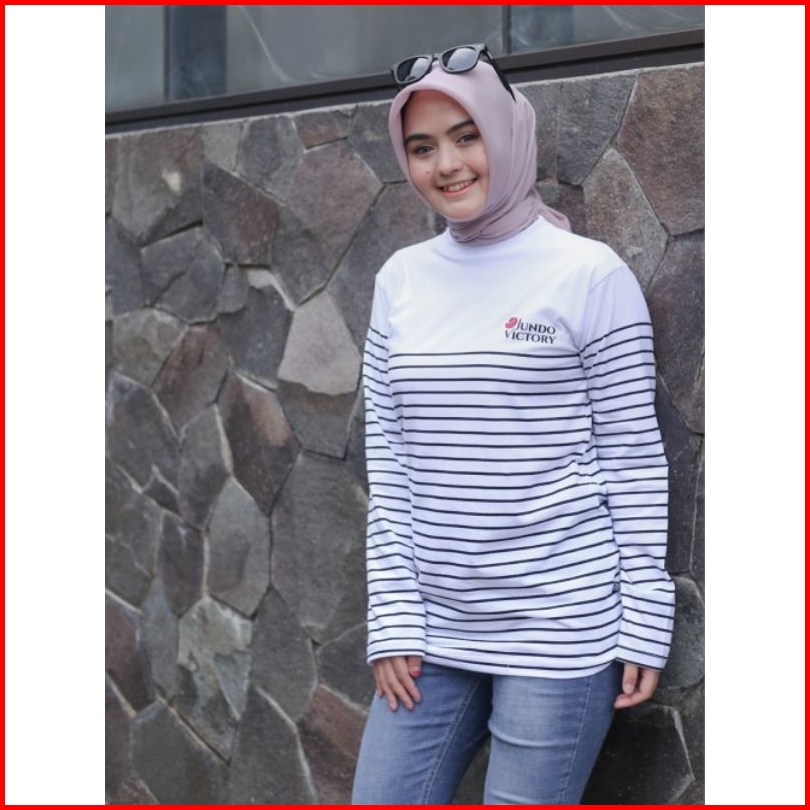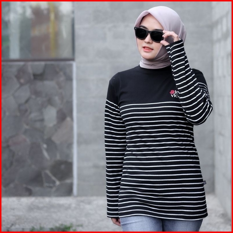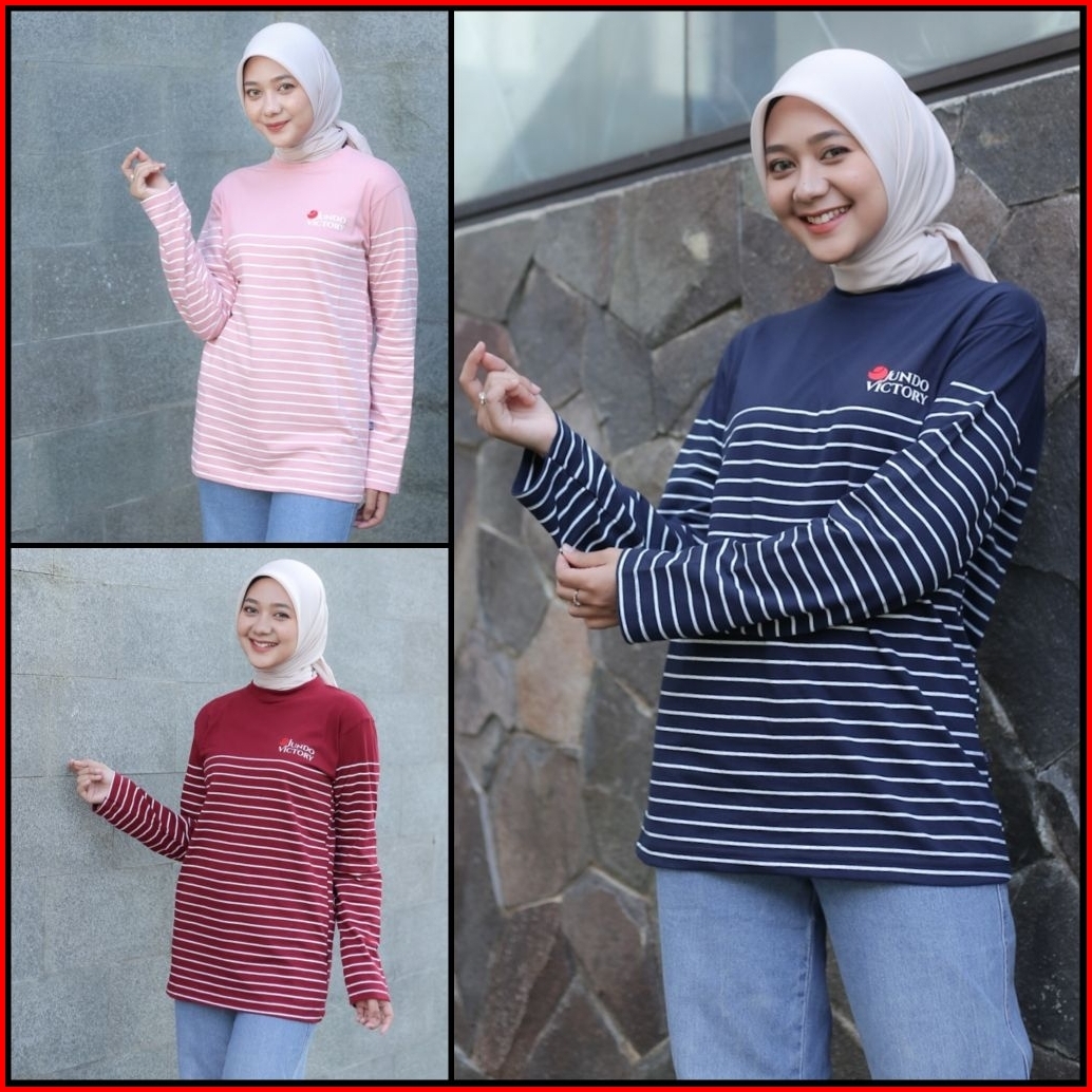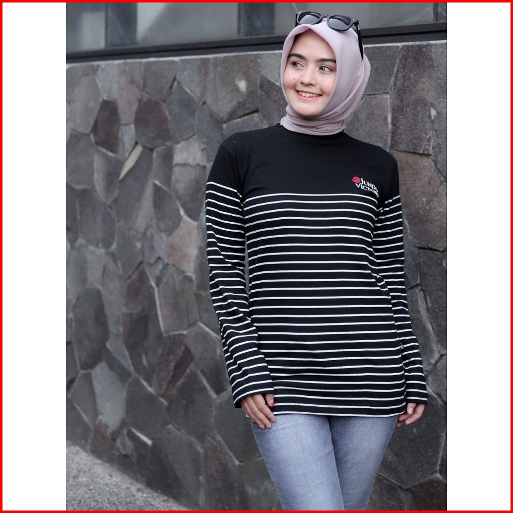 Terlaris Kaos Salur Lengan Panjang Jundo Ld 100 Ld 110 Atasan Muslimah Kaos Ootd Wanita Kaos Stripe