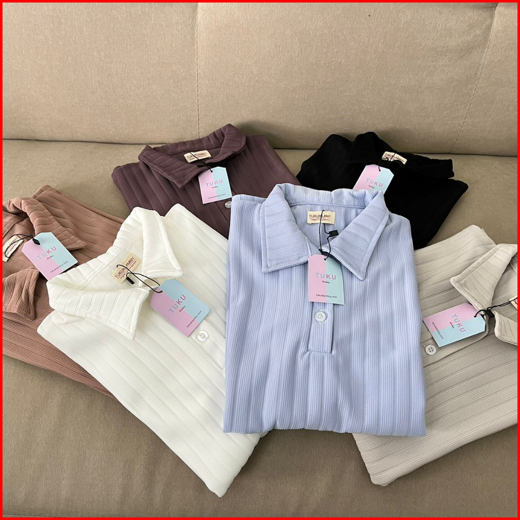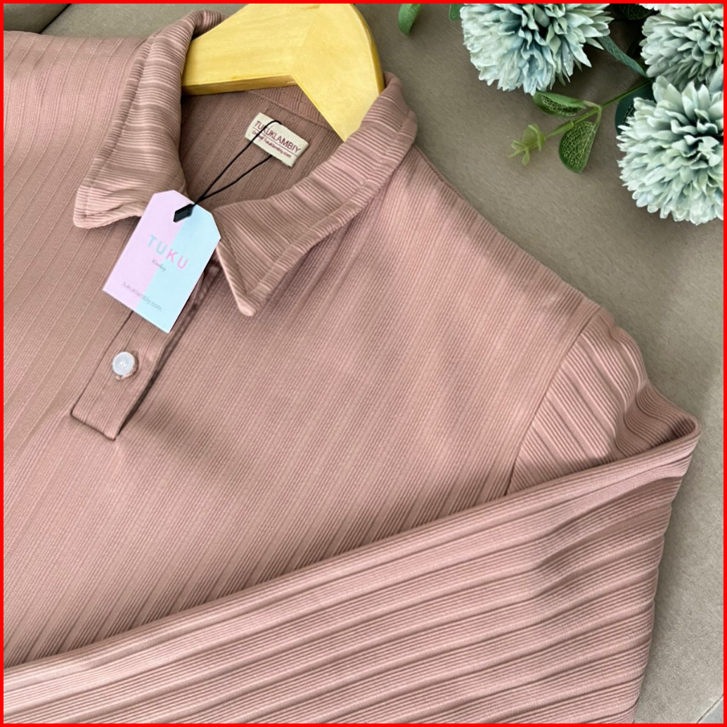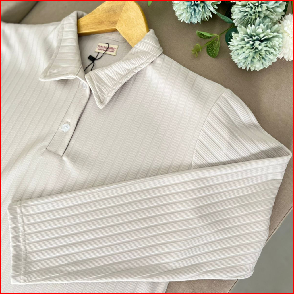Tukuklambiy Celline - Kaos Polo Lengan Panjang Knit Wanita - Women Longsleeve - Strech T-shirt