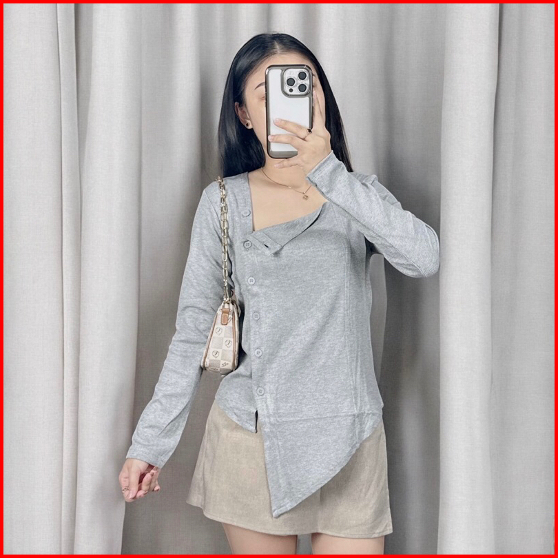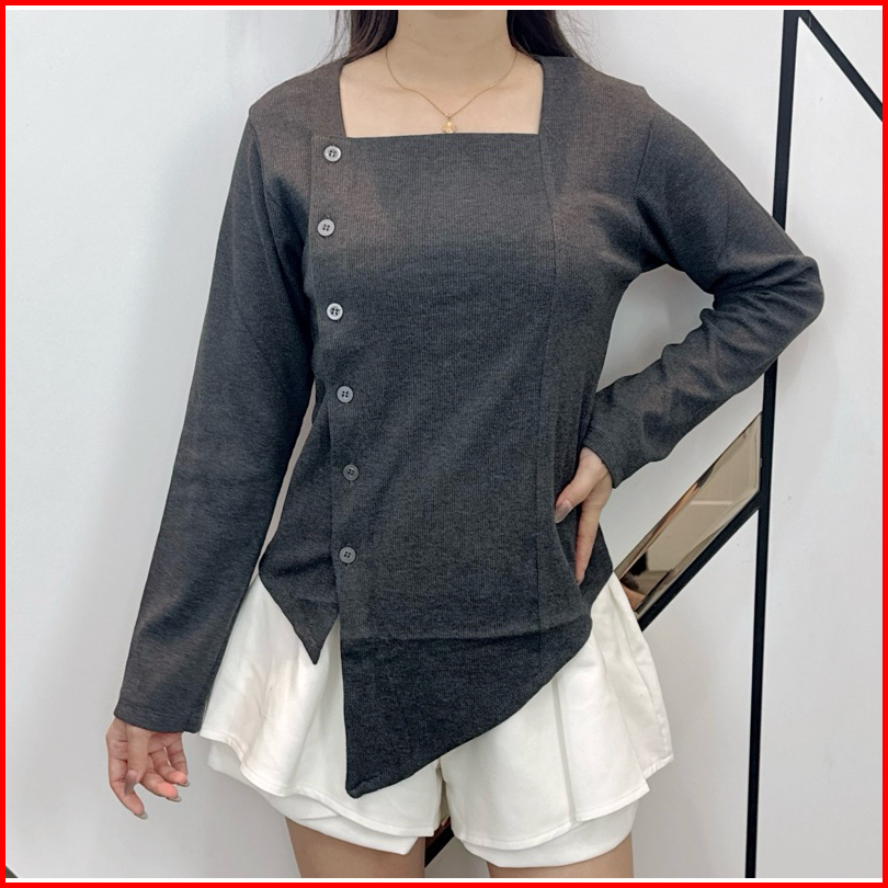 Charming Cloth Zoe Knit Top Button Atasan Knit Wanita Korean Top Baju Knit Wanita Lengan Panjang Basic Long Sleeve 548