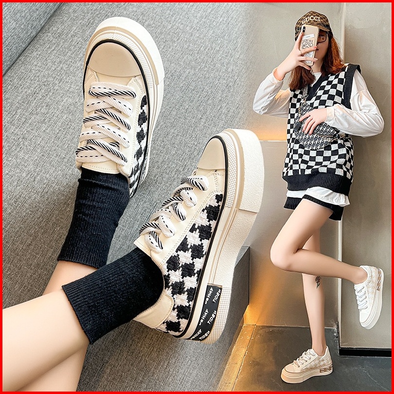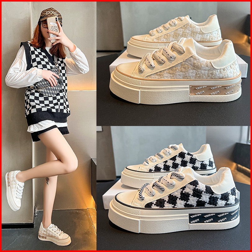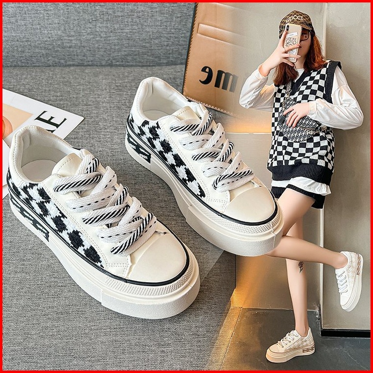Sepatu Sneakers Wanita Fashion Shoes Corak Kotak 279 Onlinemall