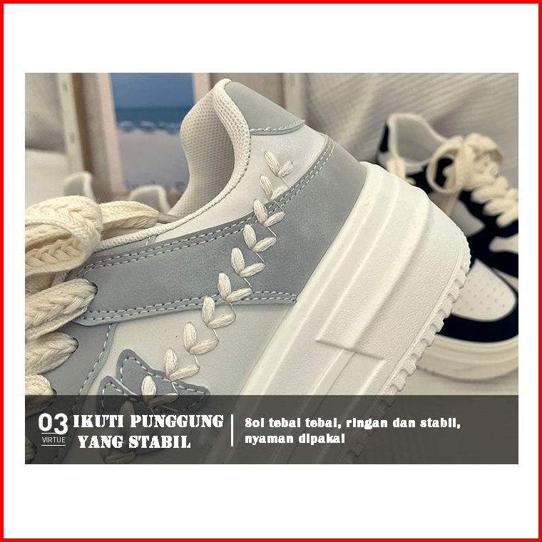 Sepatu Sneakers Tali Simpel Kulit Wanita Casual Sepatu Sneakers Wanita Korea Putih Sepatu Perempuan Sekolah Size 36-40