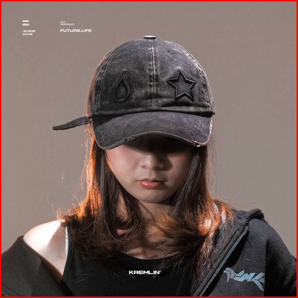 Kremlin Topi Washed Raw Polo Cap Smoke Black Hat - Hisoka
