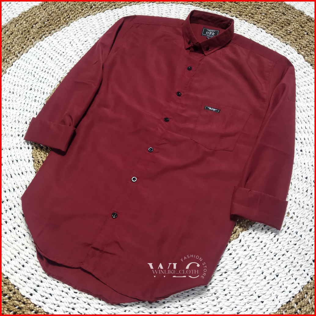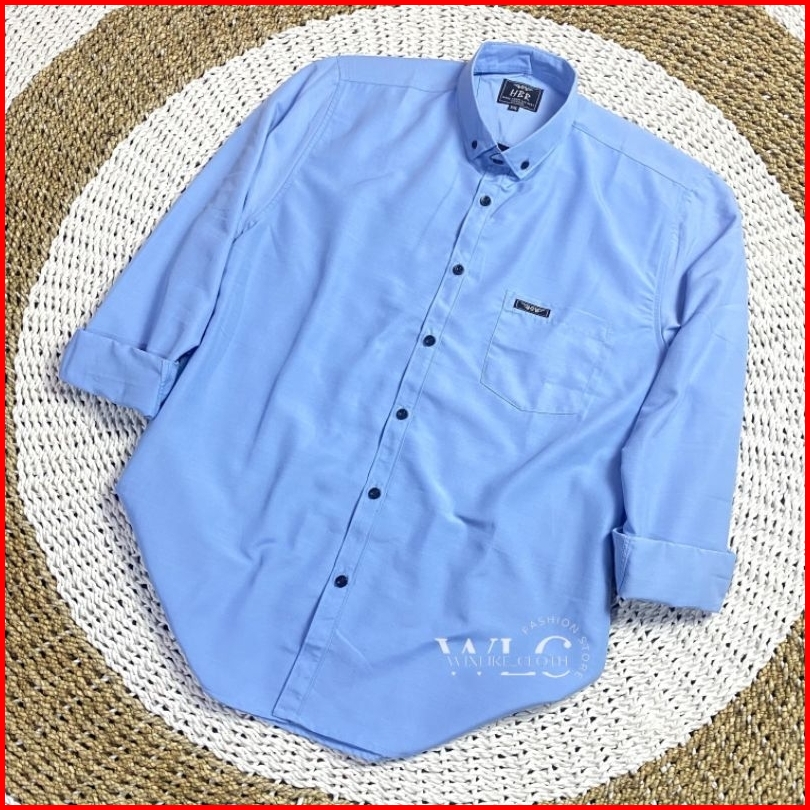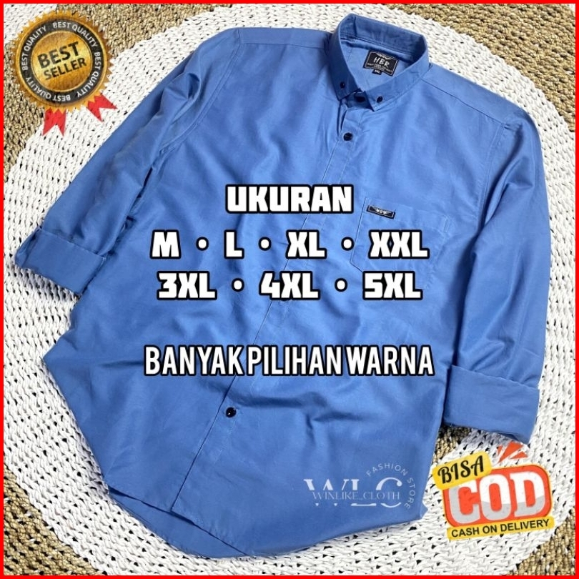 Kemeja Polos Panjang Pria Polos Warna Biru Denim Katun Santai Size M L Xl Xxl