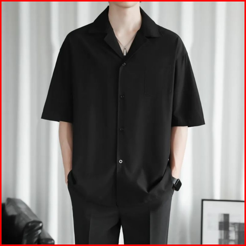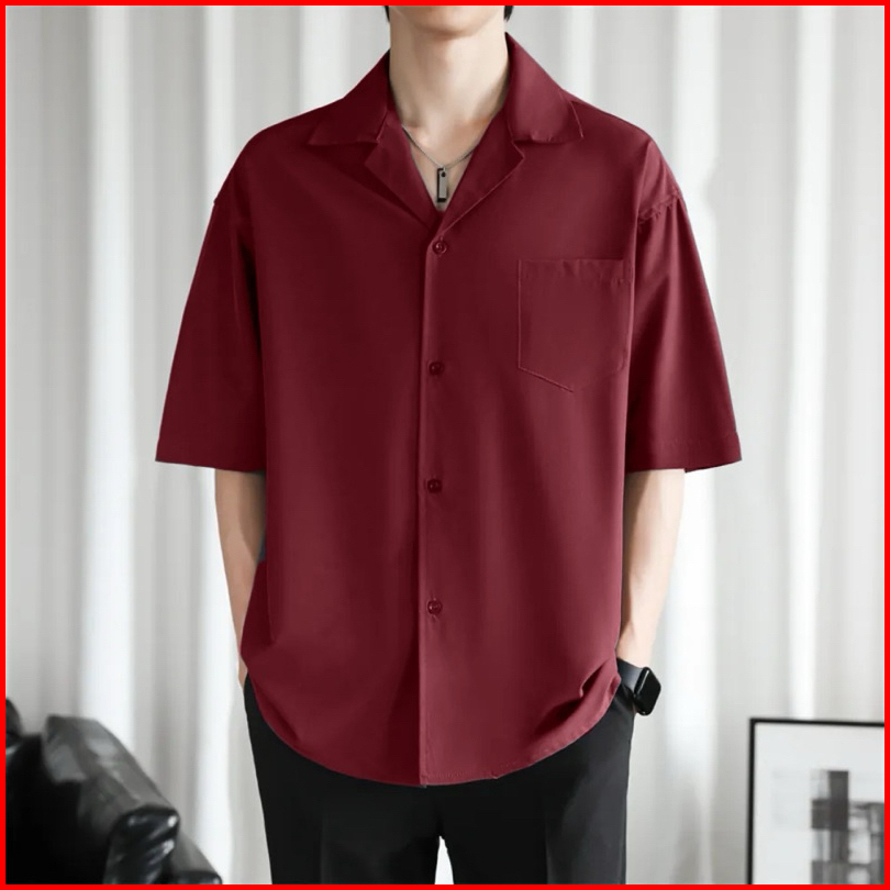 Kemeja Pria Wanita Vintage Hem Polos Hawai Lengan Pendek Outfit Korean Style Kekinian