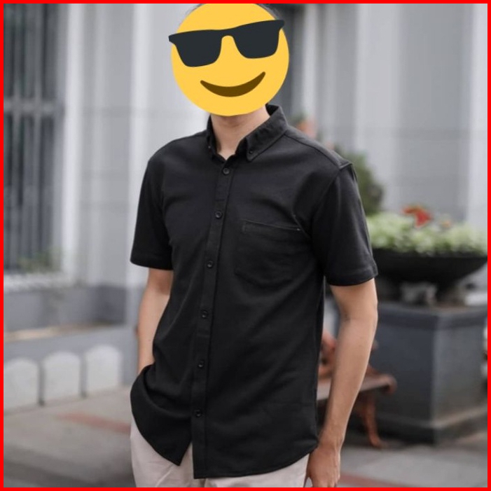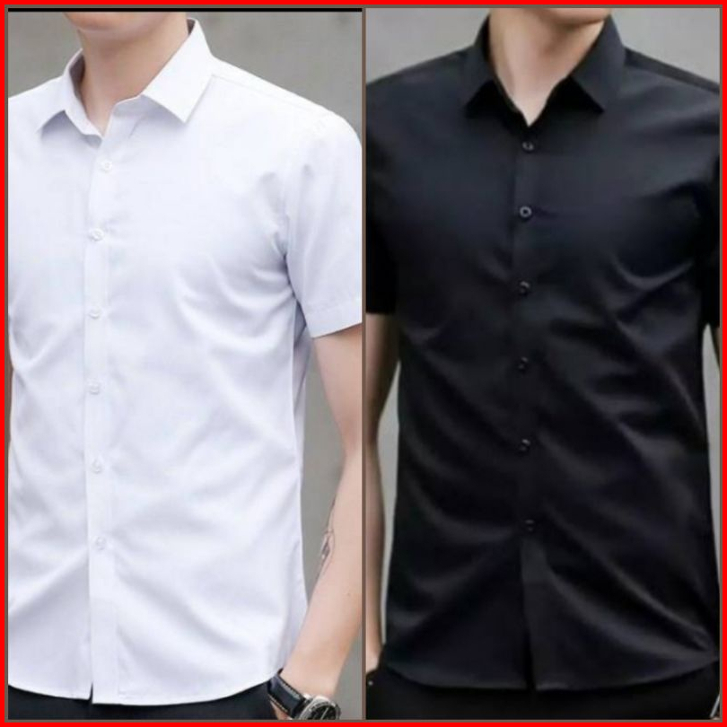 Kemeja Polos Putih Hitam Lengan Pendek Reguler Kasual Pria