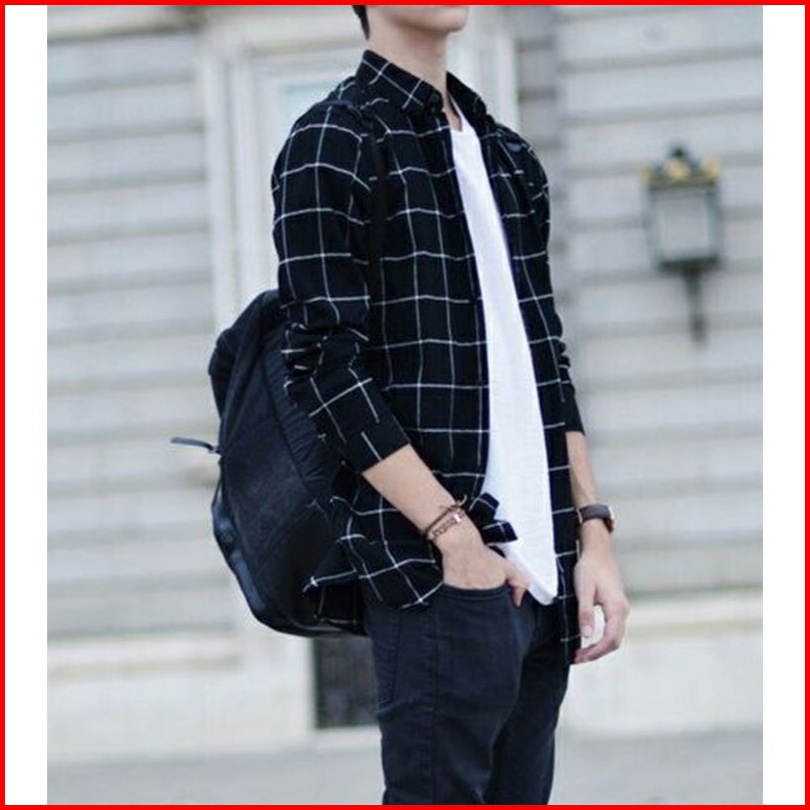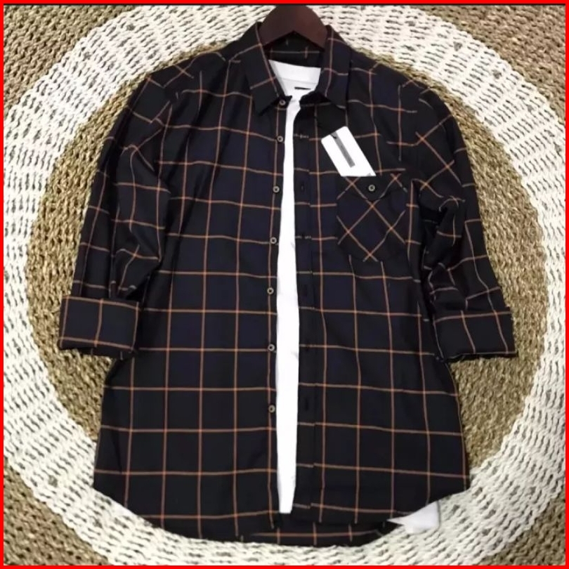 Kemeja Flanel Import Pria Premium Lengan Panjang Motif Kotak