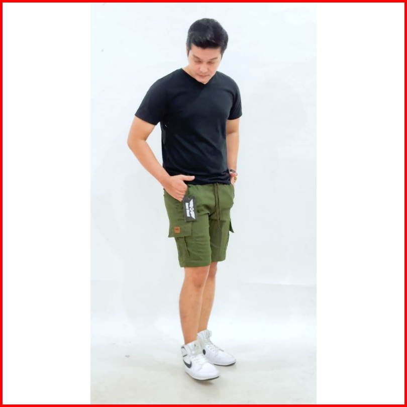 Bahan Melar Celana Cargo Pendek Dewasa All Size Pinggang Karet