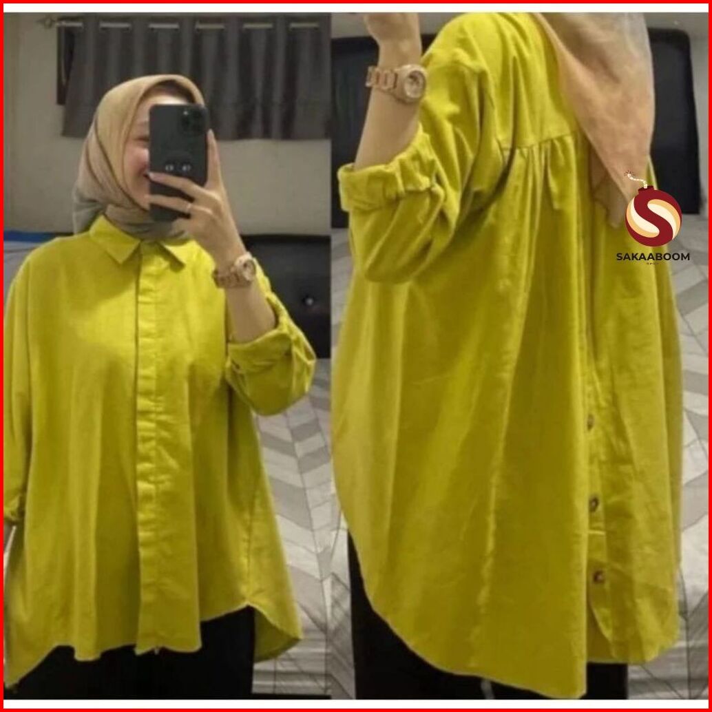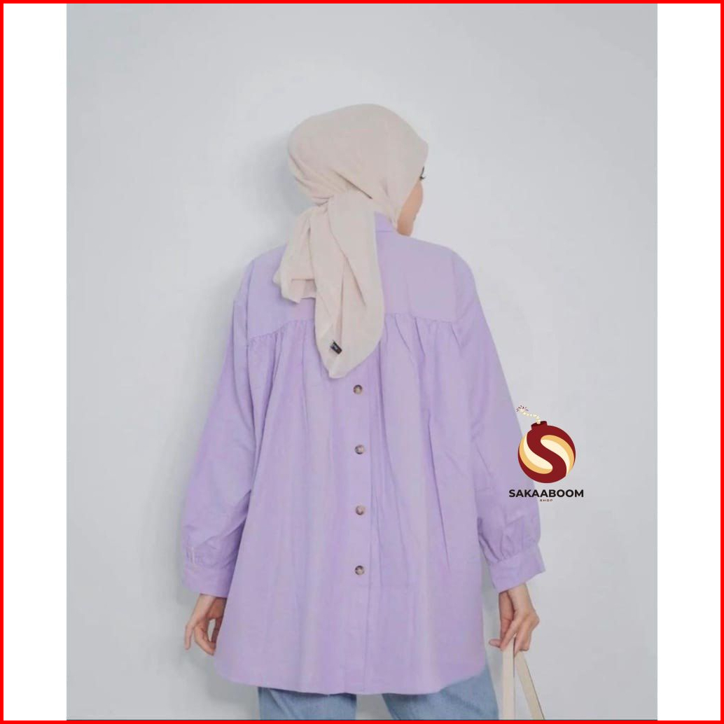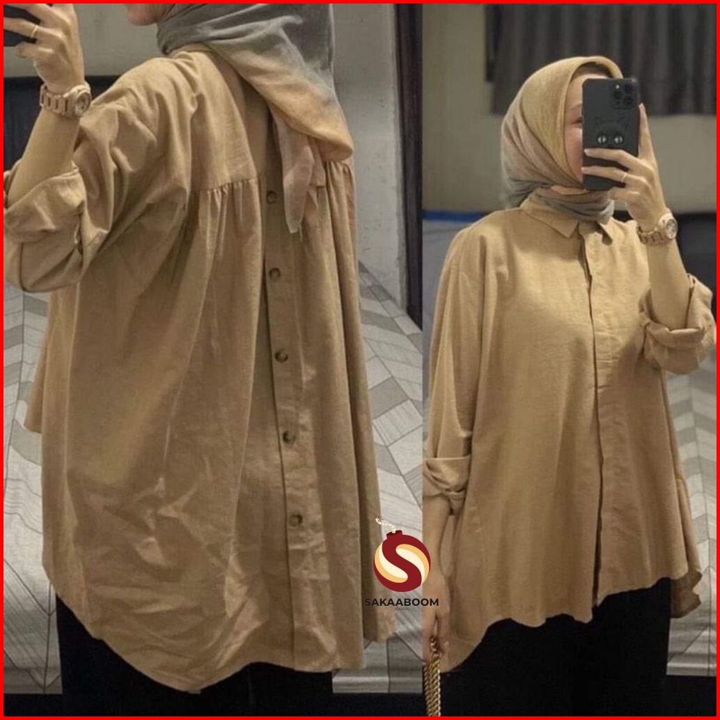 Linen T-shirt Kemeja Wanita Hana Rika Top Blouse Kancing Belakang