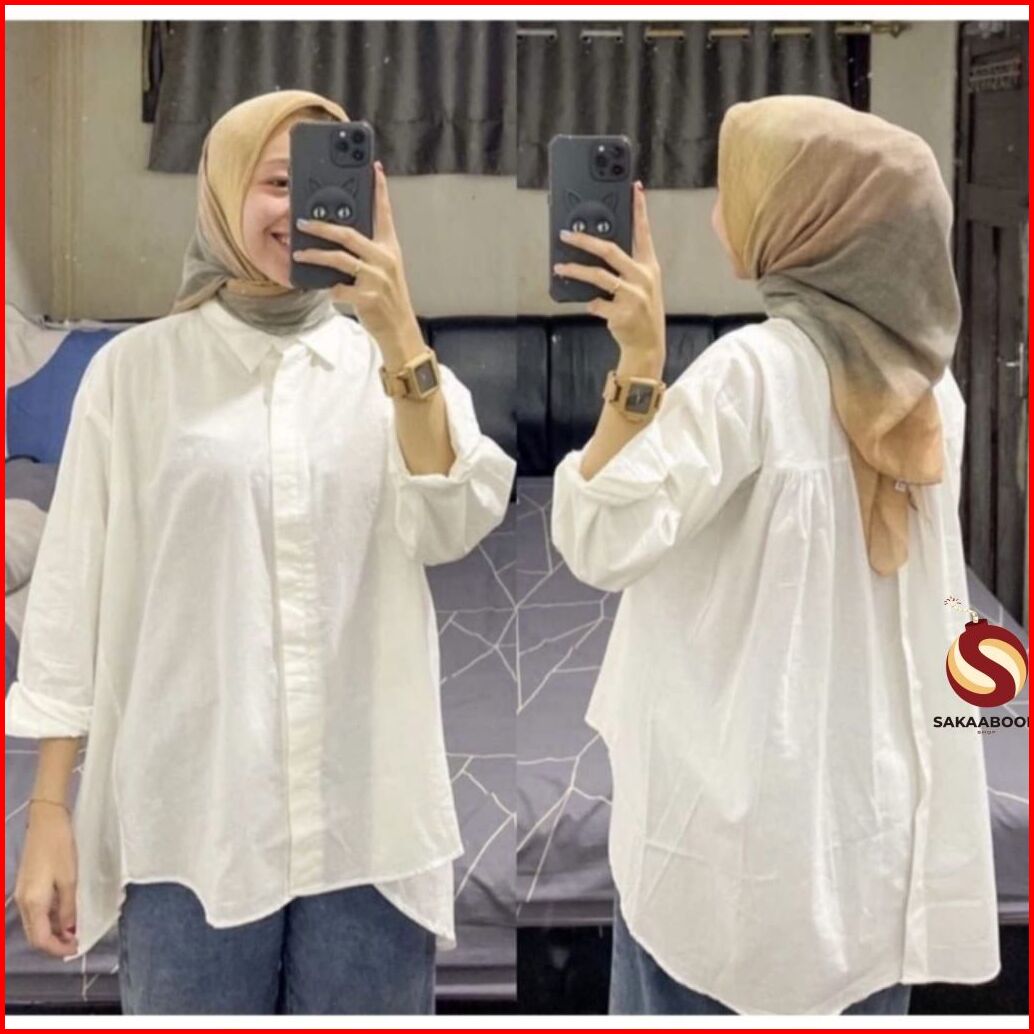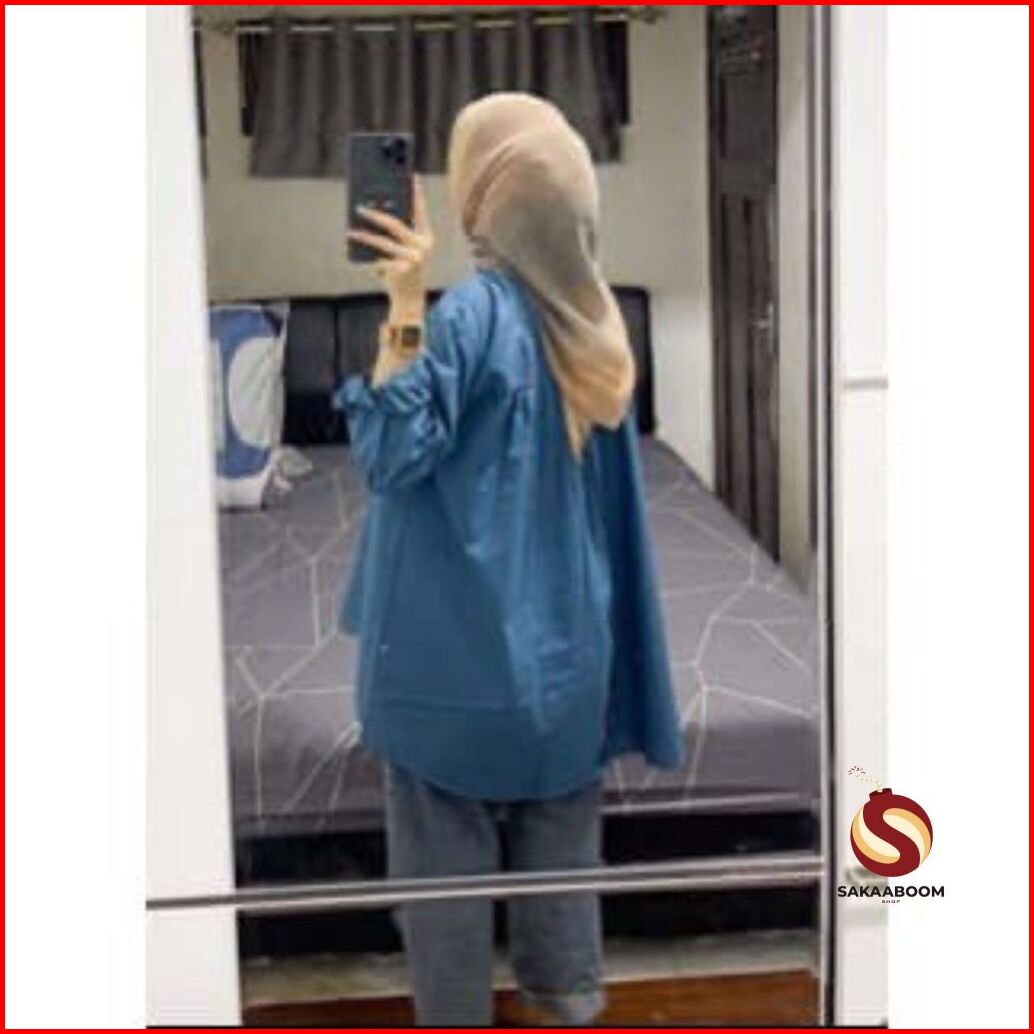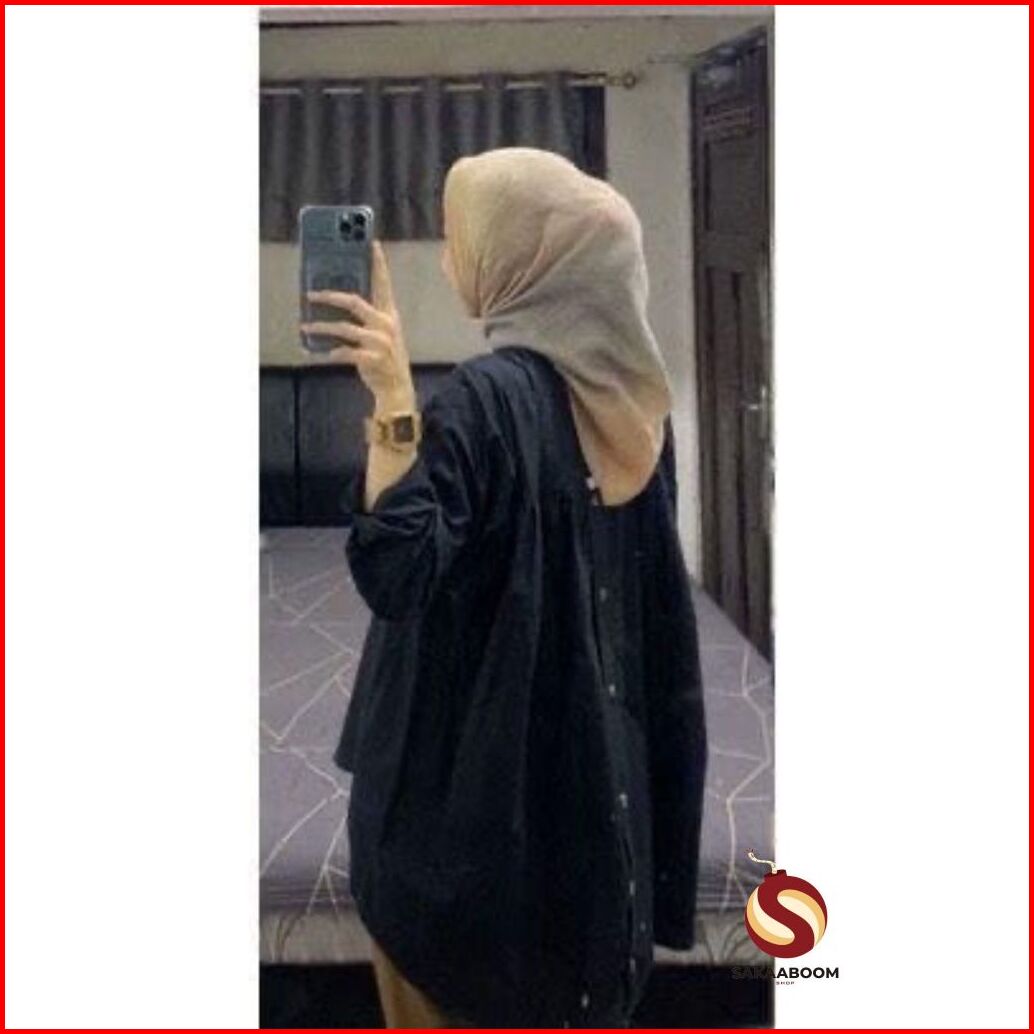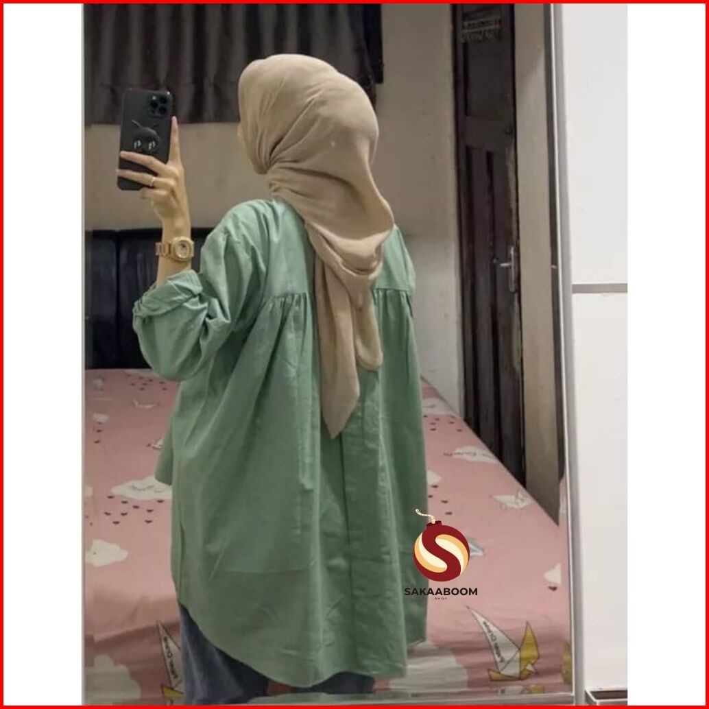 Linen T-shirt Kemeja Wanita Hana Rika Top Blouse Kancing Belakang
