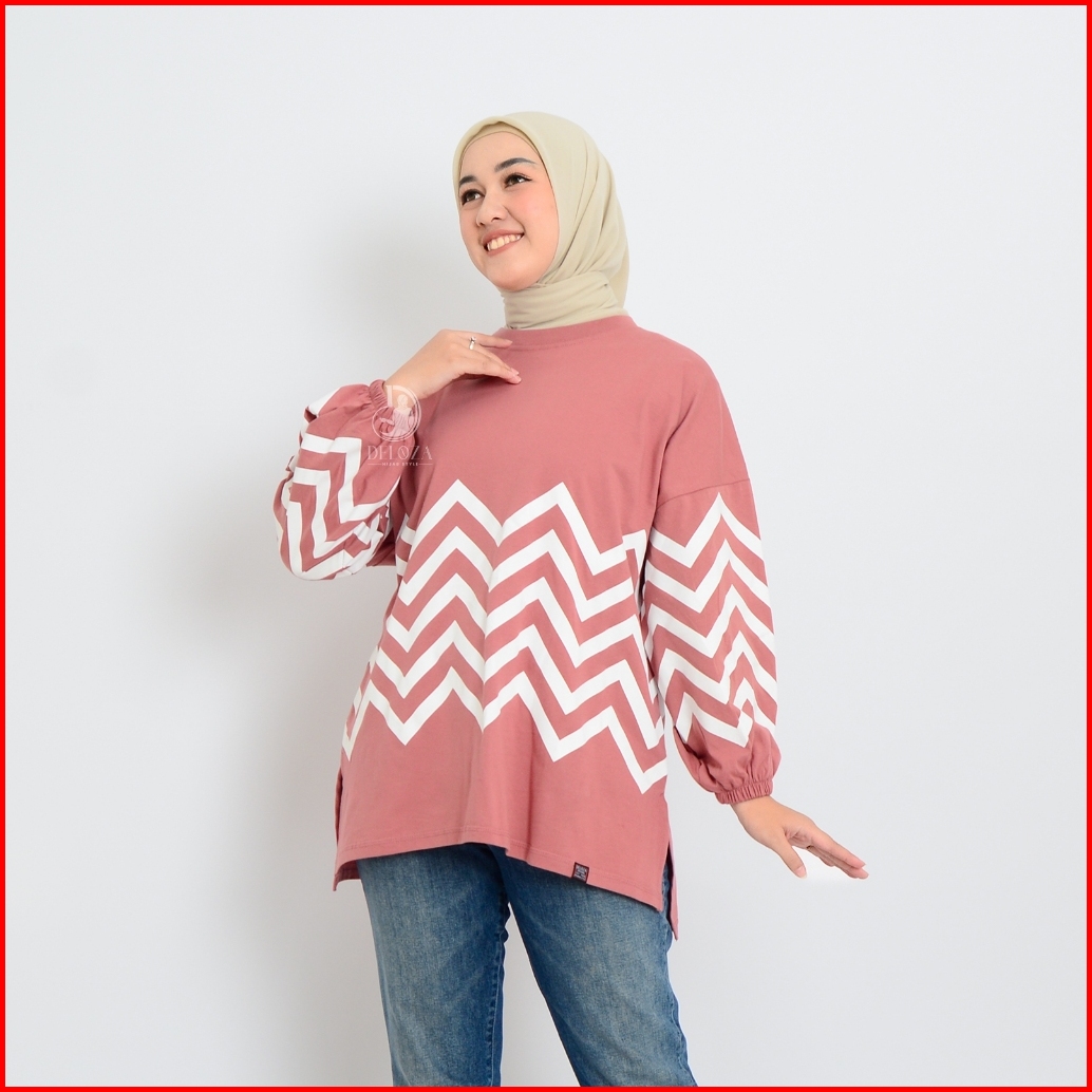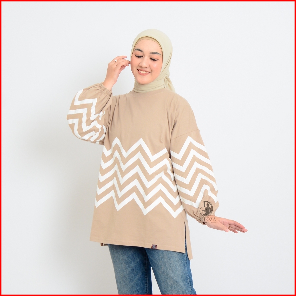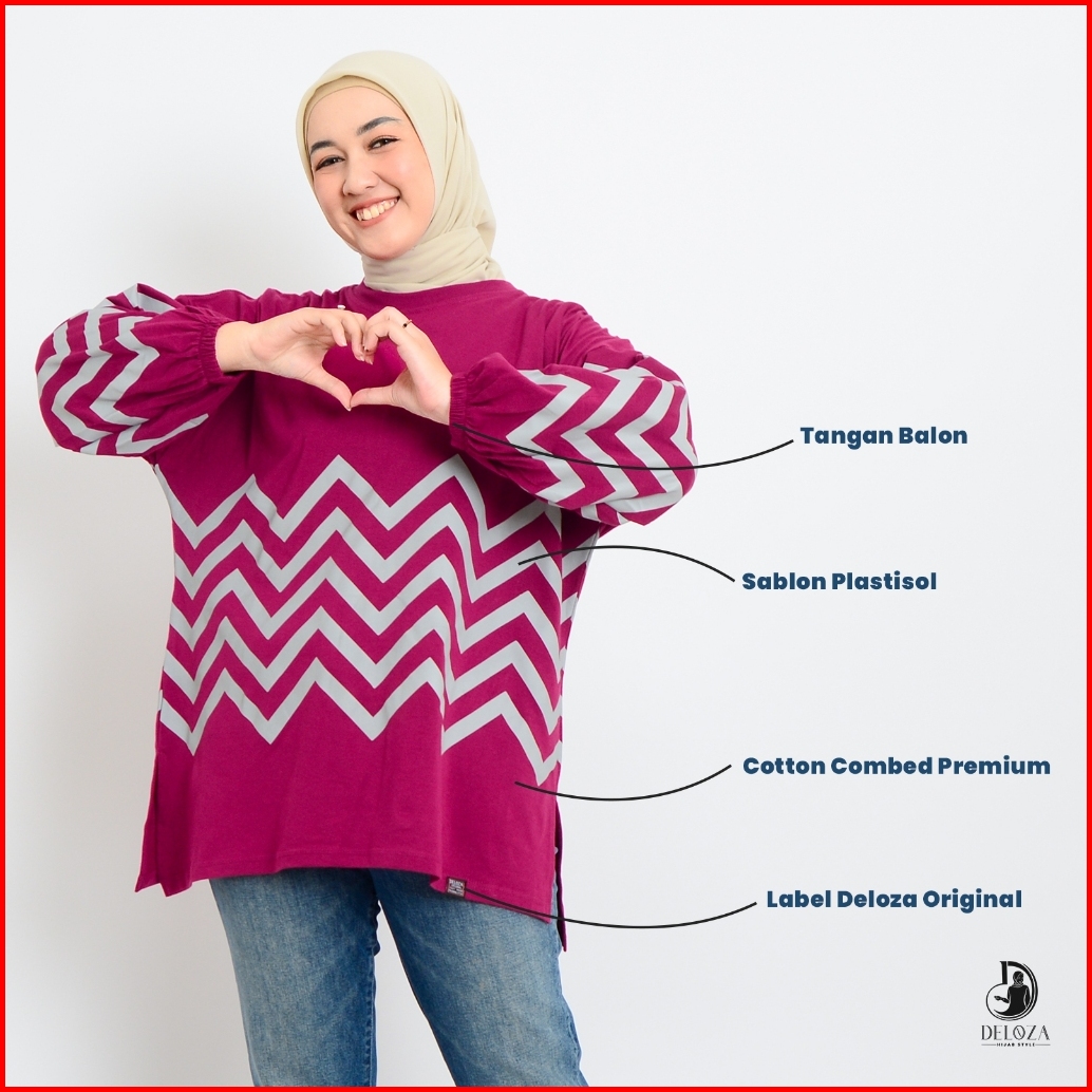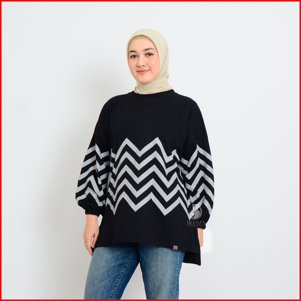 Lenora Oversize Atasan Wanita Jumbo Kaos Katun Garis Sablon Lengan Balon Ld 125 By Deloza