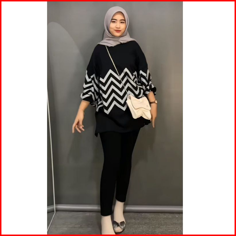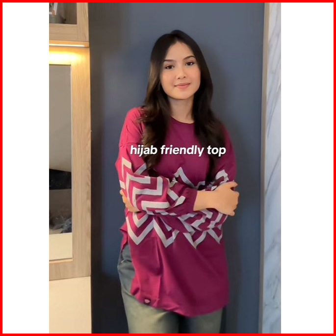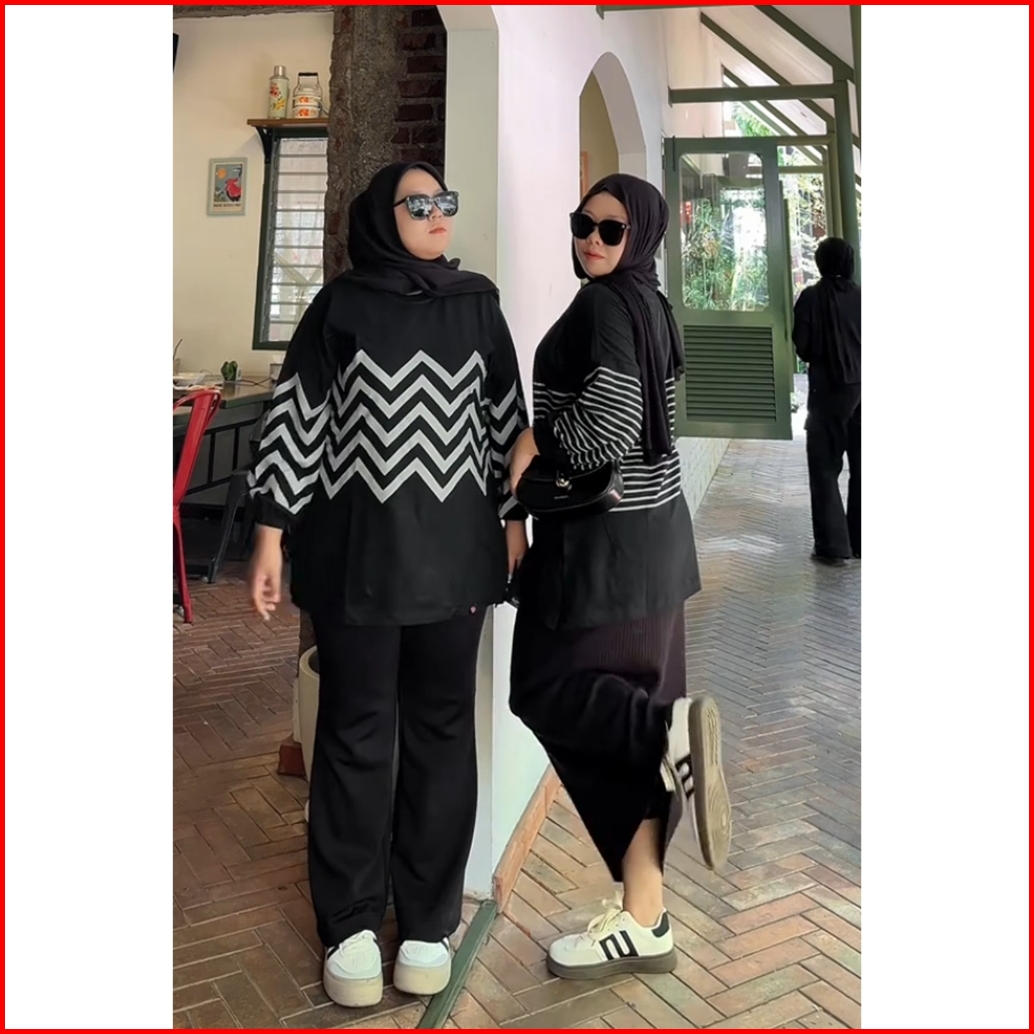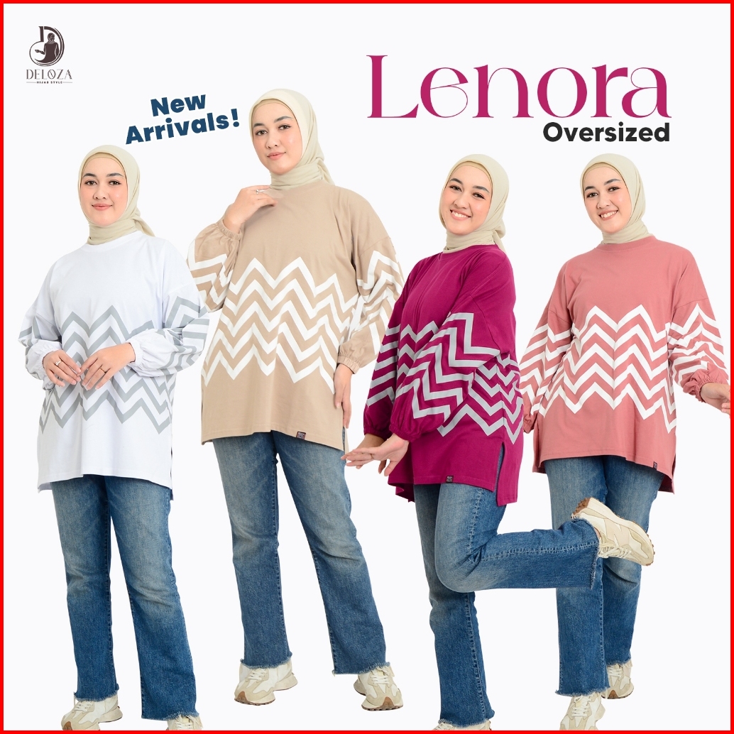 Lenora Oversize Atasan Wanita Jumbo Kaos Katun Garis Sablon Lengan Balon Ld 125 By Deloza