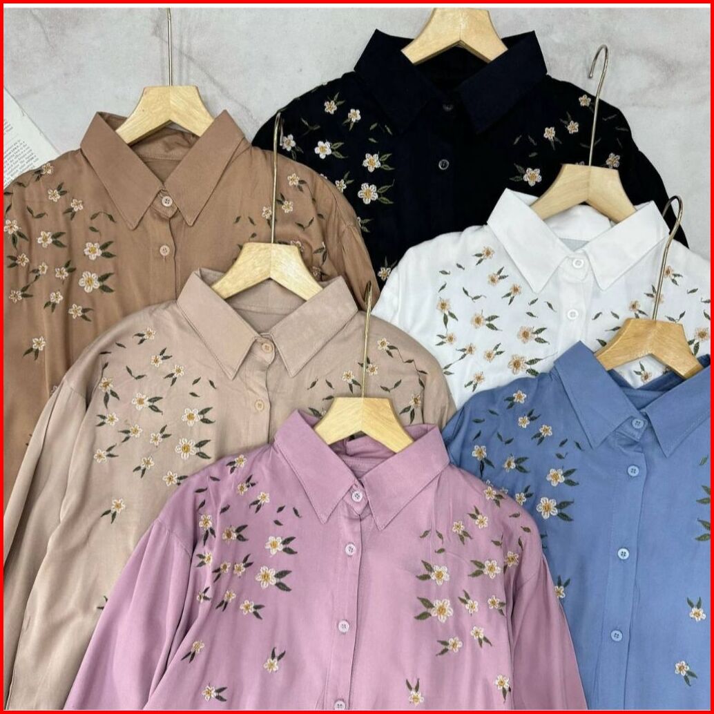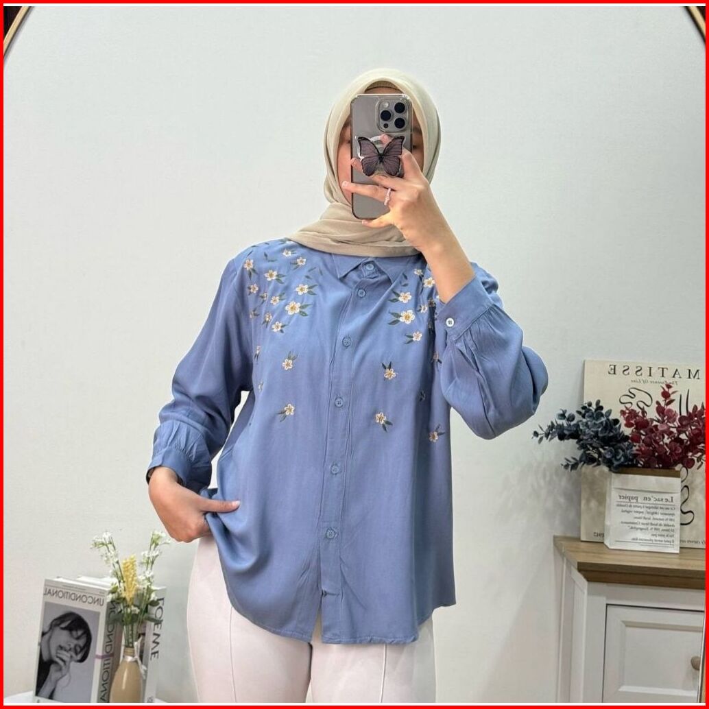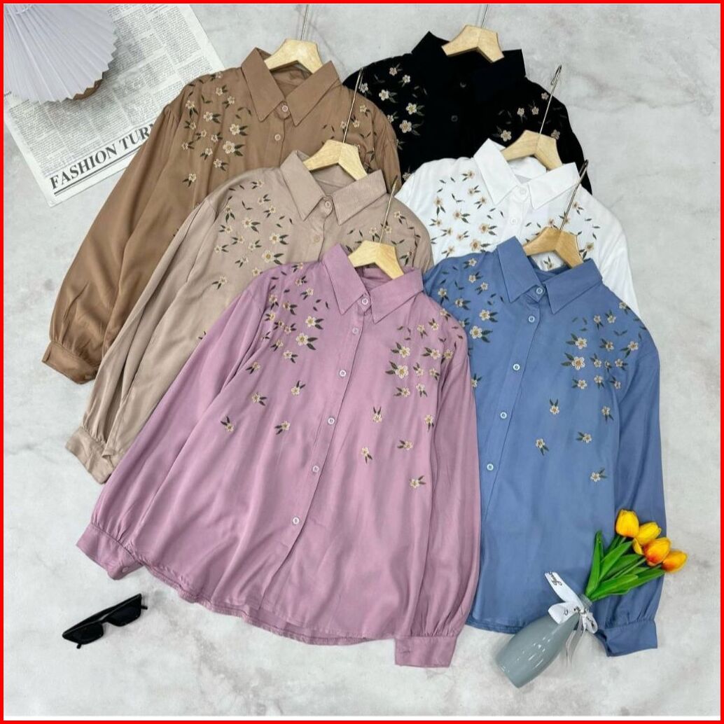 Blouse Brigata Kemeja Bordir Bunga Basic Wanita