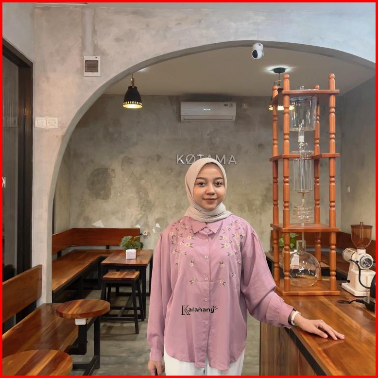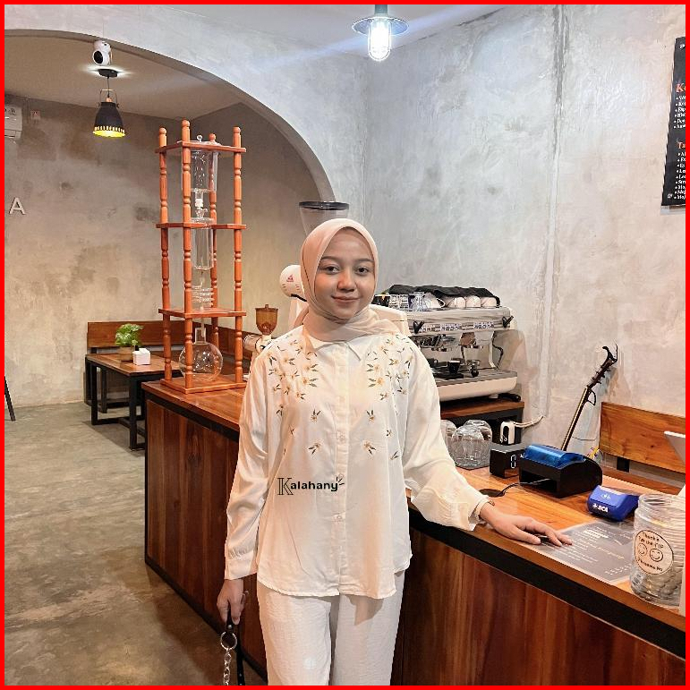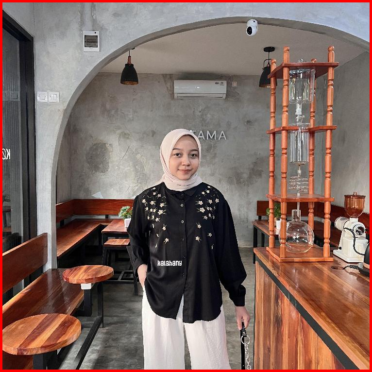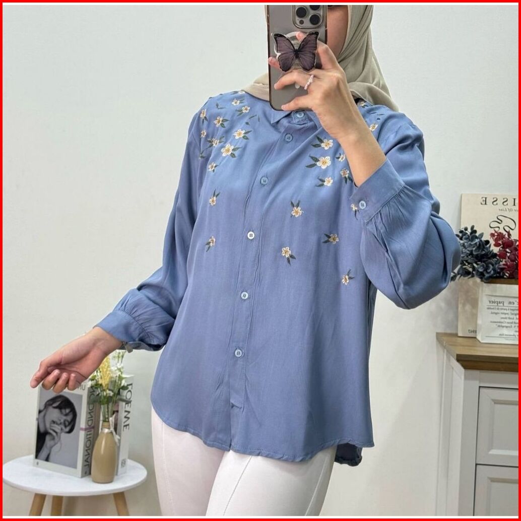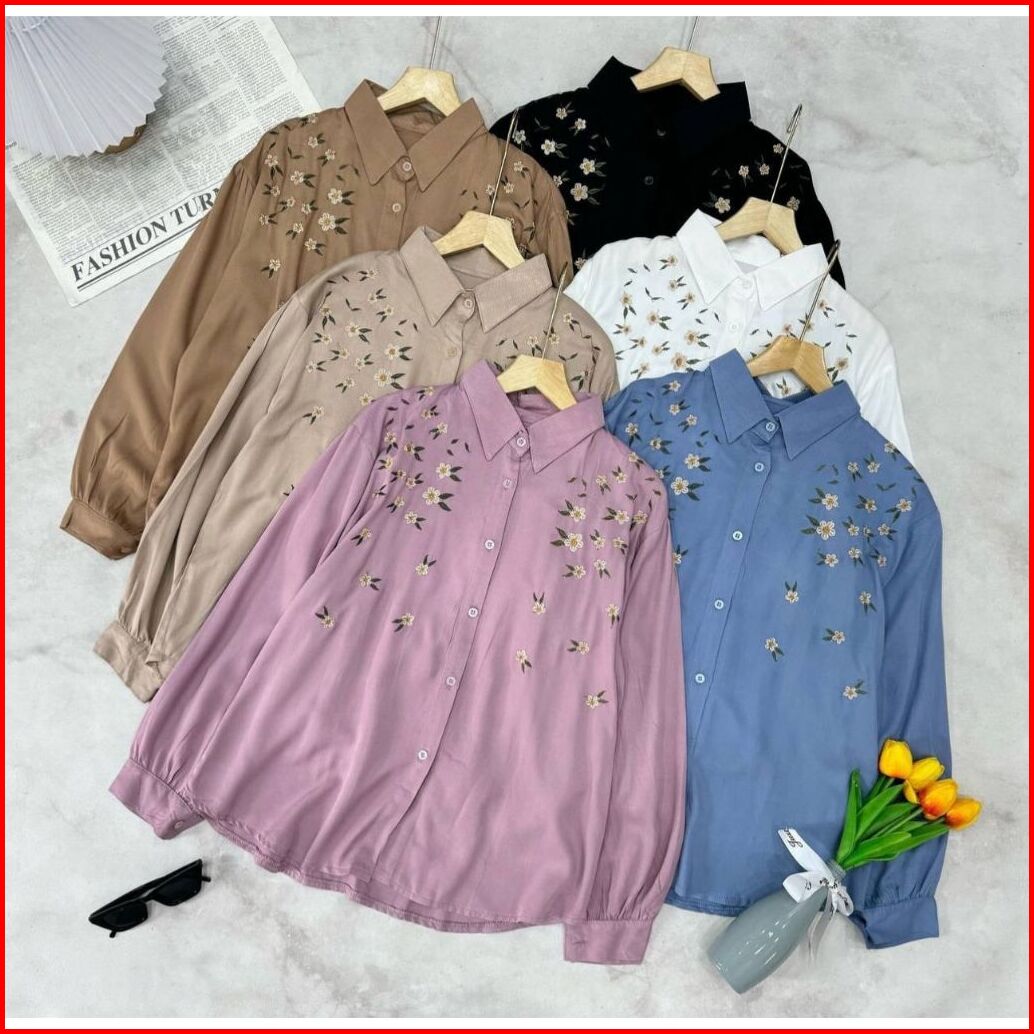 Blouse Brigata Kemeja Bordir Bunga Basic Wanita